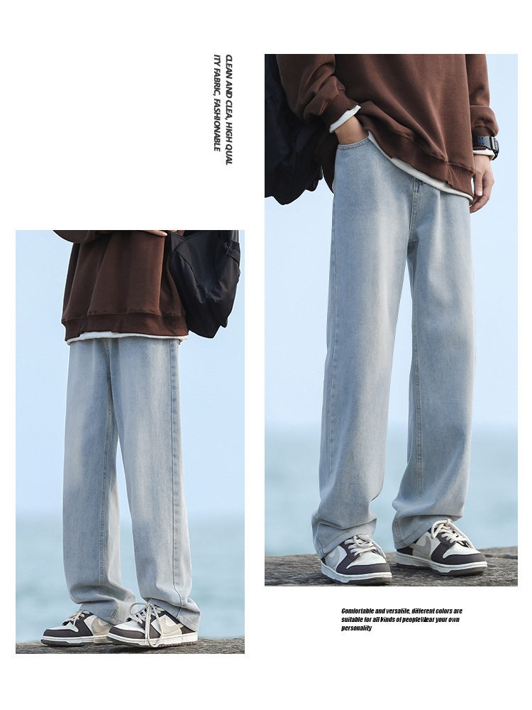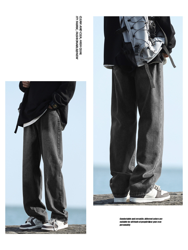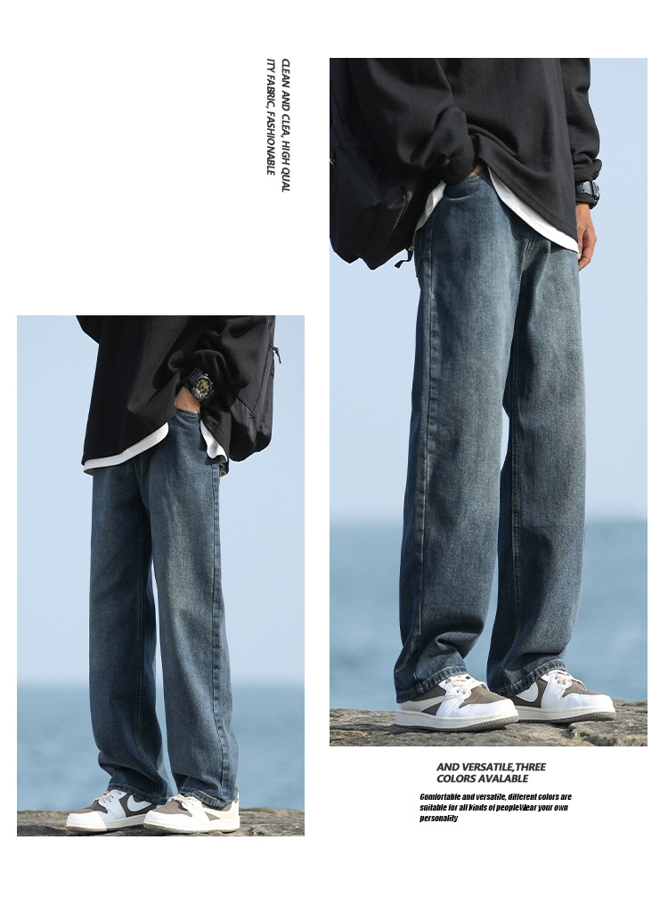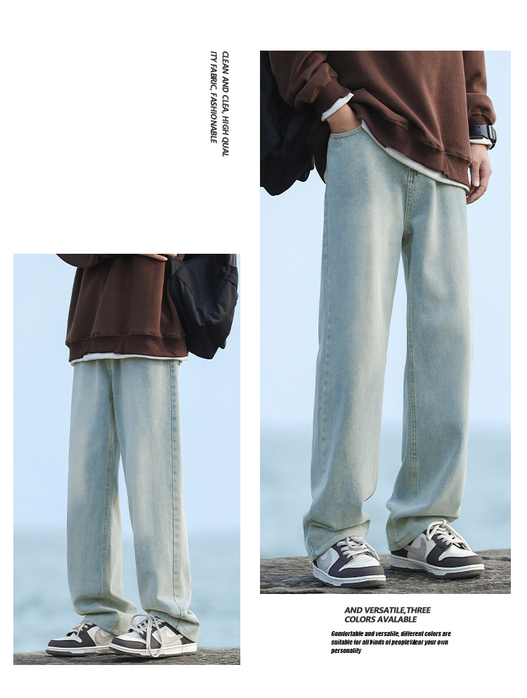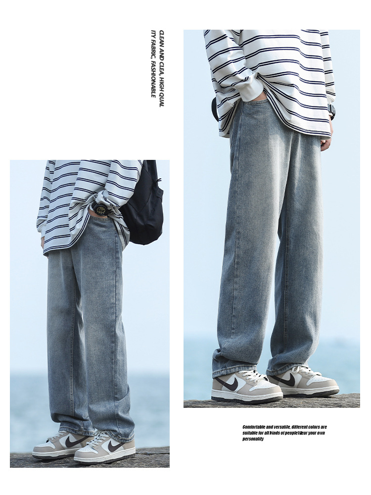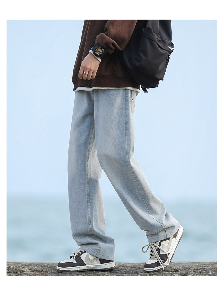 NASAOVER 남성용 청바지 가을 겨울 아메리칸 캐주얼 팬츠 봄 가을 레트로 트렌디 브랜드 긴바지 빈티지 워싱