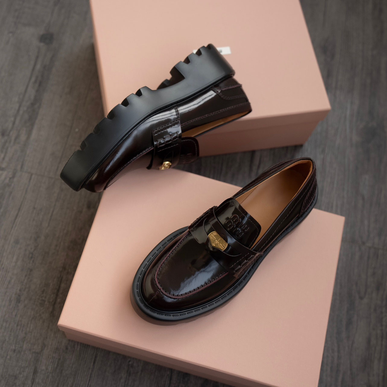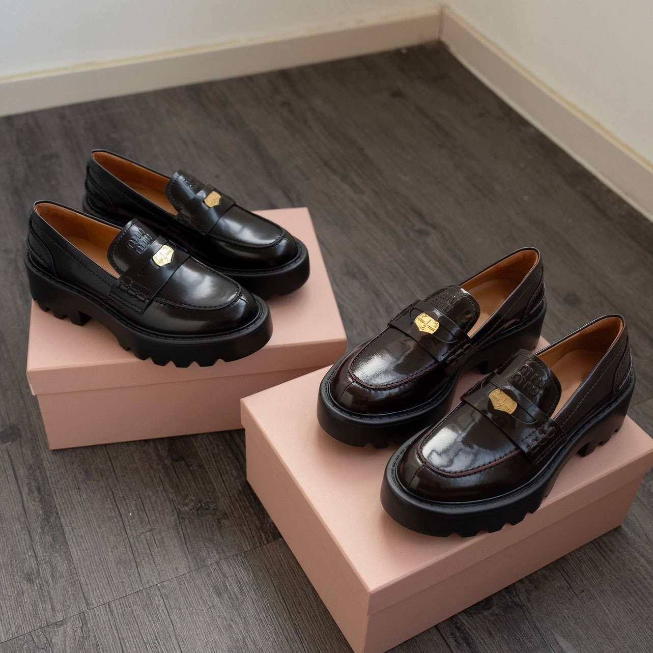 두꺼운 골드 코인 새로운 가죽 플랫폼 바닥 증가 작은 가죽 신발 프랑스 복고풍 패션 라운드 발가락 두꺼운 바닥 로퍼 여성