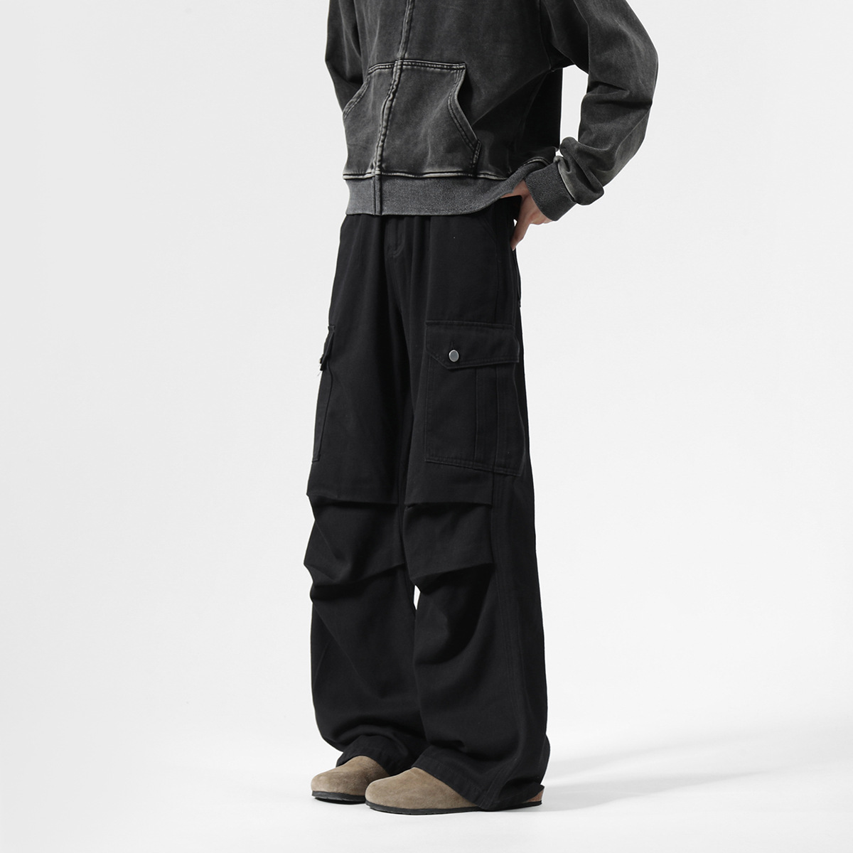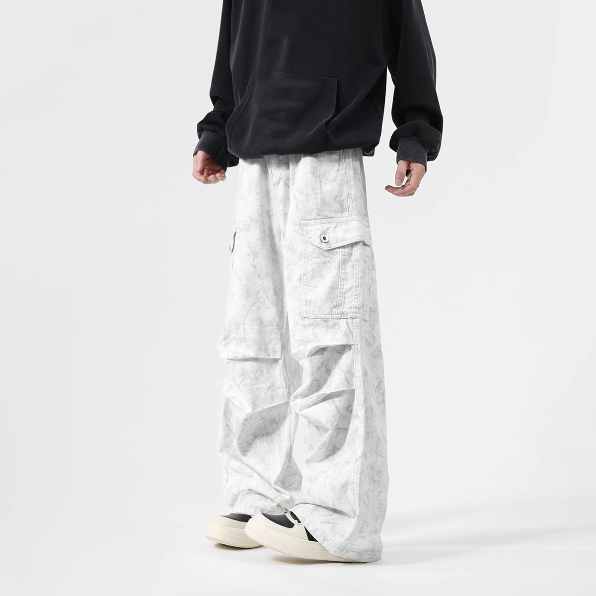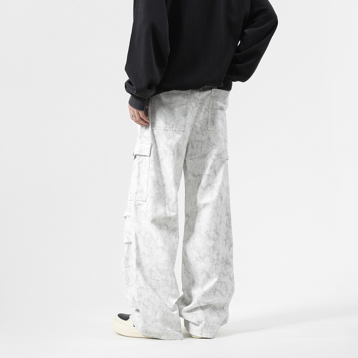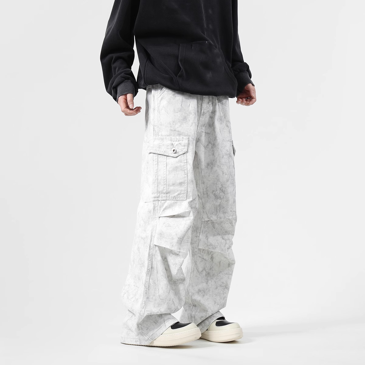 아메리칸 스타일 레트로 타이-염료 툴링 바지 남자 가을 하이 스트리트 플럼 잘 생긴 넓은 다리 낙하산 바지 트렌디 브랜드 주름 더러운 캐주얼 바지