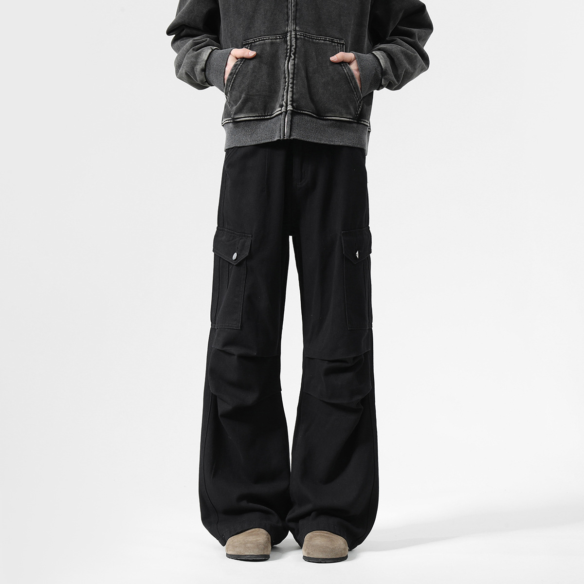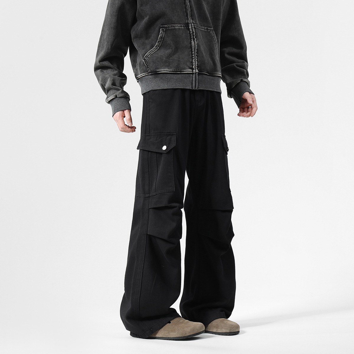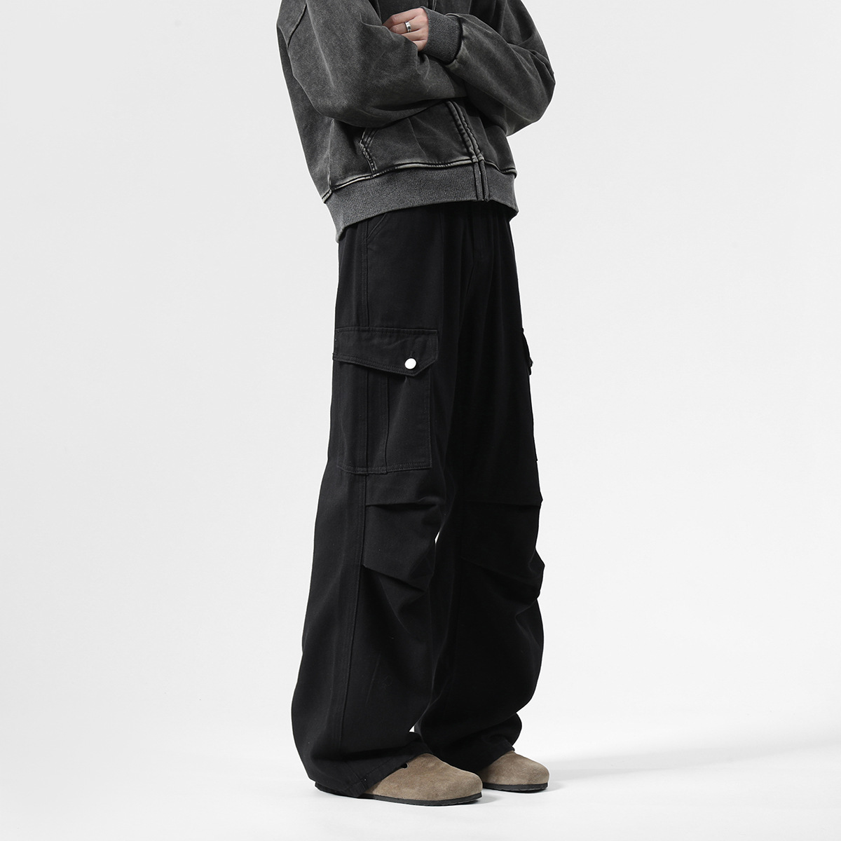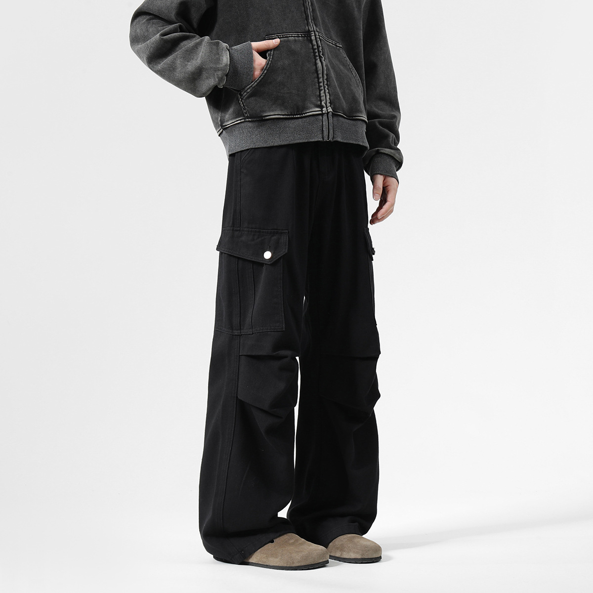 아메리칸 스타일 레트로 타이-염료 툴링 바지 남자 가을 하이 스트리트 플럼 잘 생긴 넓은 다리 낙하산 바지 트렌디 브랜드 주름 더러운 캐주얼 바지