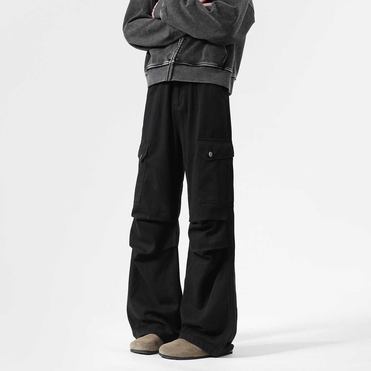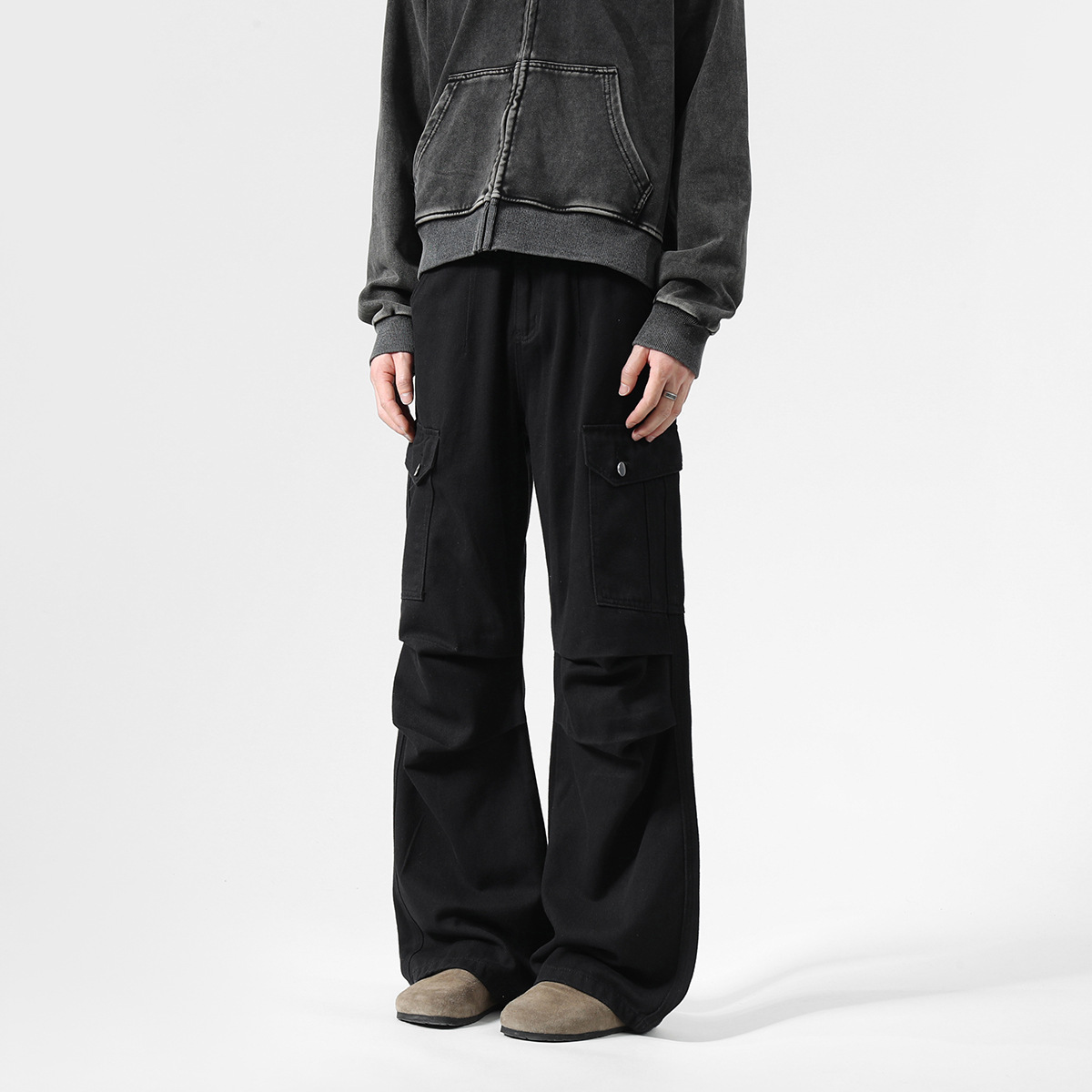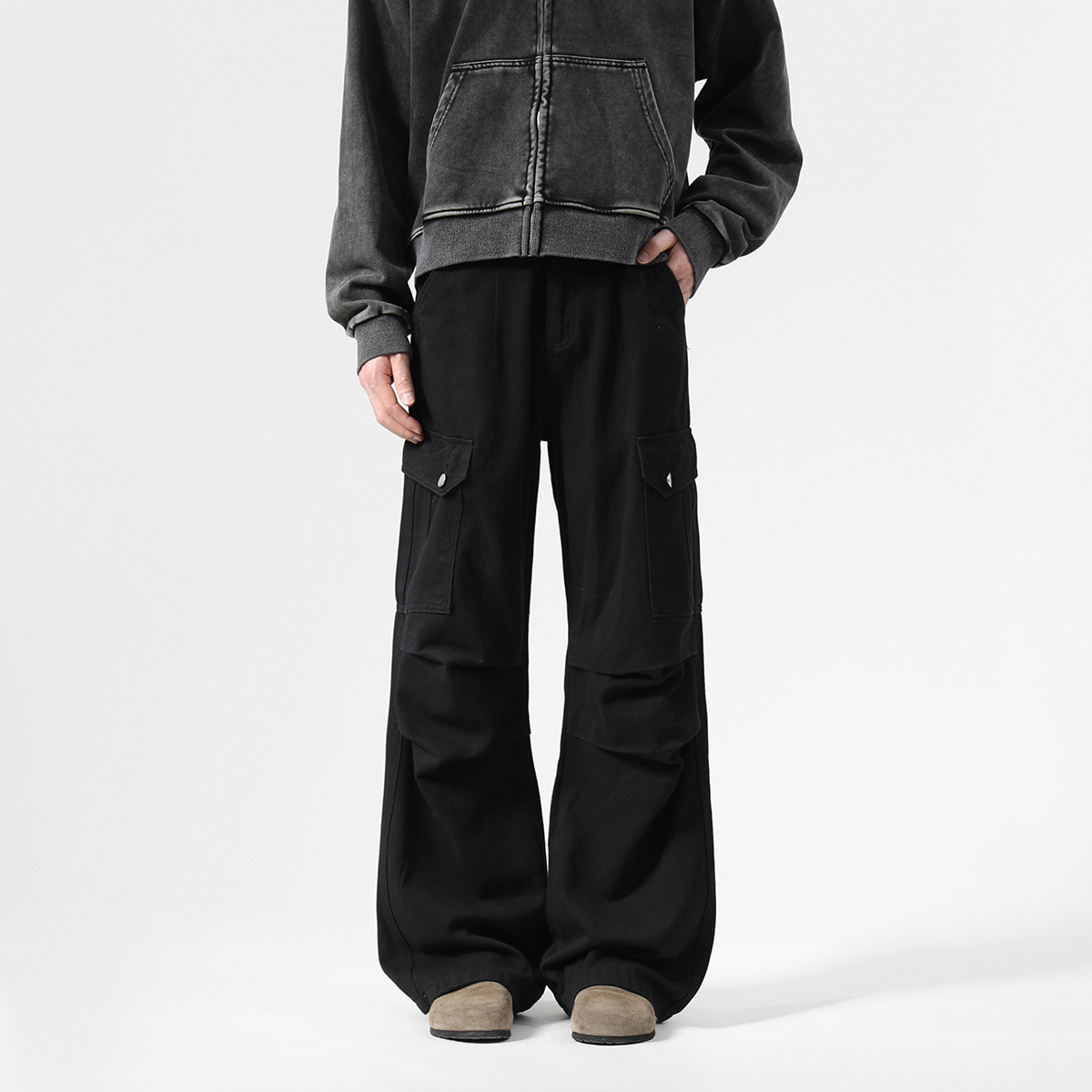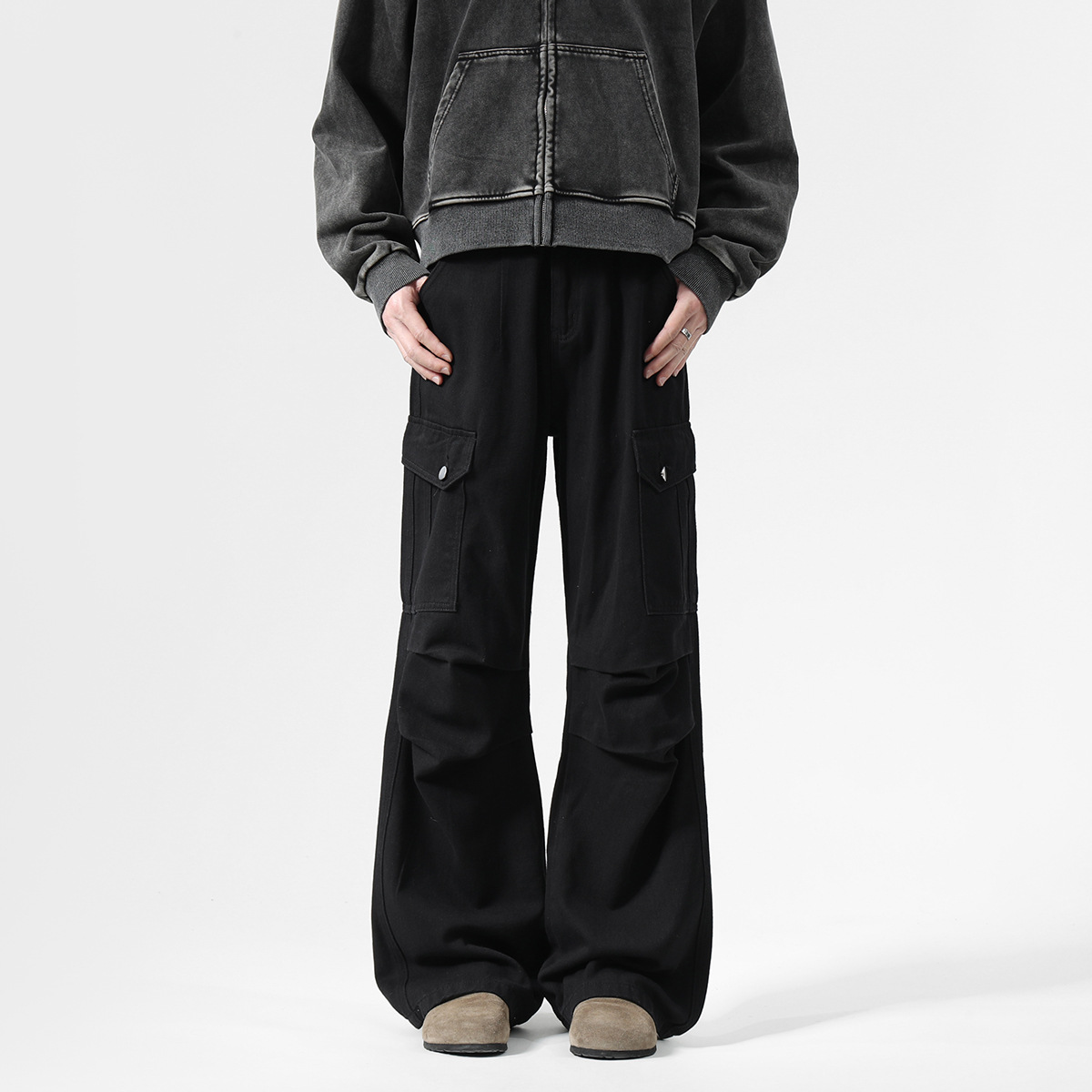 아메리칸 스타일 레트로 타이-염료 툴링 바지 남자 가을 하이 스트리트 플럼 잘 생긴 넓은 다리 낙하산 바지 트렌디 브랜드 주름 더러운 캐주얼 바지
