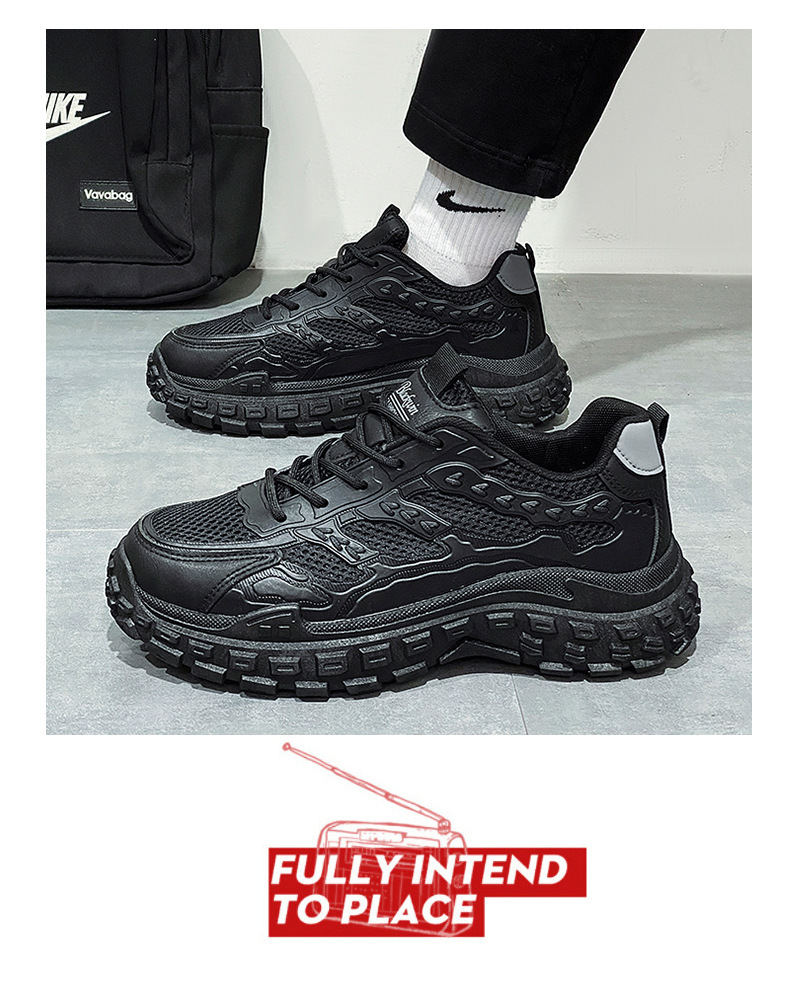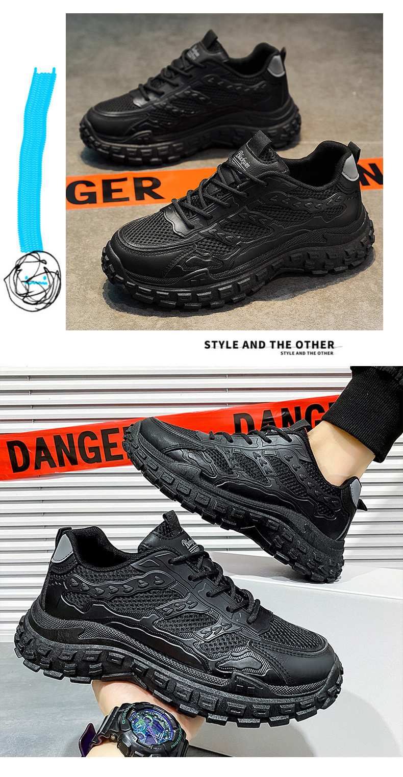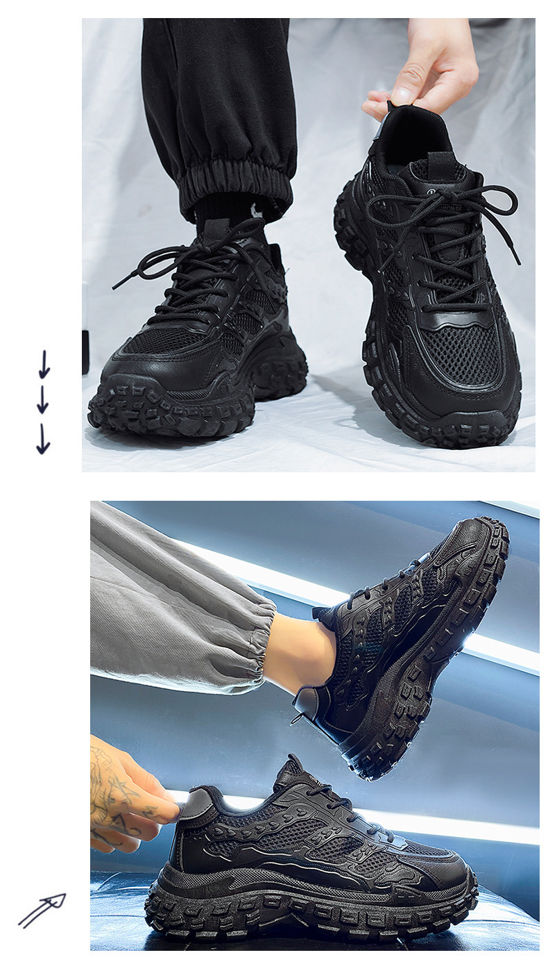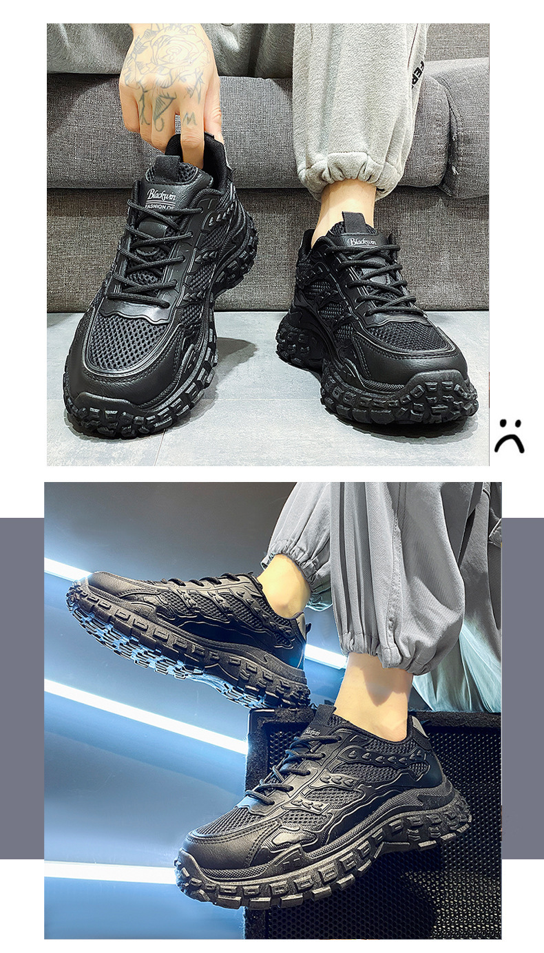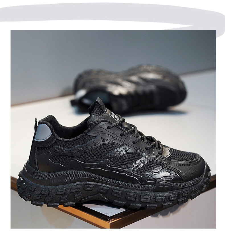 남성용 겨울철 통기성 내마모성 미끄럼 방지 타이어 밑창 작업화 남성용 블랙 스포츠 키높이 아빠 신발