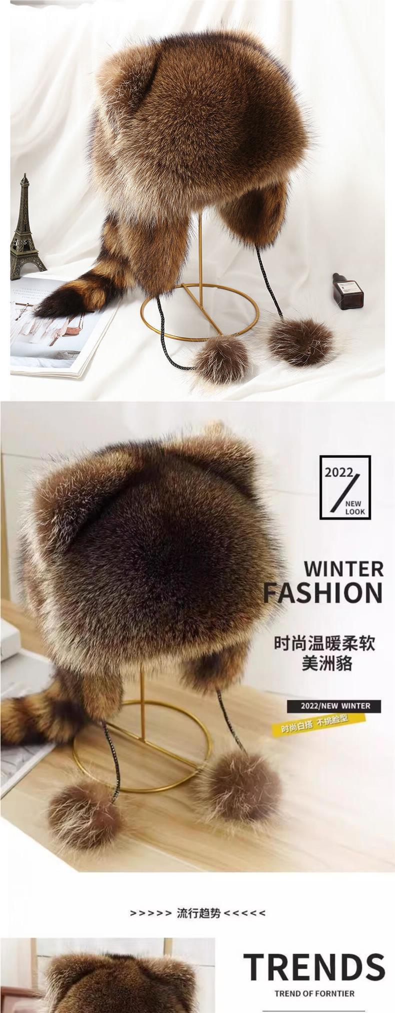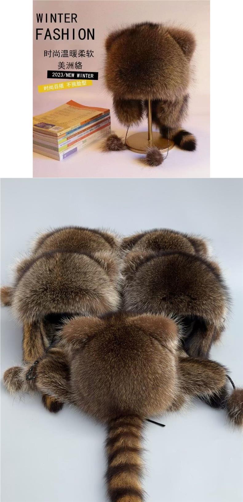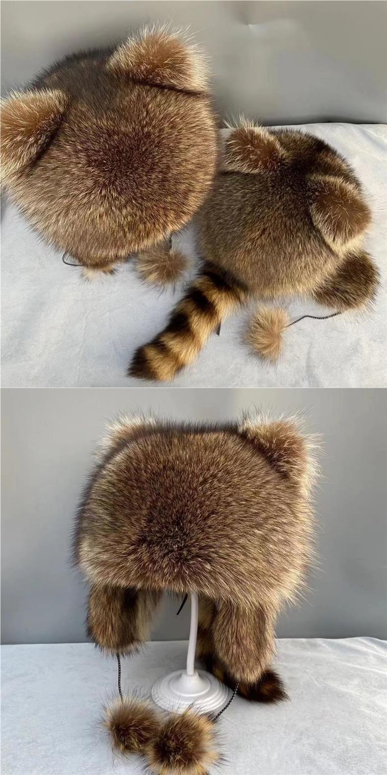 중대형 어린이를 위한 모조 작은 너구리 모자, 메일라드 아메리칸 너구리털 여성용 신형 레이펑 모자 풀오버 모자