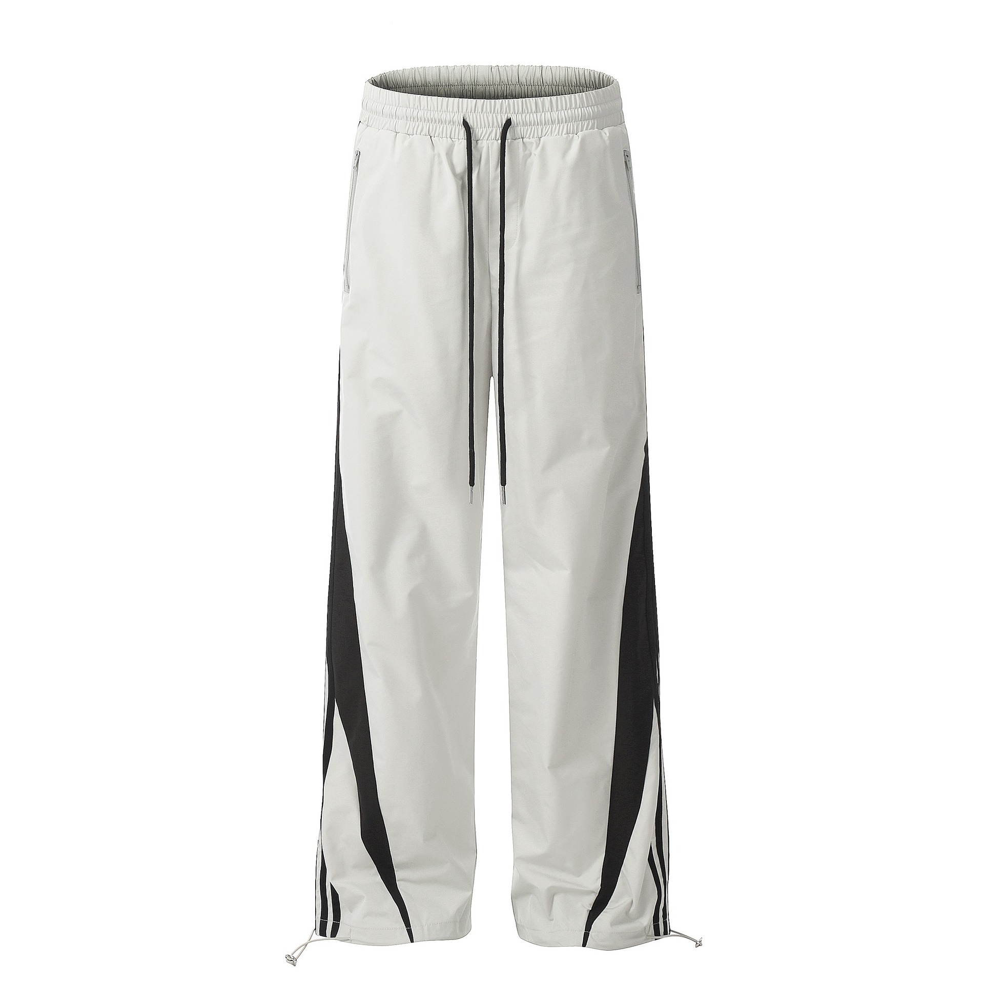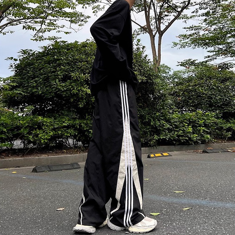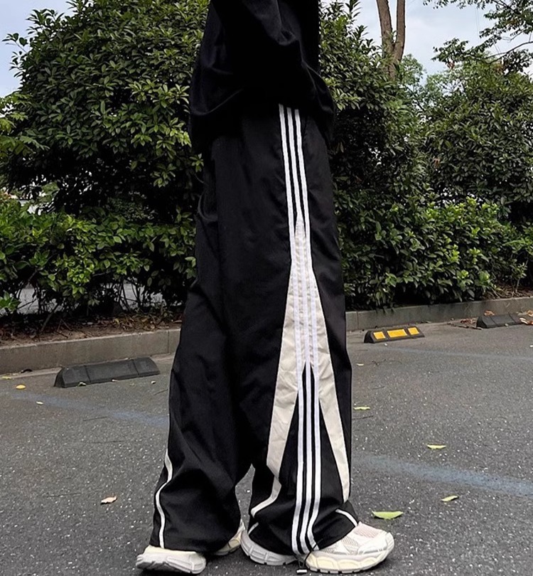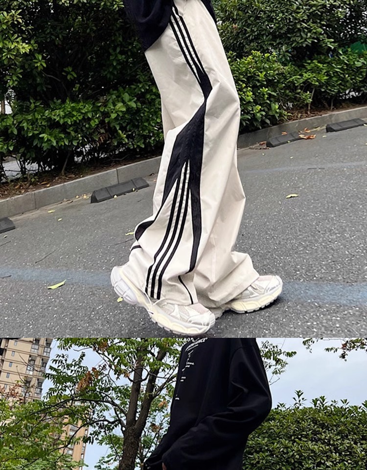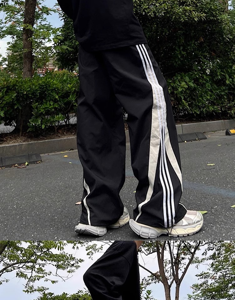 남자 봄과 가을 줄무늬 캐주얼 낙하산 바지 남자 아메리칸 스타일 하이 스트리트 느슨한 와이드 레그 스트레이트 레그 스포츠 충전 툴링 바지