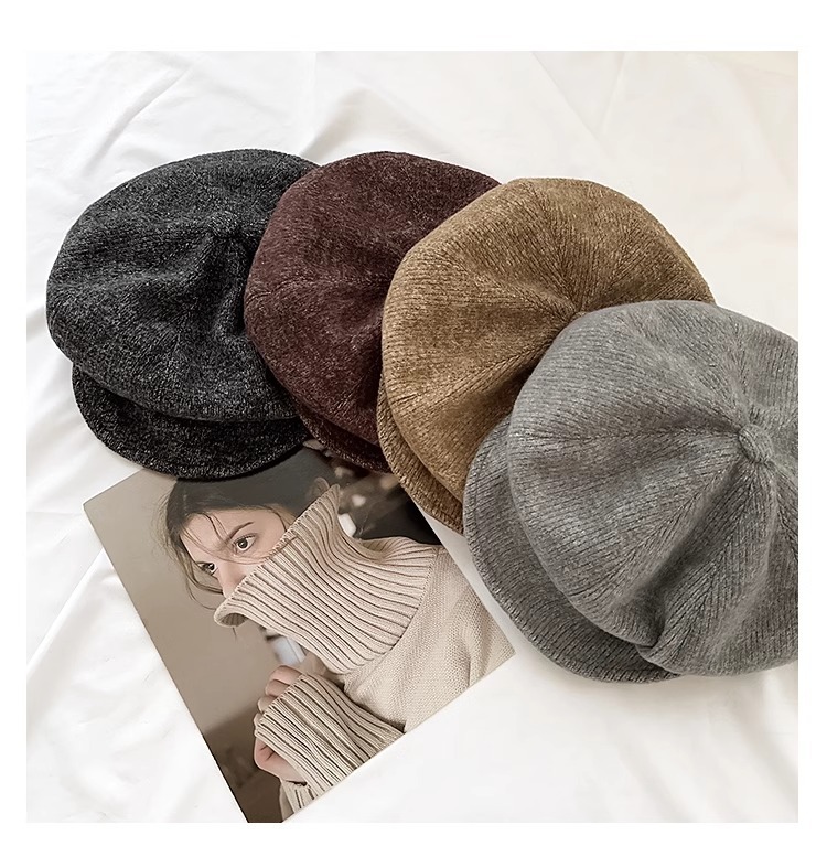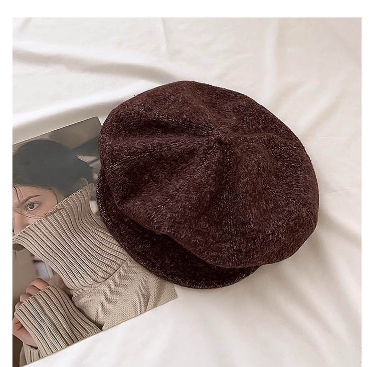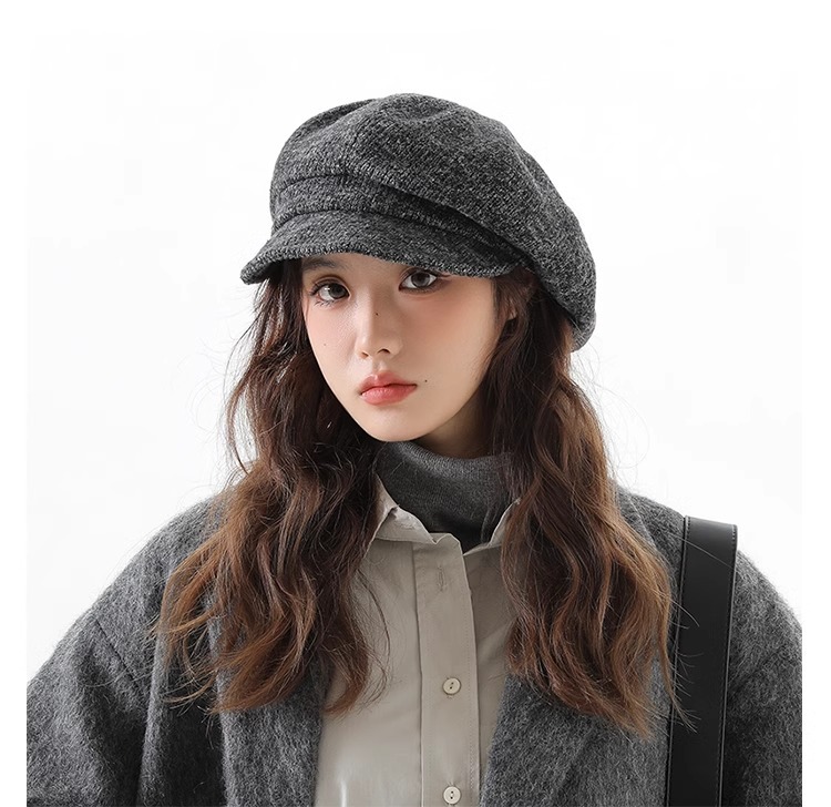 일본 레트로 솔리드 컬러 올 매치 팔각형 모자 어린이 가을과 겨울 홍콩 스타일 따뜻한 얼굴 작은 그림 모자 뉴스 보이 모자 대외 무역
