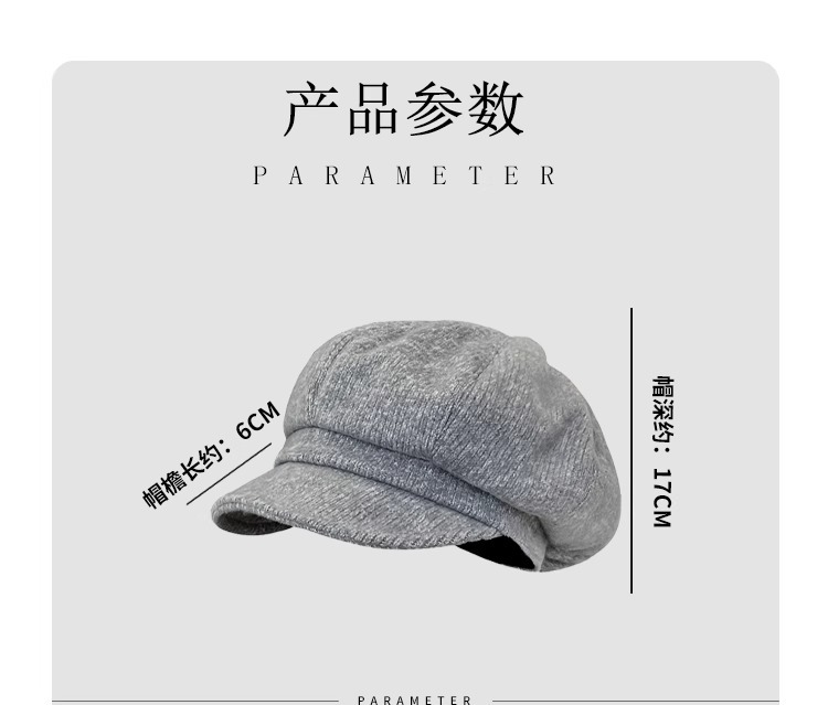 | 帽檐款式 | 短檐 | 颜色 | 卡其, 浅灰, 焦糖, 米白, 黑灰 |