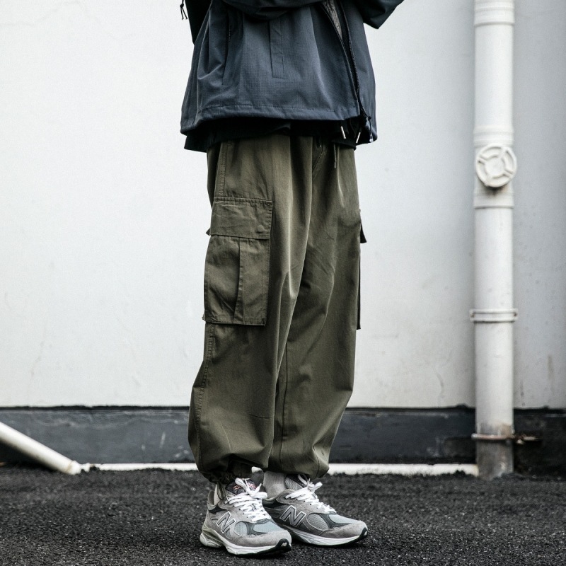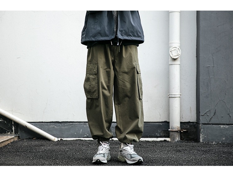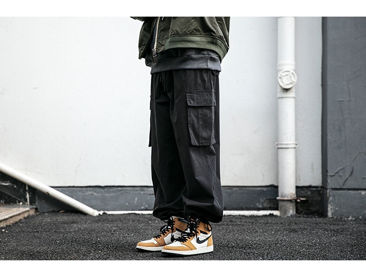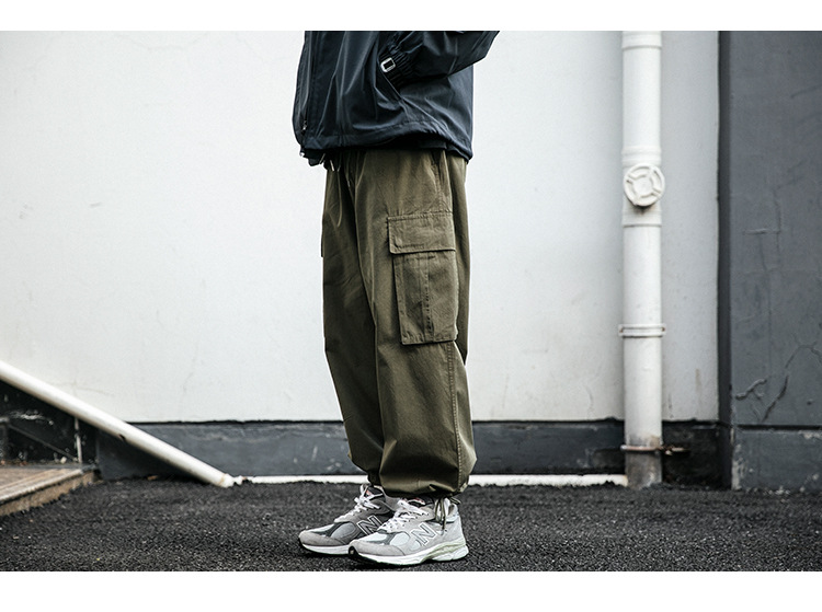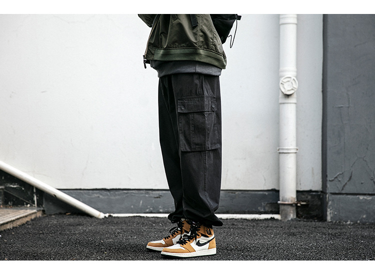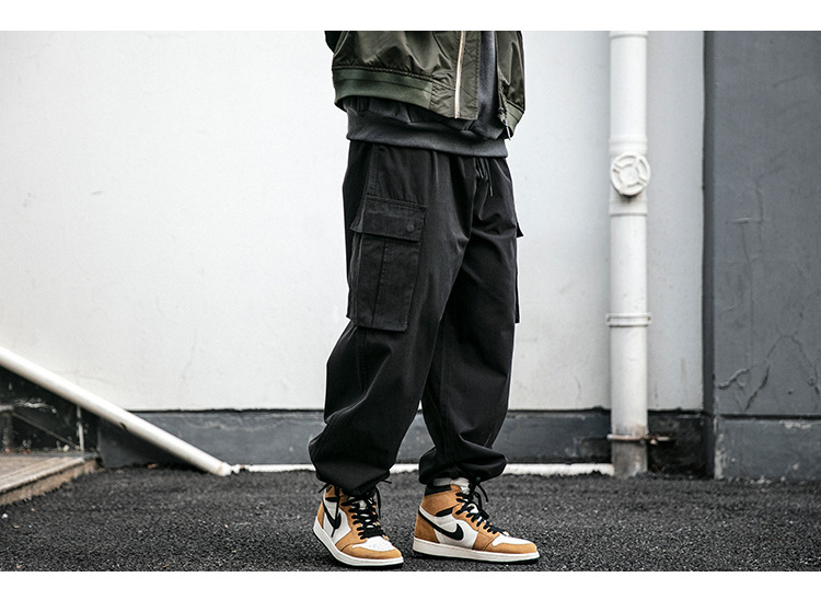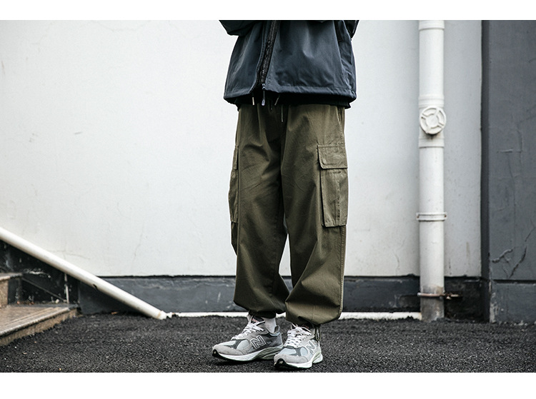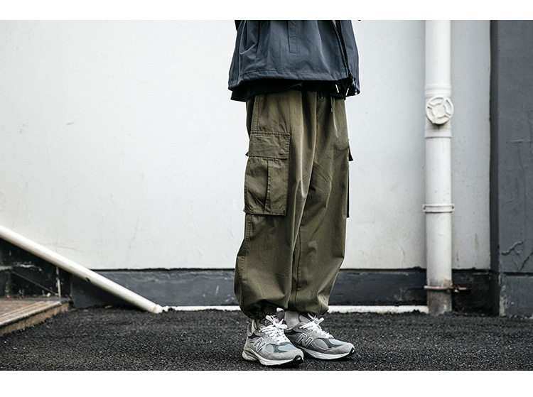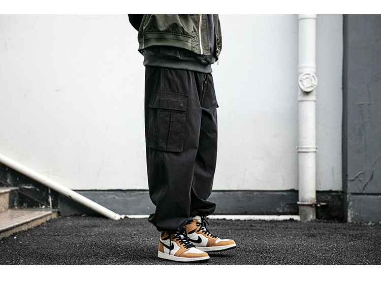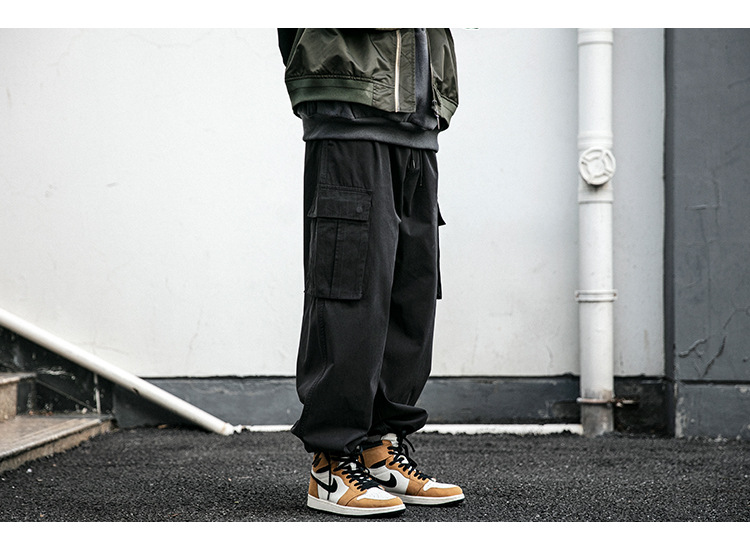 일본식 레트로 툴링 바지 남자 트렌디 브랜드 느슨한 플러스 사이즈 봄과 가을 스트레이트 드로스트링 올매치 레그 타이 캐주얼 바지