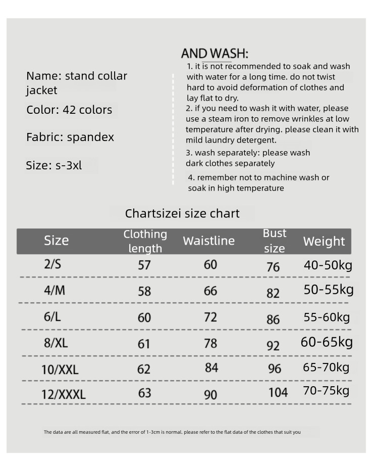 | 颜色 | 黑色款夹克, 白色款夹克, 樱花粉夹克, 暗薰紫夹克, 白蛋白夹克, 黛蓝色夹克, 淡紫色夹克, 粉末蓝夹克, 粉雾色夹克, 黑蓝色夹克, 军绿色夹克, 蓝灰色夹克, 玫红色夹克, 美拉德夹克, 浅连灰夹克, 茄紫色夹克, 闪电蓝夹克, 神秘绿夹克, 石墨灰夹克, 丝绒粉夹克, 午夜蓝夹克, 烟粉色夹克, 中国红夹克, 中灰色夹克, 暗红色夹克, 雾霾蓝夹克, 米白色夹克, 水晶绿夹克, 苔绿色夹克, 暖红色夹克, 迷香绿夹克, 罗兰紫夹克, 海月岩夹克, 荧光绿夹克, 藕粉色夹克, 砂石色夹克, 迷彩色夹克, 亮黄色夹克, 鸢尾紫夹克, 丛林绿夹克, 琉璃蓝夹克, 中藤紫夹克, 鼠尾草绿夹克, 暮色玫瑰夹克, 草莓奶昔夹克 | 功能 | 运动 |