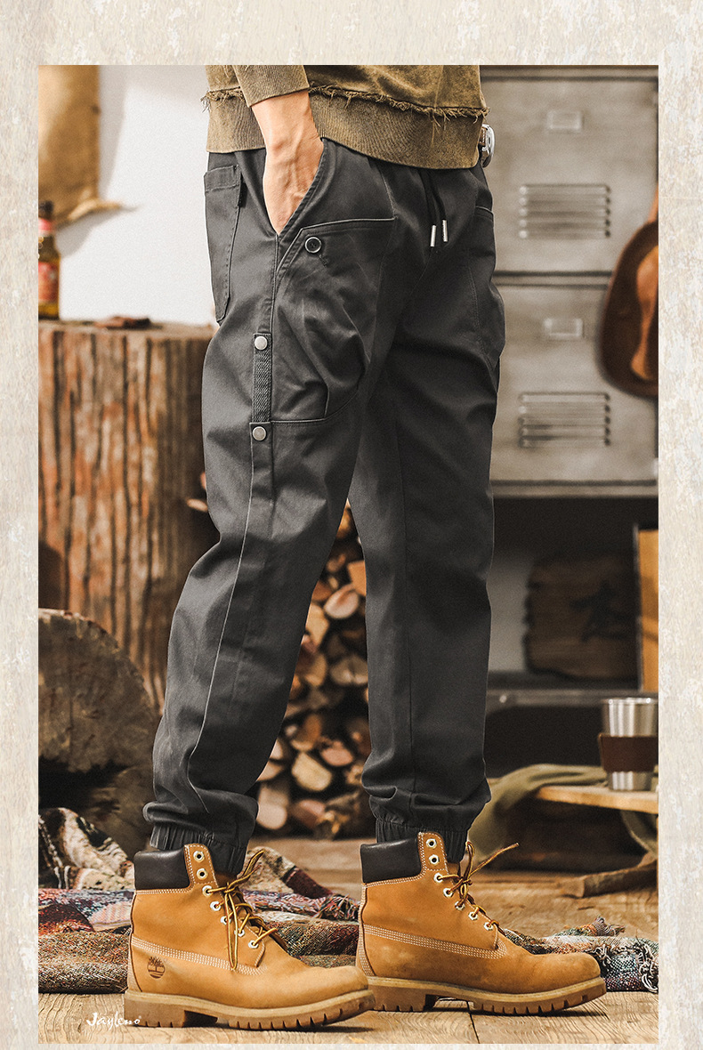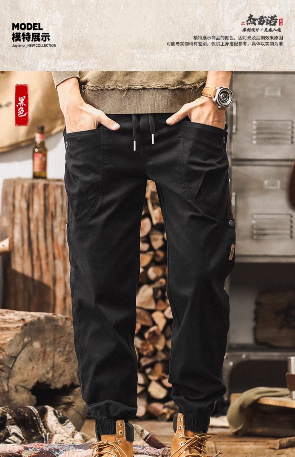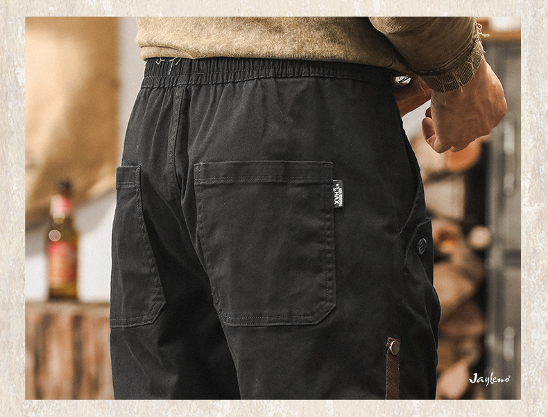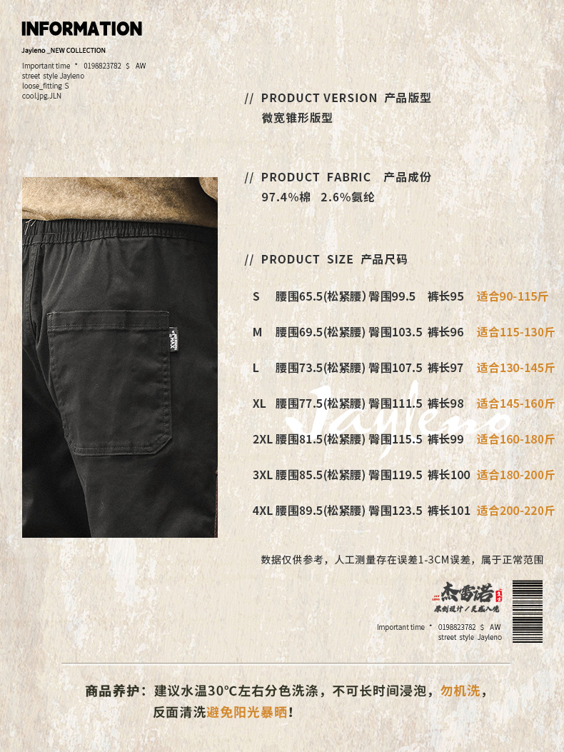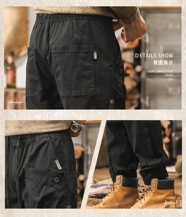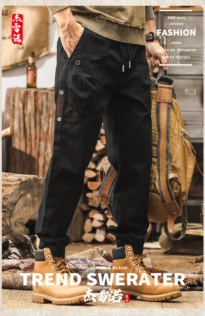 제레노 미국 레트로 스타일 작업복 바지 남성용 가을 겨울 2025 신상 트렌디 브랜드 루즈핏 레깅스 블랙 캐주얼 바지 남성용