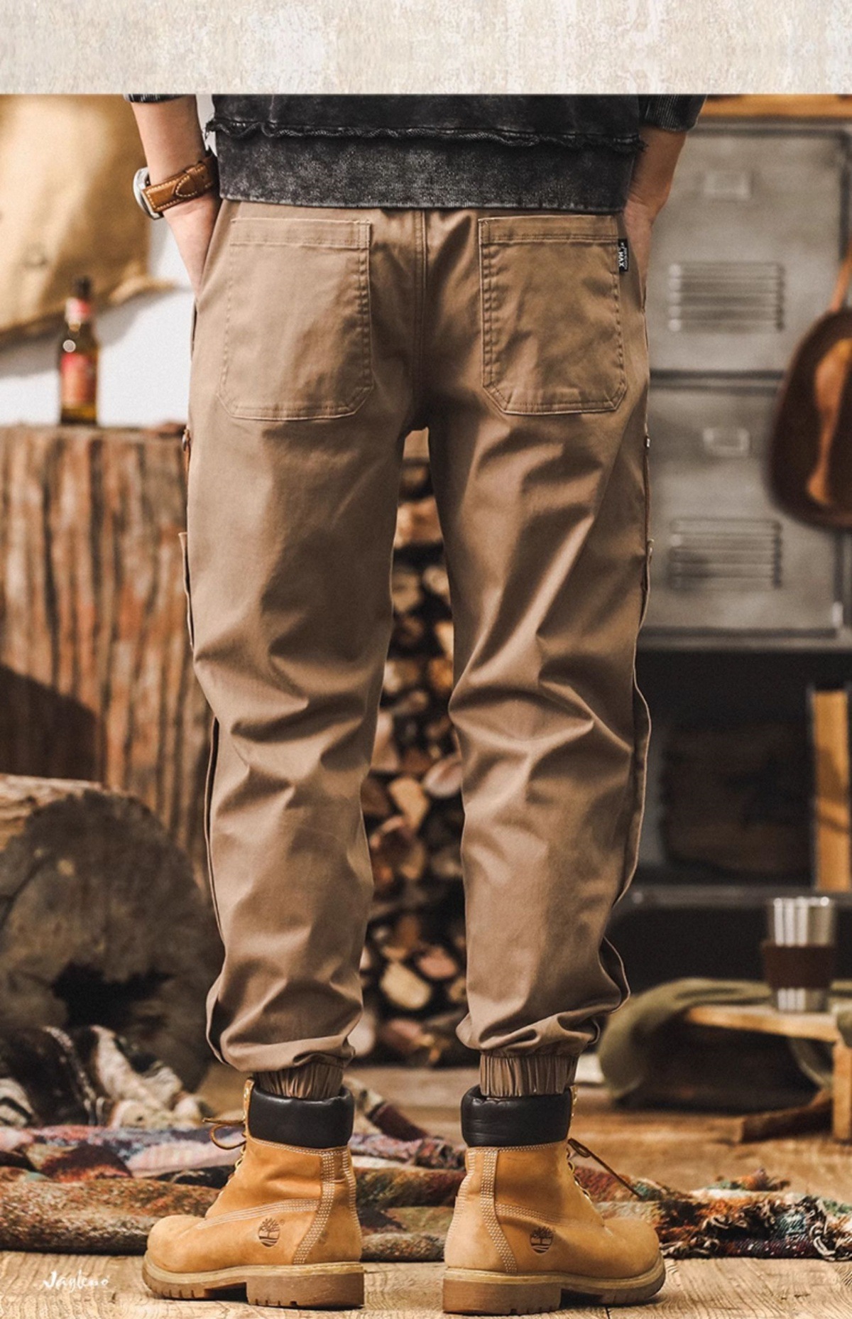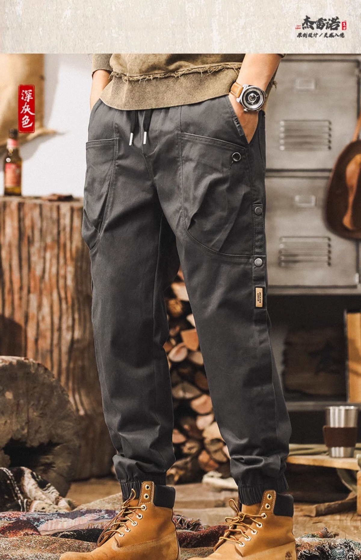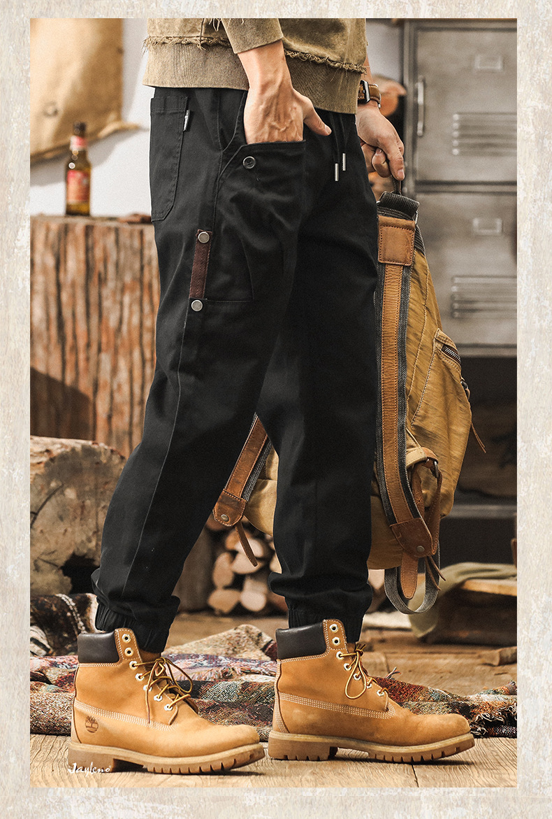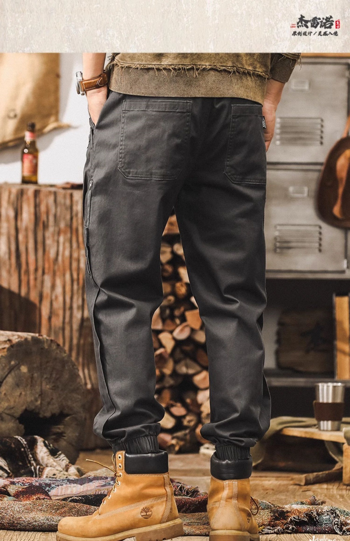 제레노 미국 레트로 스타일 작업복 바지 남성용 가을 겨울 2025 신상 트렌디 브랜드 루즈핏 레깅스 블랙 캐주얼 바지 남성용