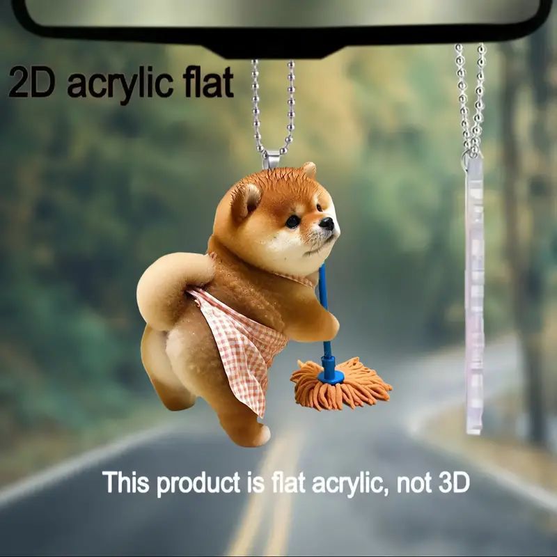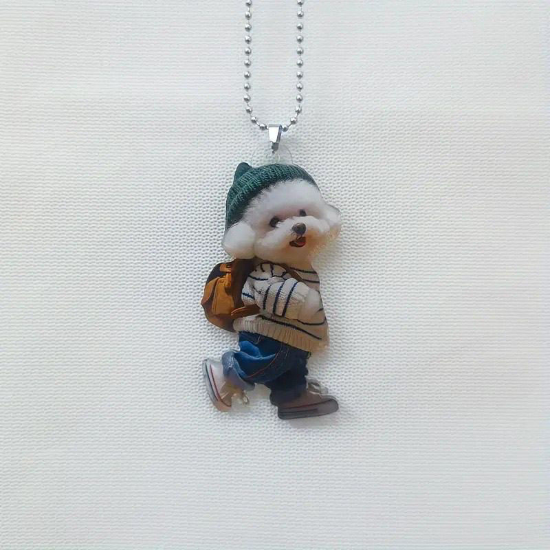 2D 창의적인 강아지 백팩 장식품 양면 고화질 아크릴 자동차 장식품 귀여운 테디 강아지 열쇠고리