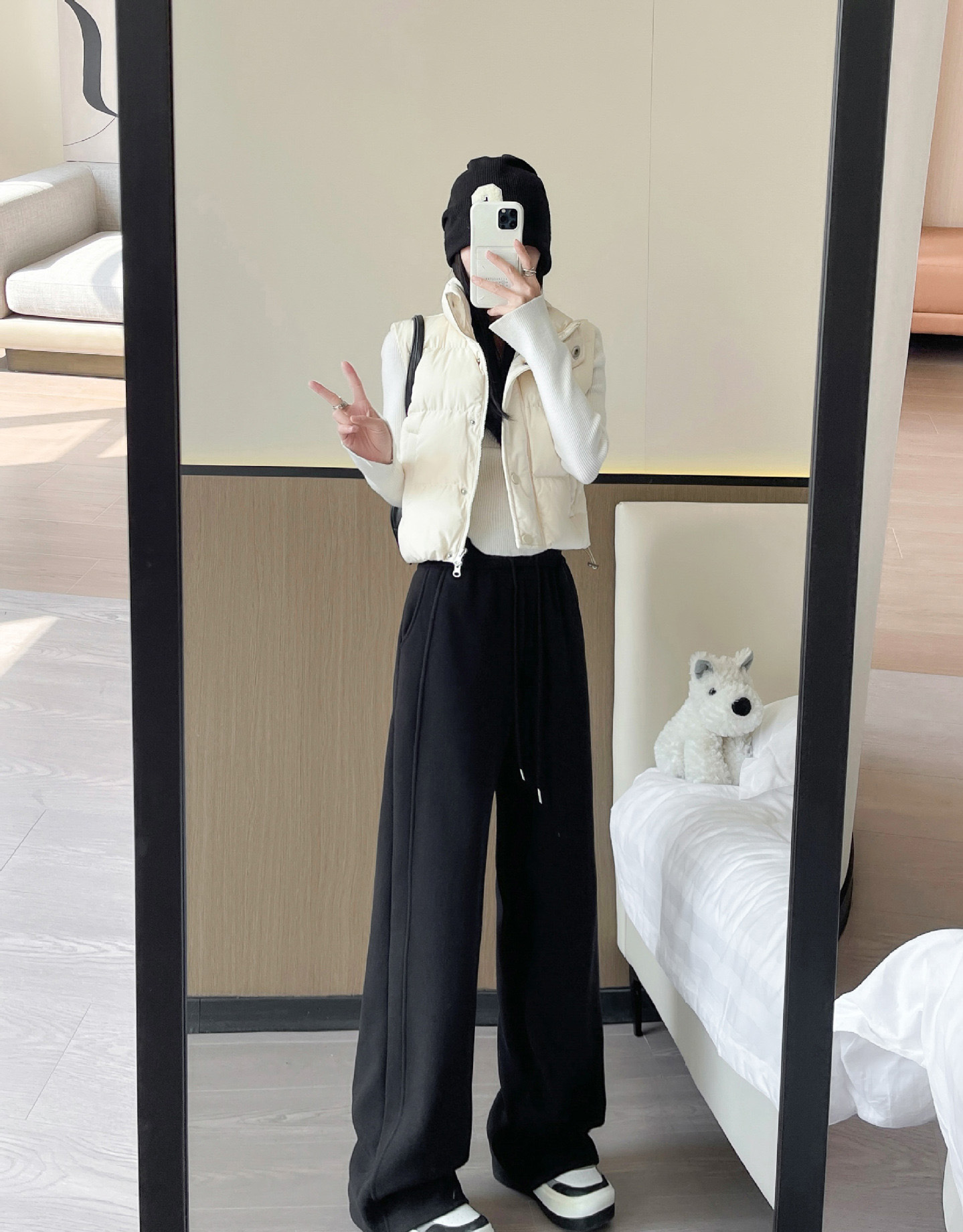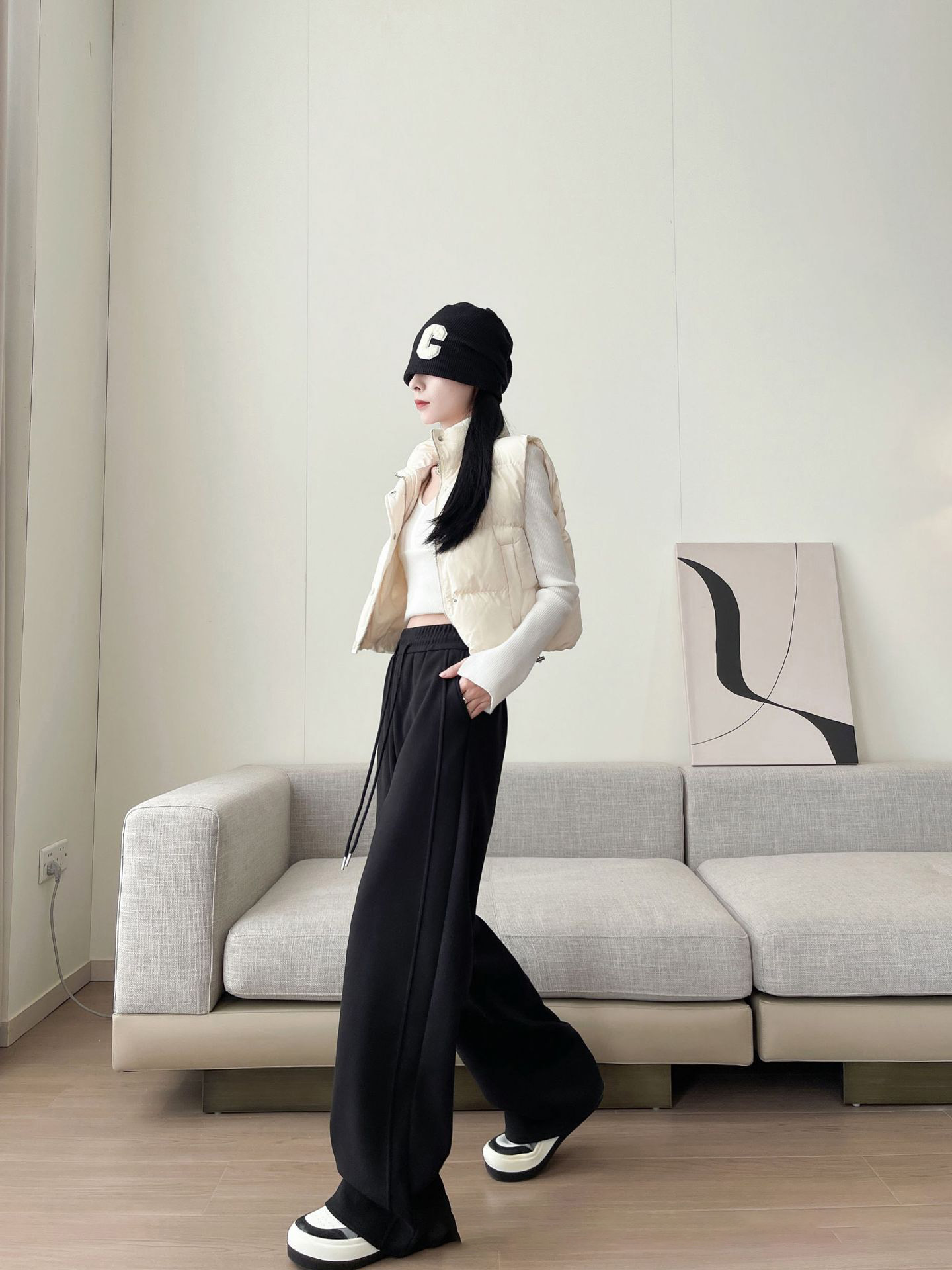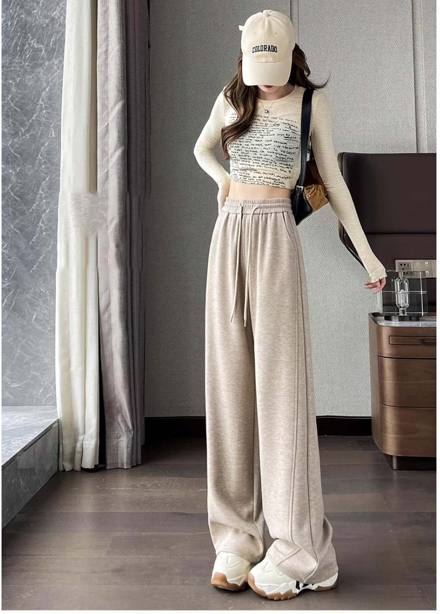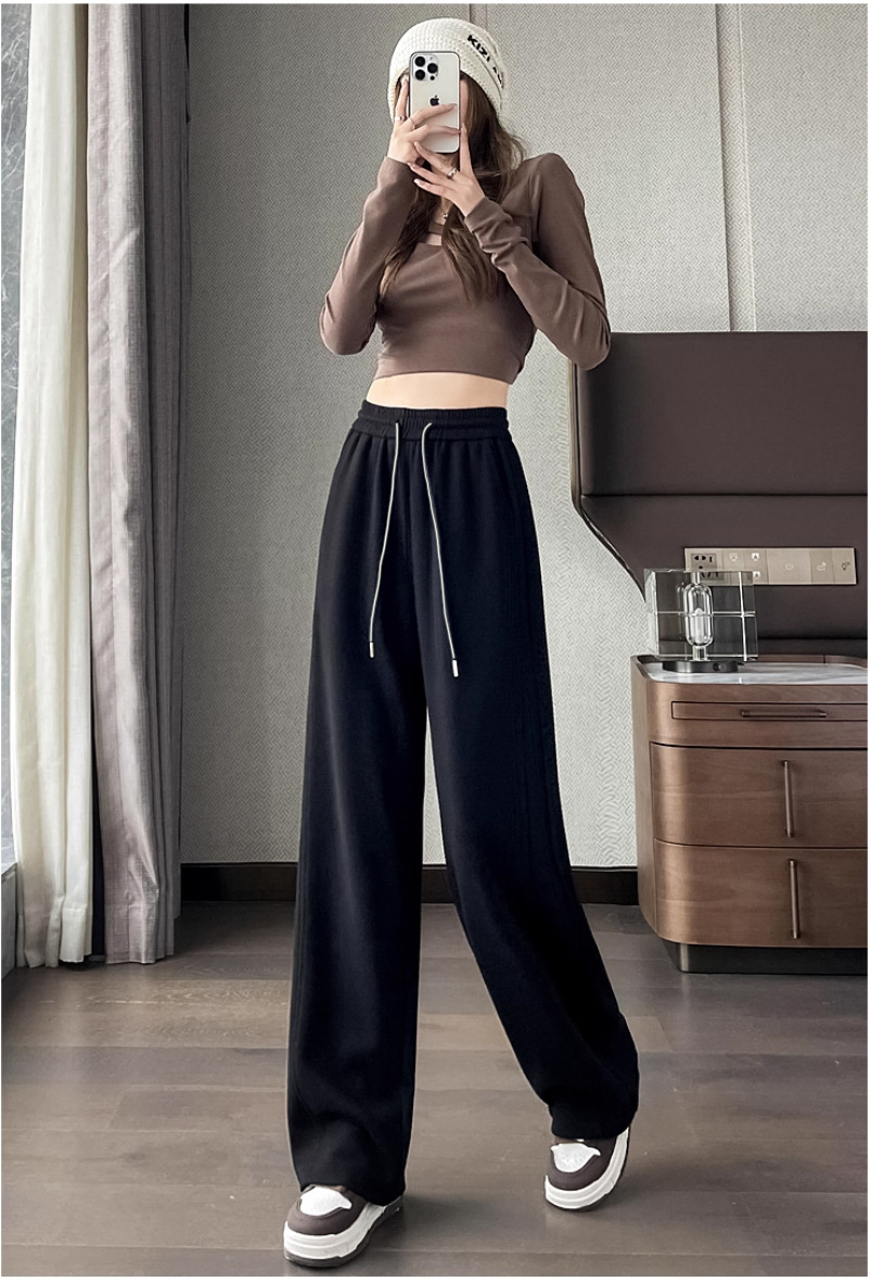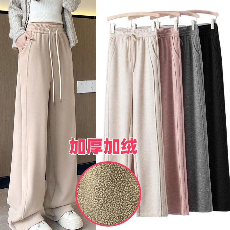 두꺼운 기모 스포츠 팬츠 여성용 가을 겨울 2025 신상 스트레이트 루즈 바나나 팬츠 캐주얼 팬츠 와이드 팬츠 크로스보더 Y