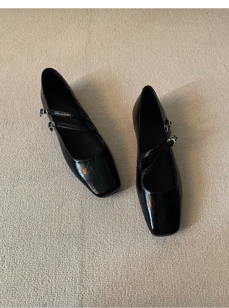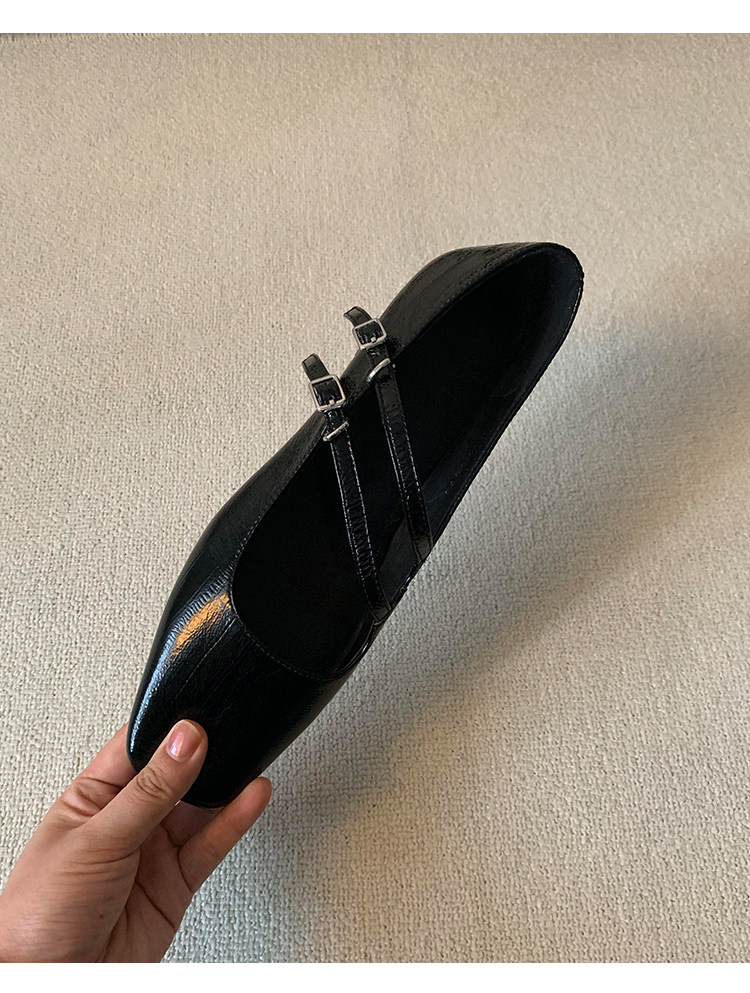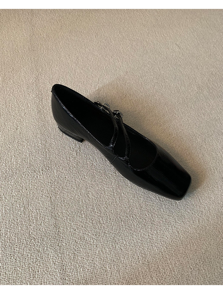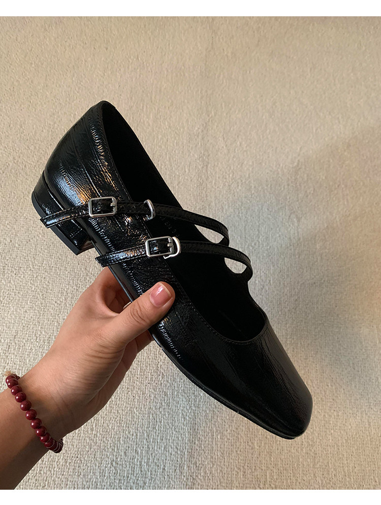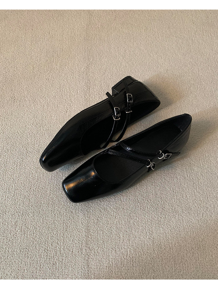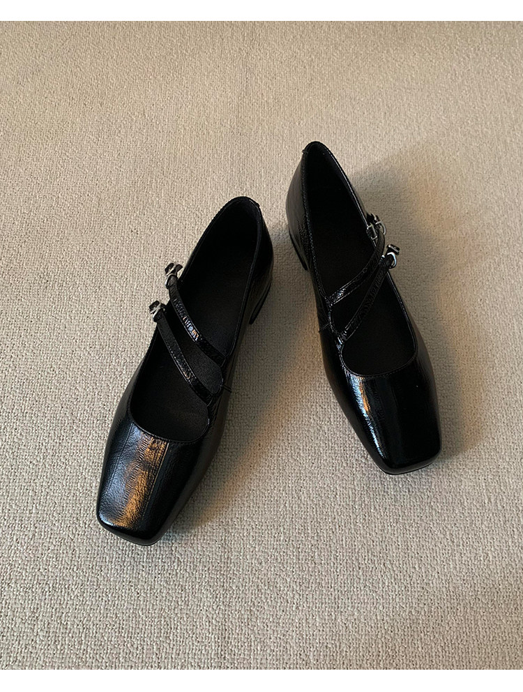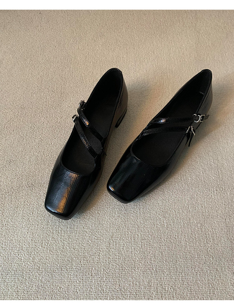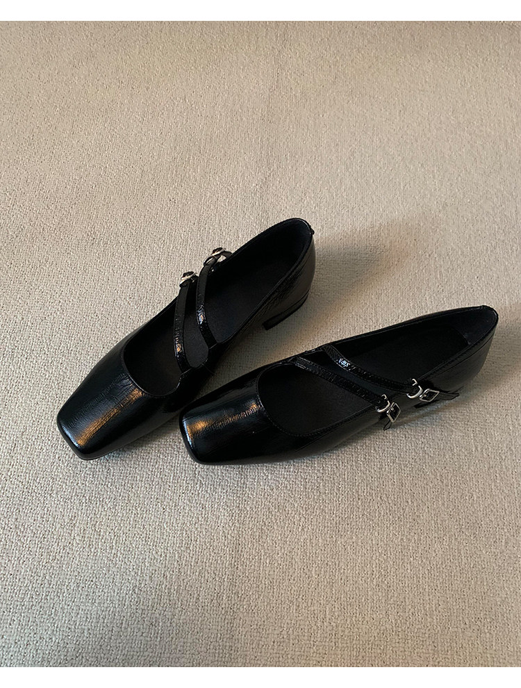 정품 가죽 2024 틈새 디자인 사각형 발가락 더블 스트랩 가죽 신발 간단한 올매치 두꺼운 굽 통근 메리 제인 여성 신발