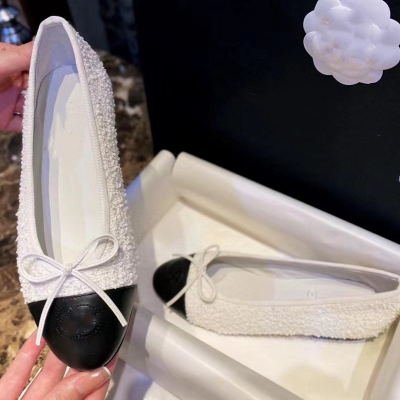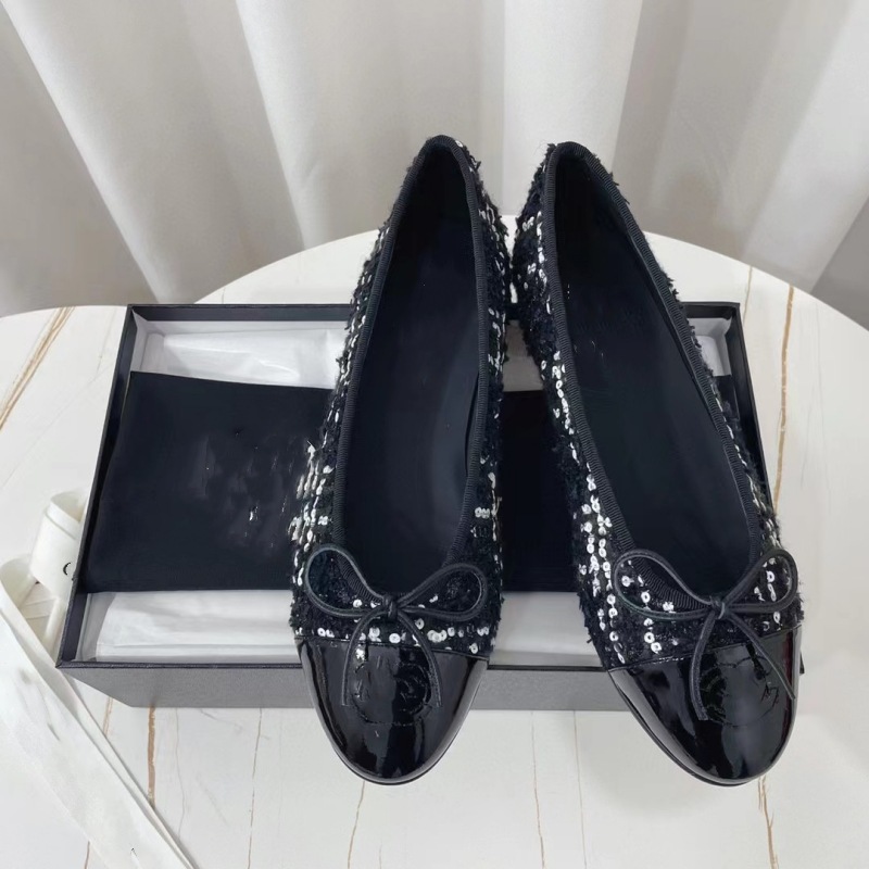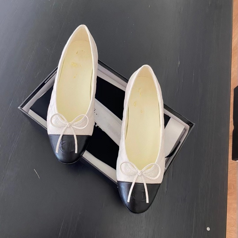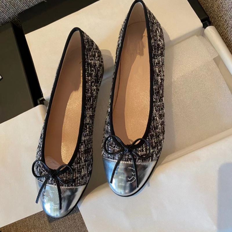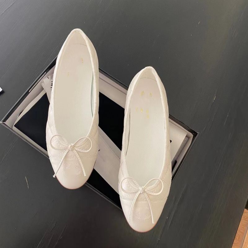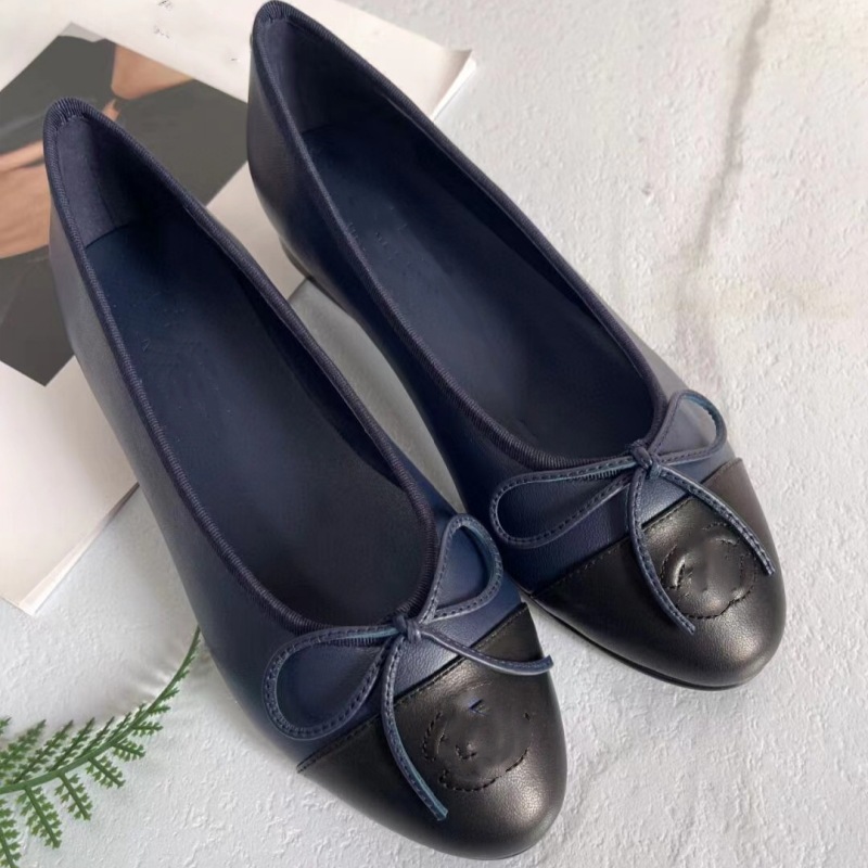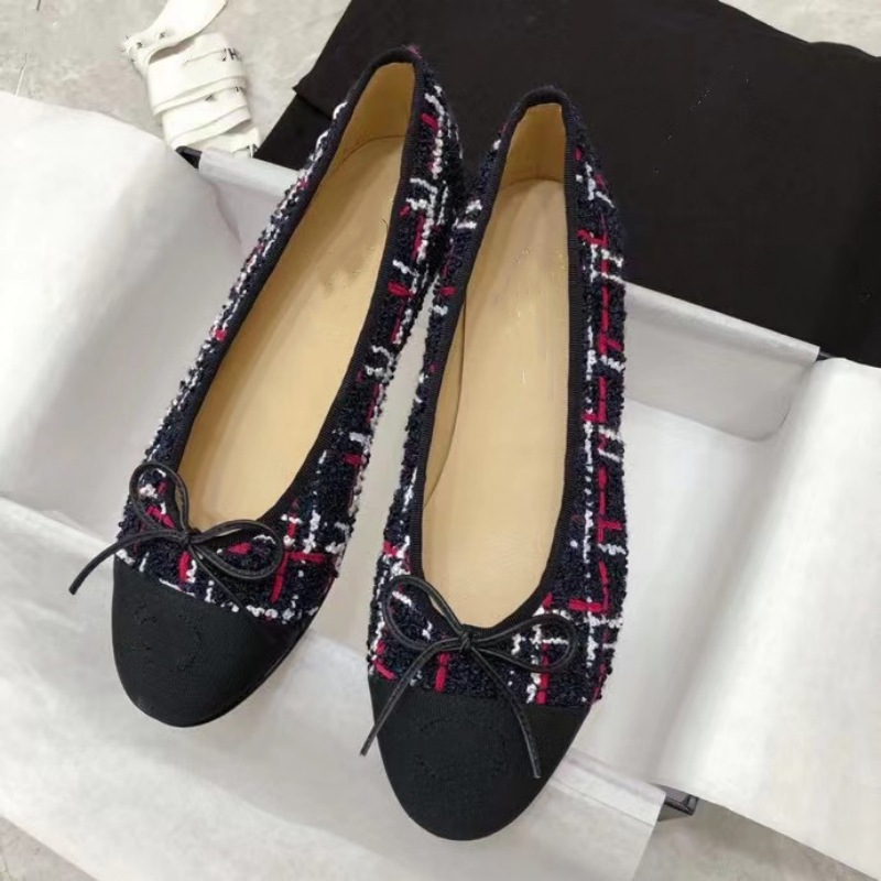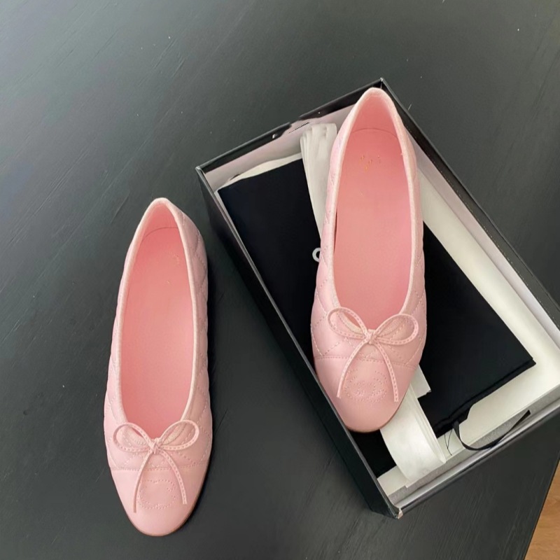 클래식 샤넬 스타일 발레 슈즈 여성용 활 둥근 발가락 플랫 슈즈 얕은 입 편안한 올 매치 슬립 온 여성용 게으른 신발