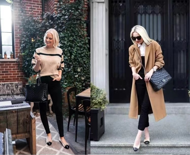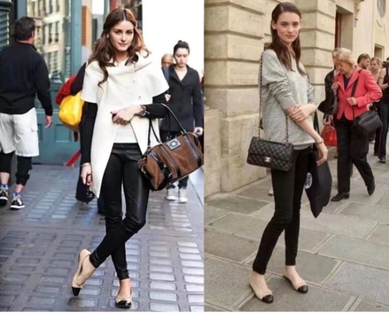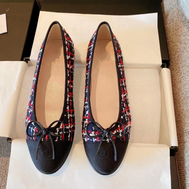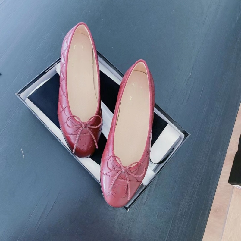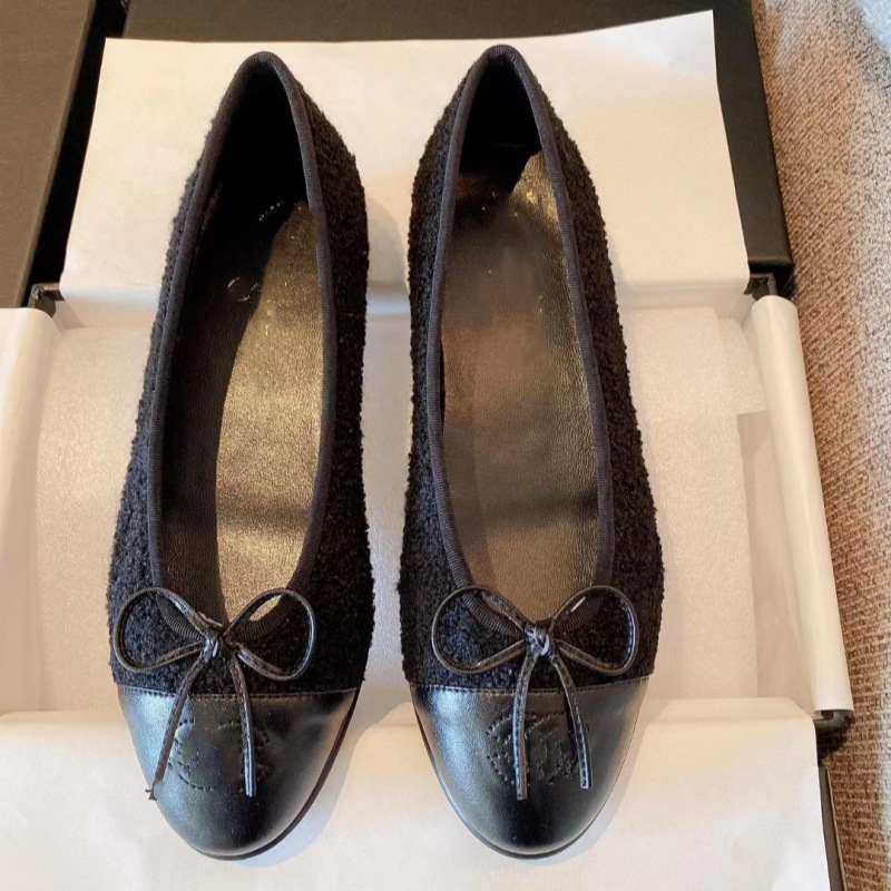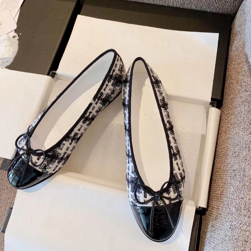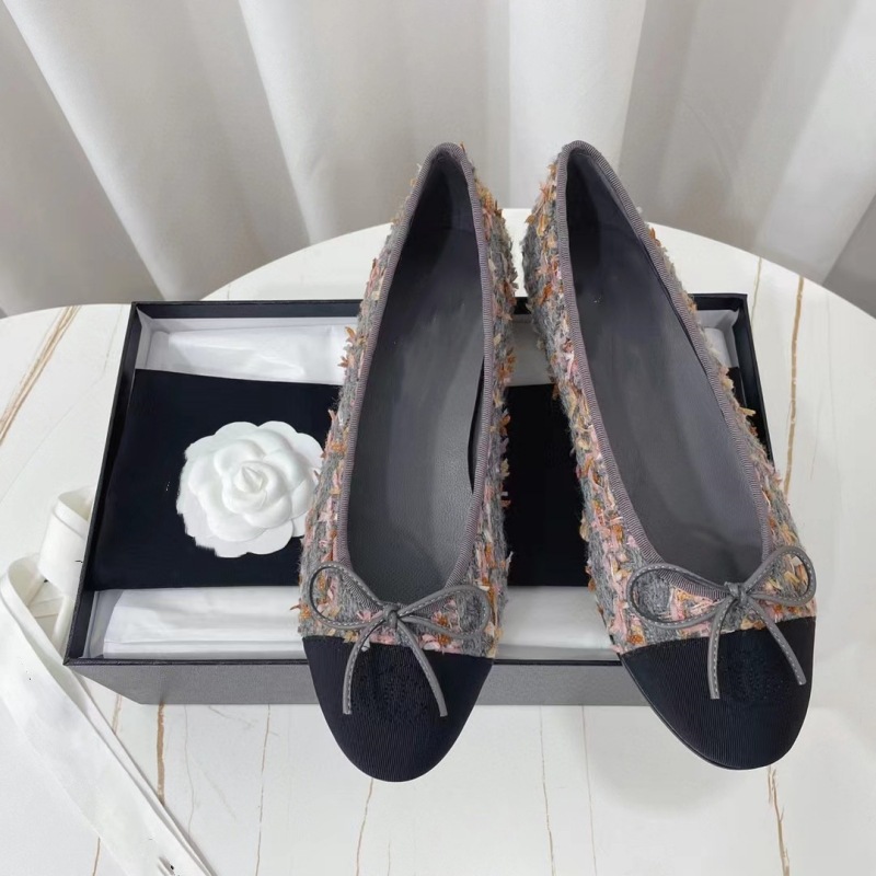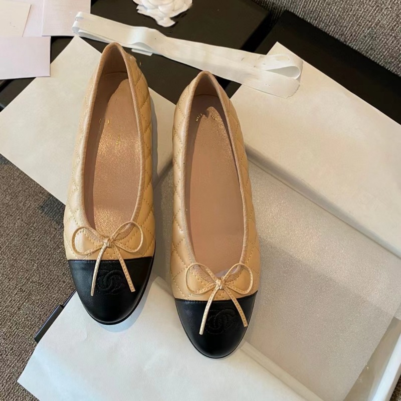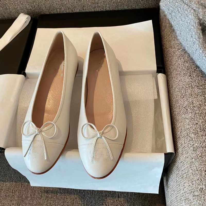 클래식 샤넬 스타일 발레 슈즈 여성용 활 둥근 발가락 플랫 슈즈 얕은 입 편안한 올 매치 슬립 온 여성용 게으른 신발