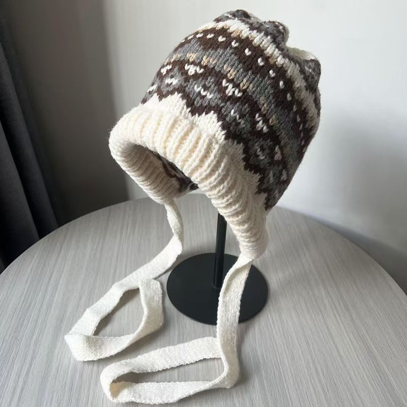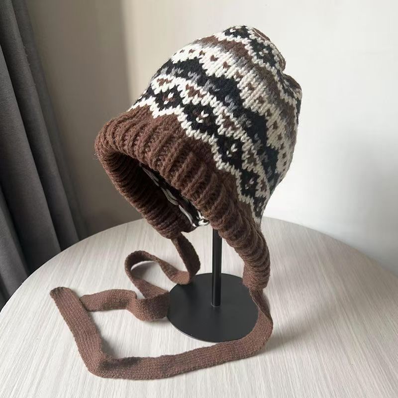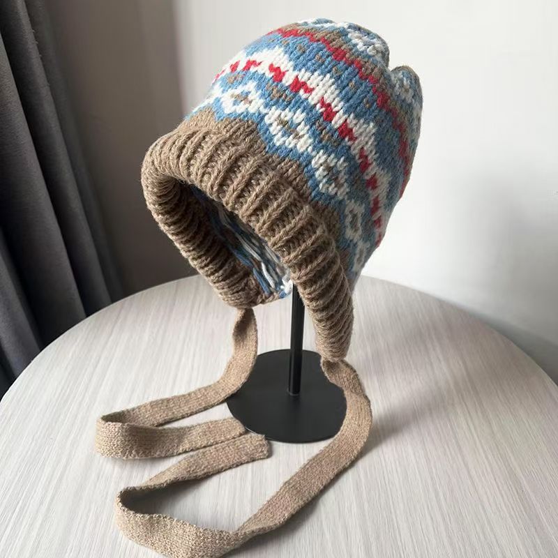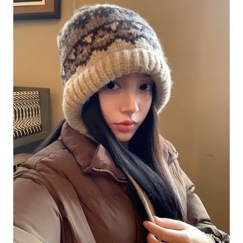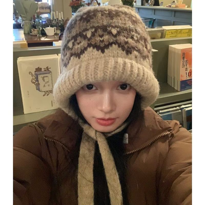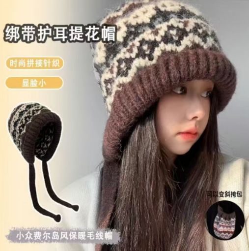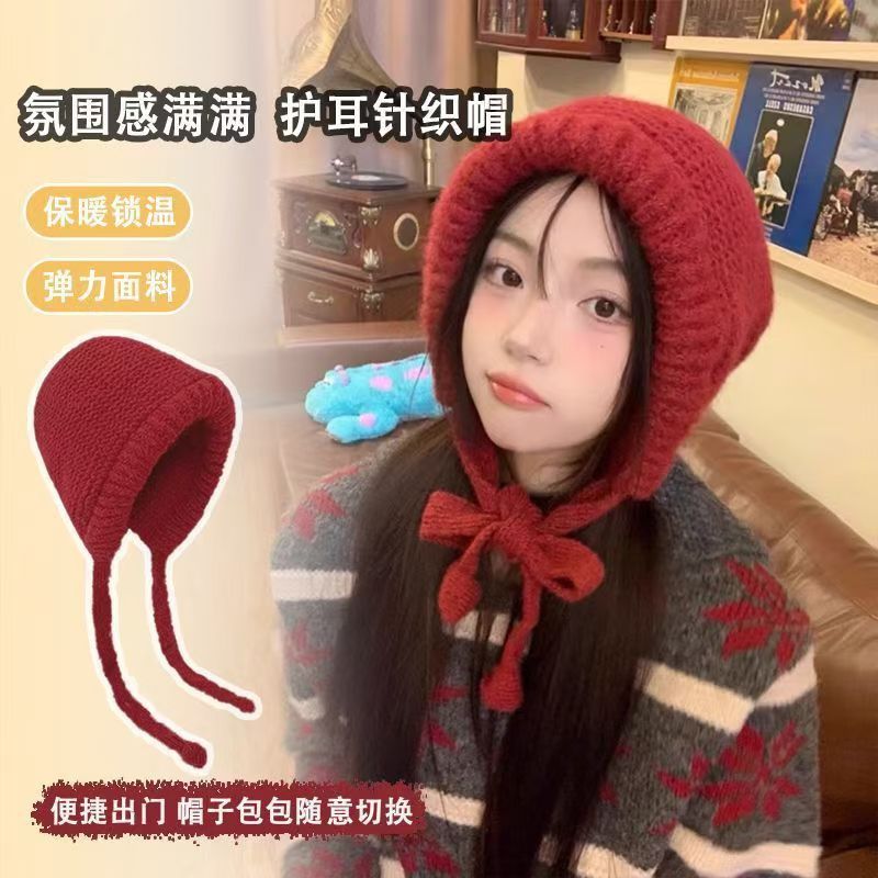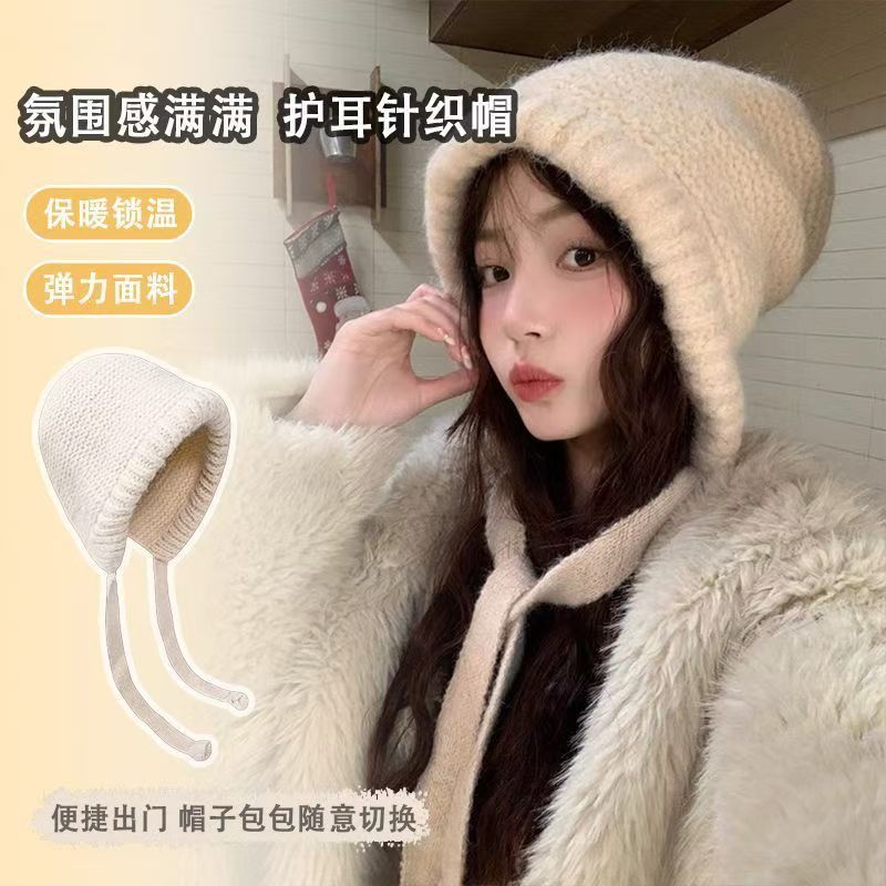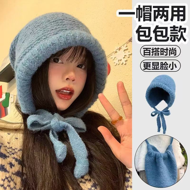 얼굴이 보이는 작은 가방과 모자 겸용 바라크 LF 모자 여성 겨울 따뜻한 토캡 모직 모자 귀 보호 니트 모자 트렌디