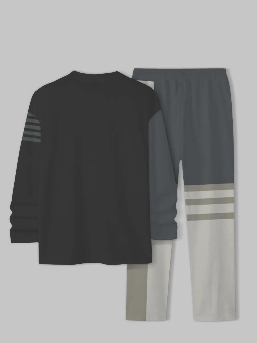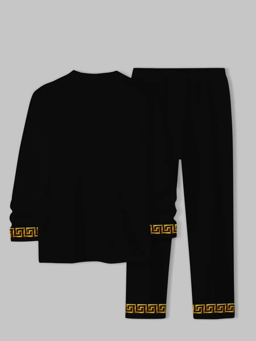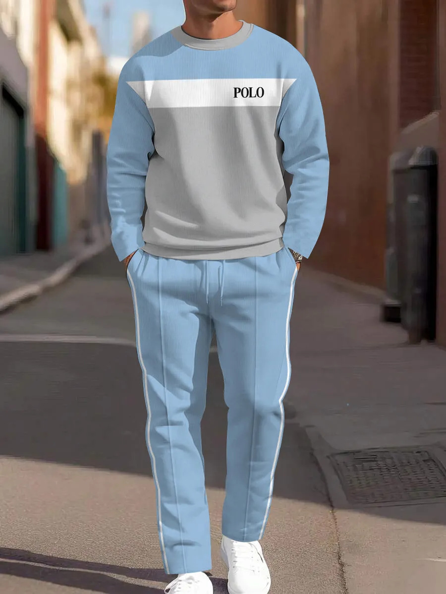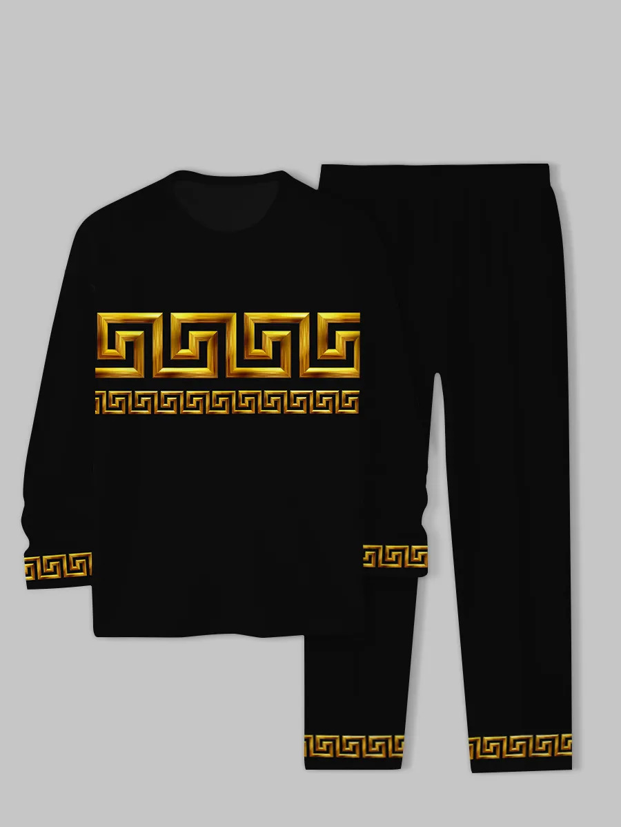 크로스 보더 라운드 넥 기술 프린트 캐주얼 스포츠 정장 남성용 긴팔 바지 루즈한 남성용 스웨트 셔츠와 스웨트 팬츠 투피스 세트