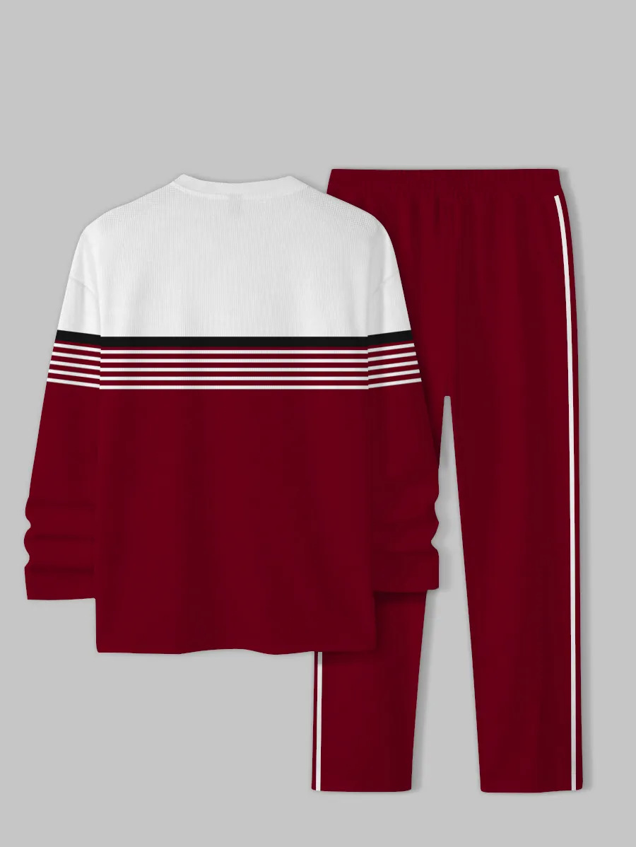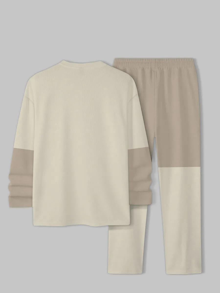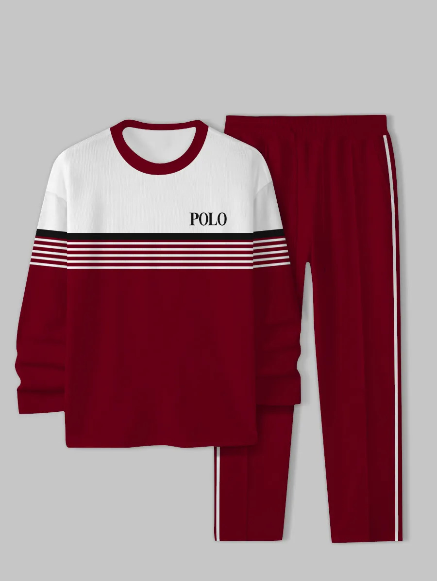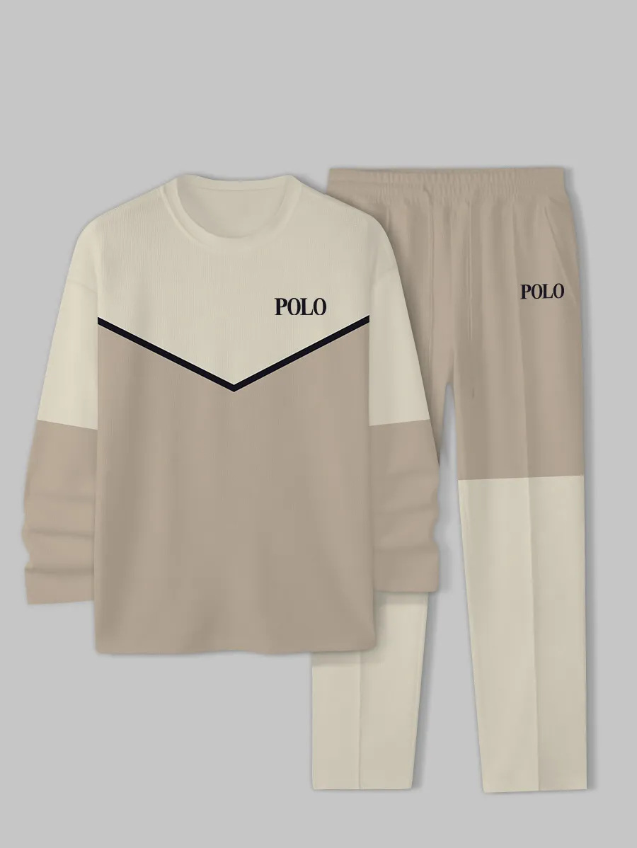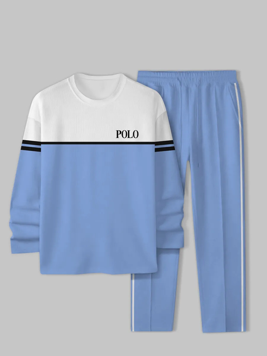 크로스 보더 라운드 넥 기술 프린트 캐주얼 스포츠 정장 남성용 긴팔 바지 루즈한 남성용 스웨트 셔츠와 스웨트 팬츠 투피스 세트