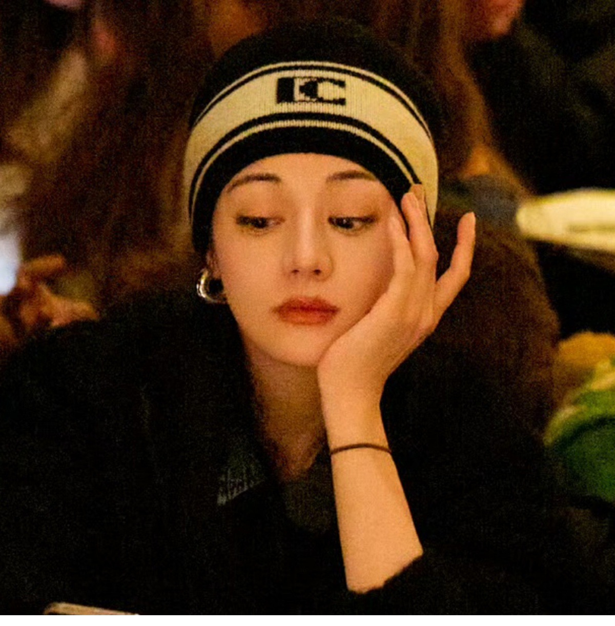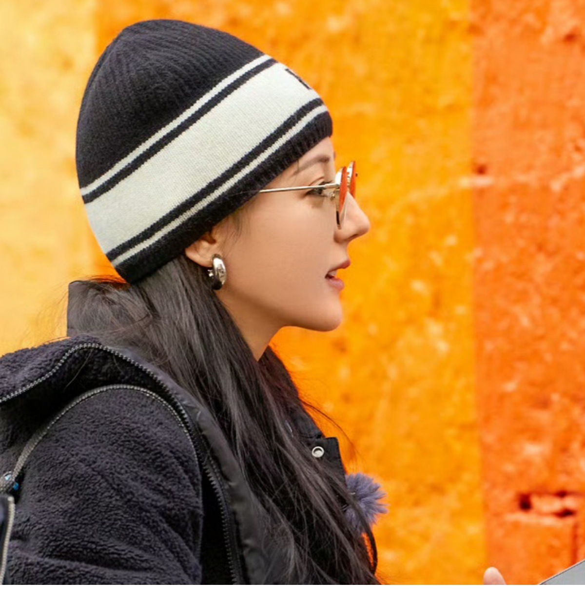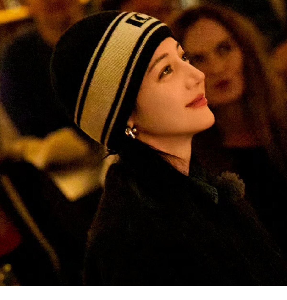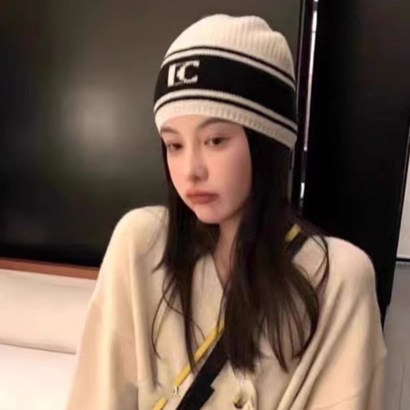 Huaer와 Junior Dilraba Same Style Hat 여성 한국식 올매치 이어 보호 흑백 편지 울 모자 니트 모자