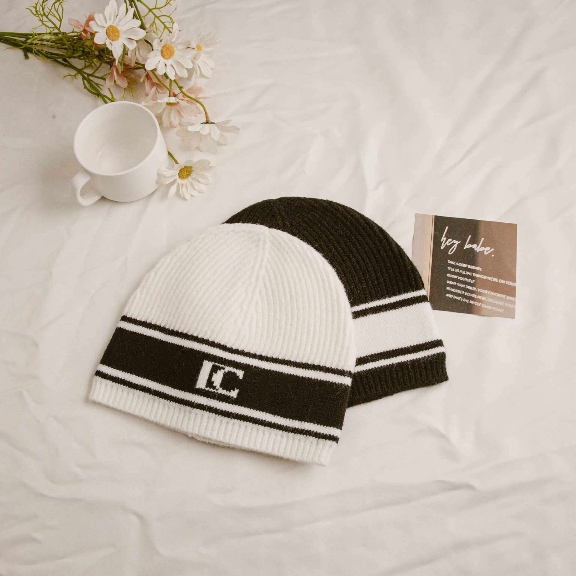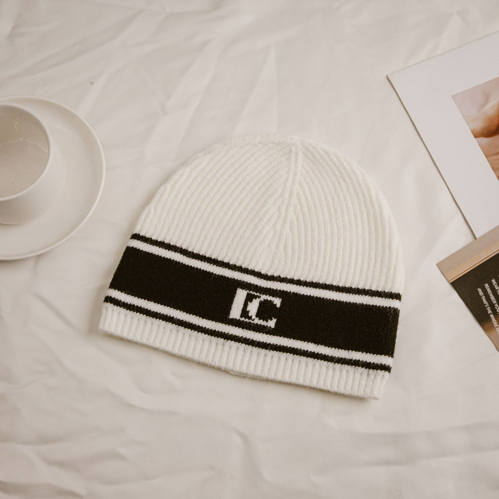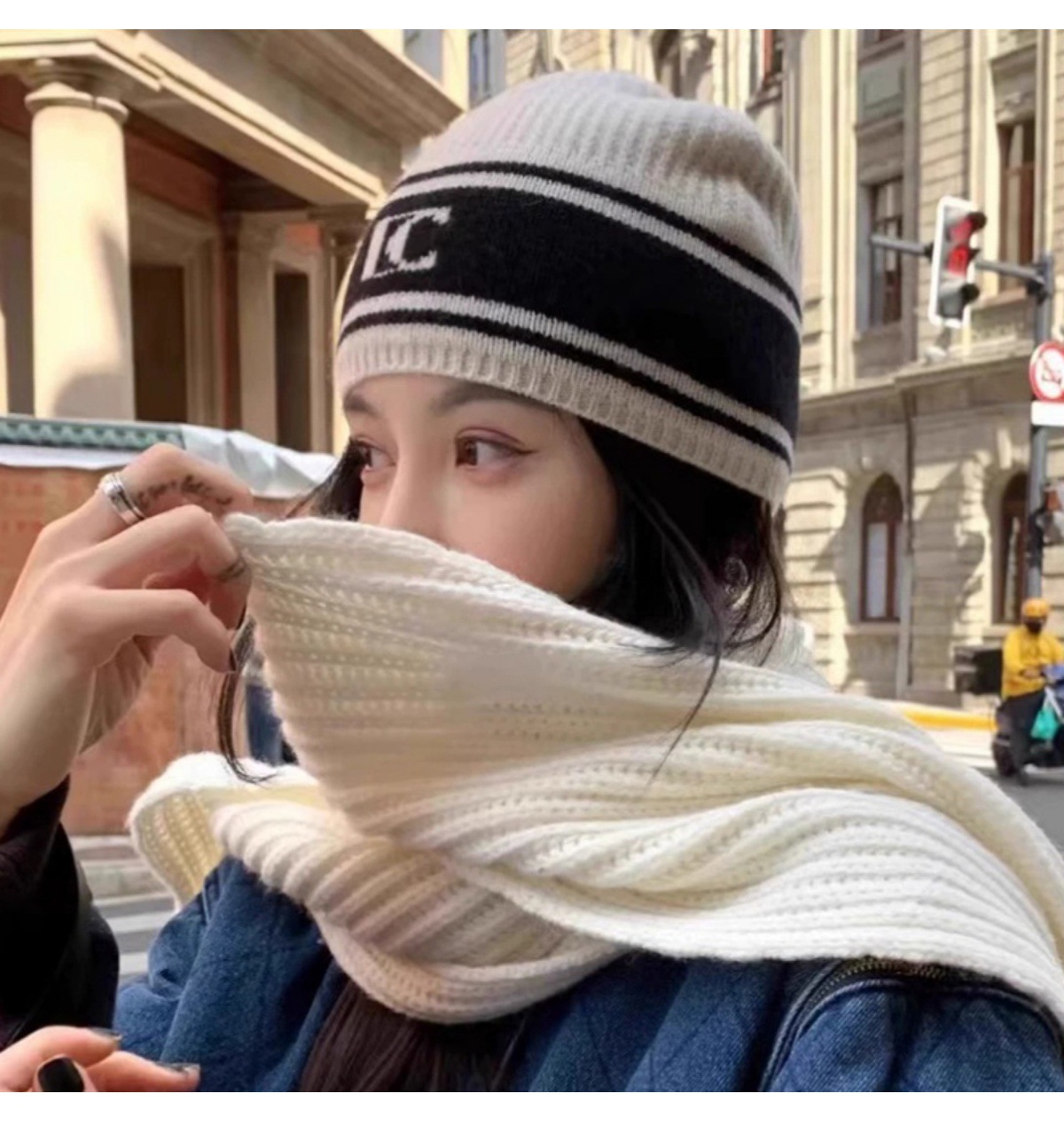 Huaer와 Junior Dilraba Same Style Hat 여성 한국식 올매치 이어 보호 흑백 편지 울 모자 니트 모자