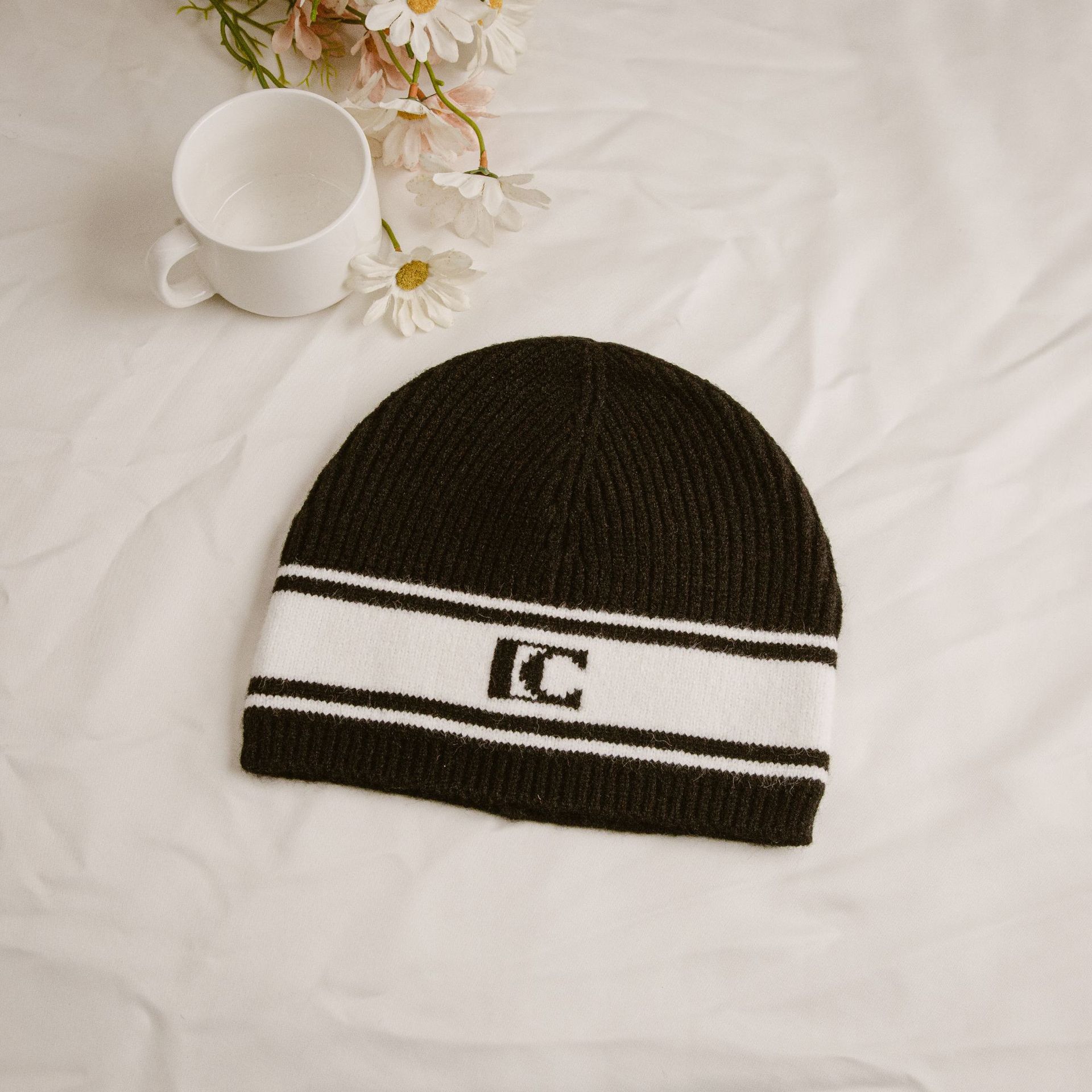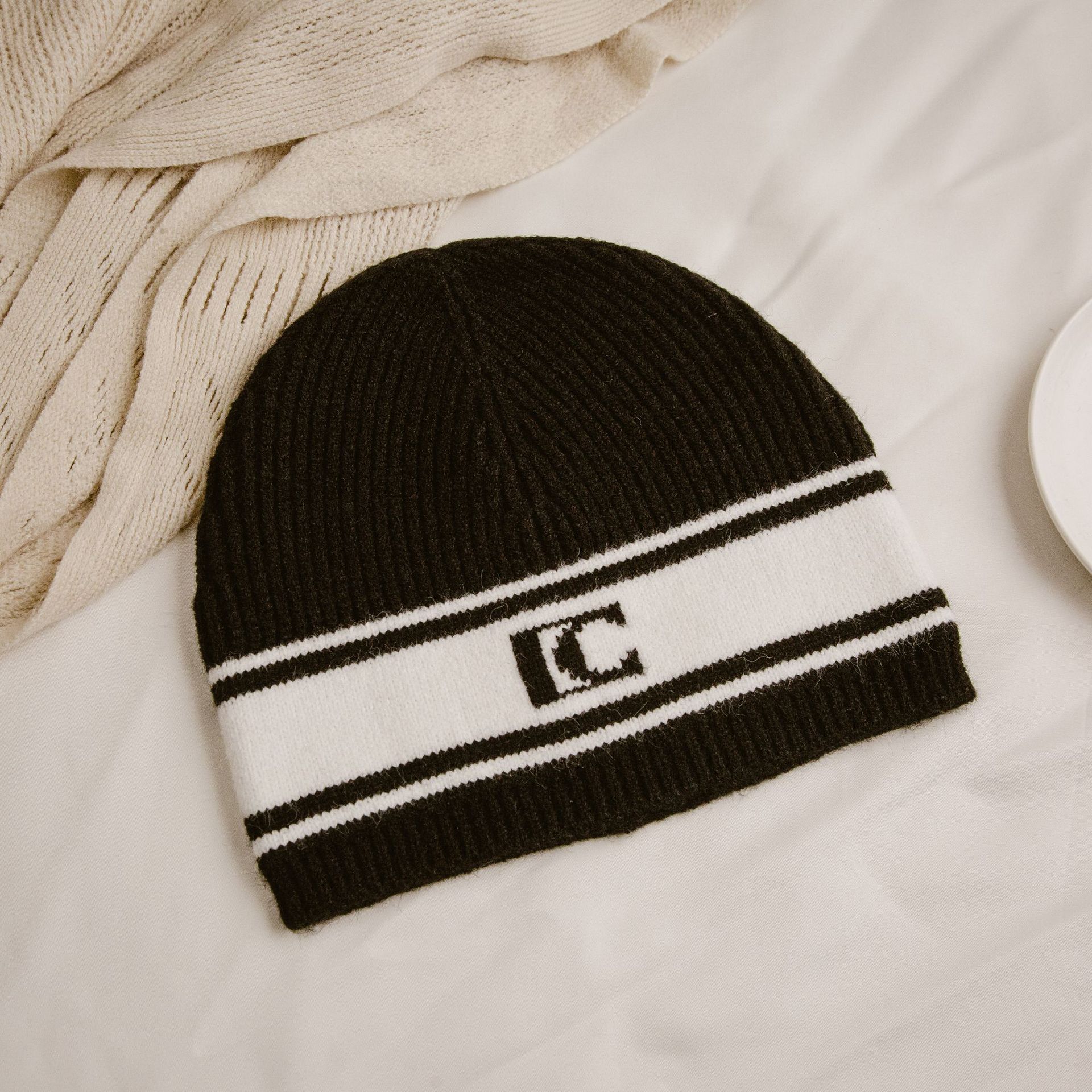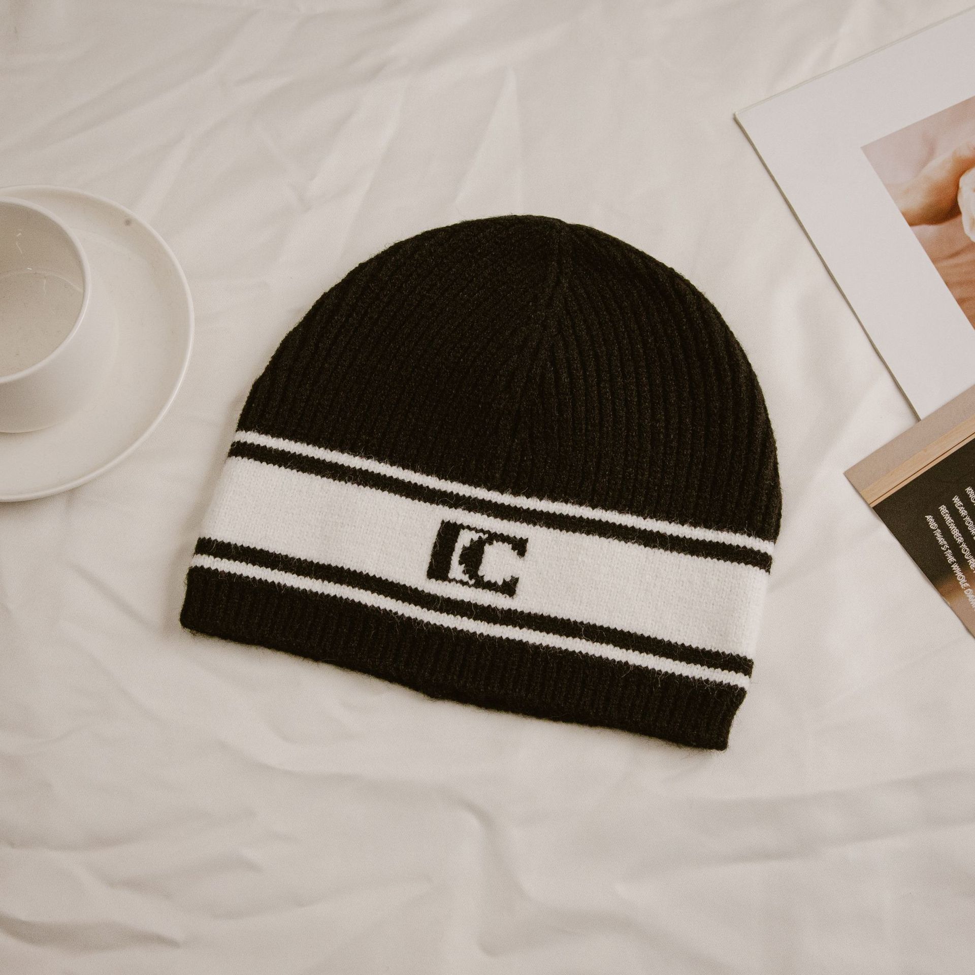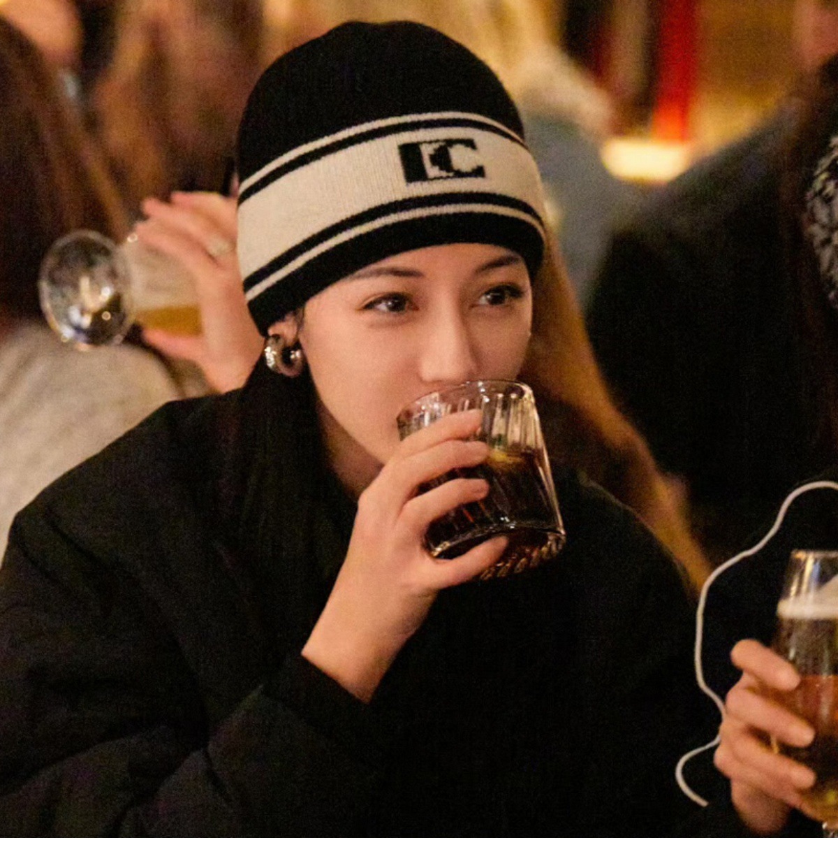 Huaer와 Junior Dilraba Same Style Hat 여성 한국식 올매치 이어 보호 흑백 편지 울 모자 니트 모자