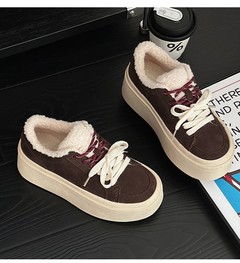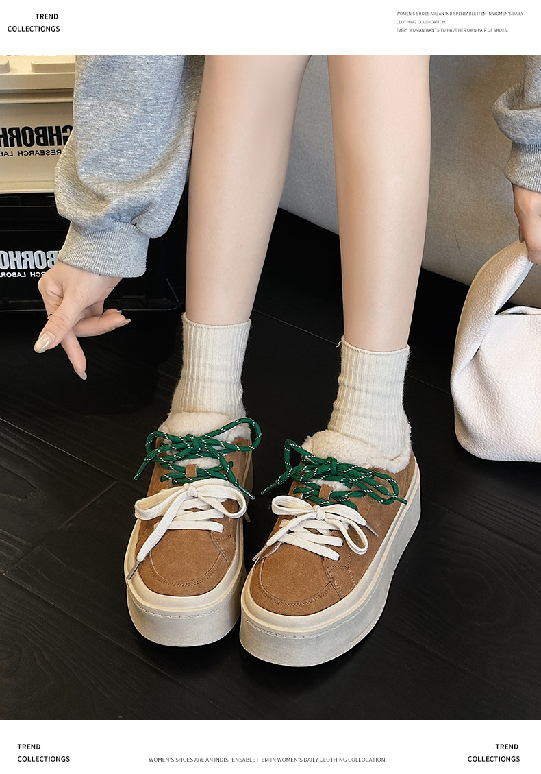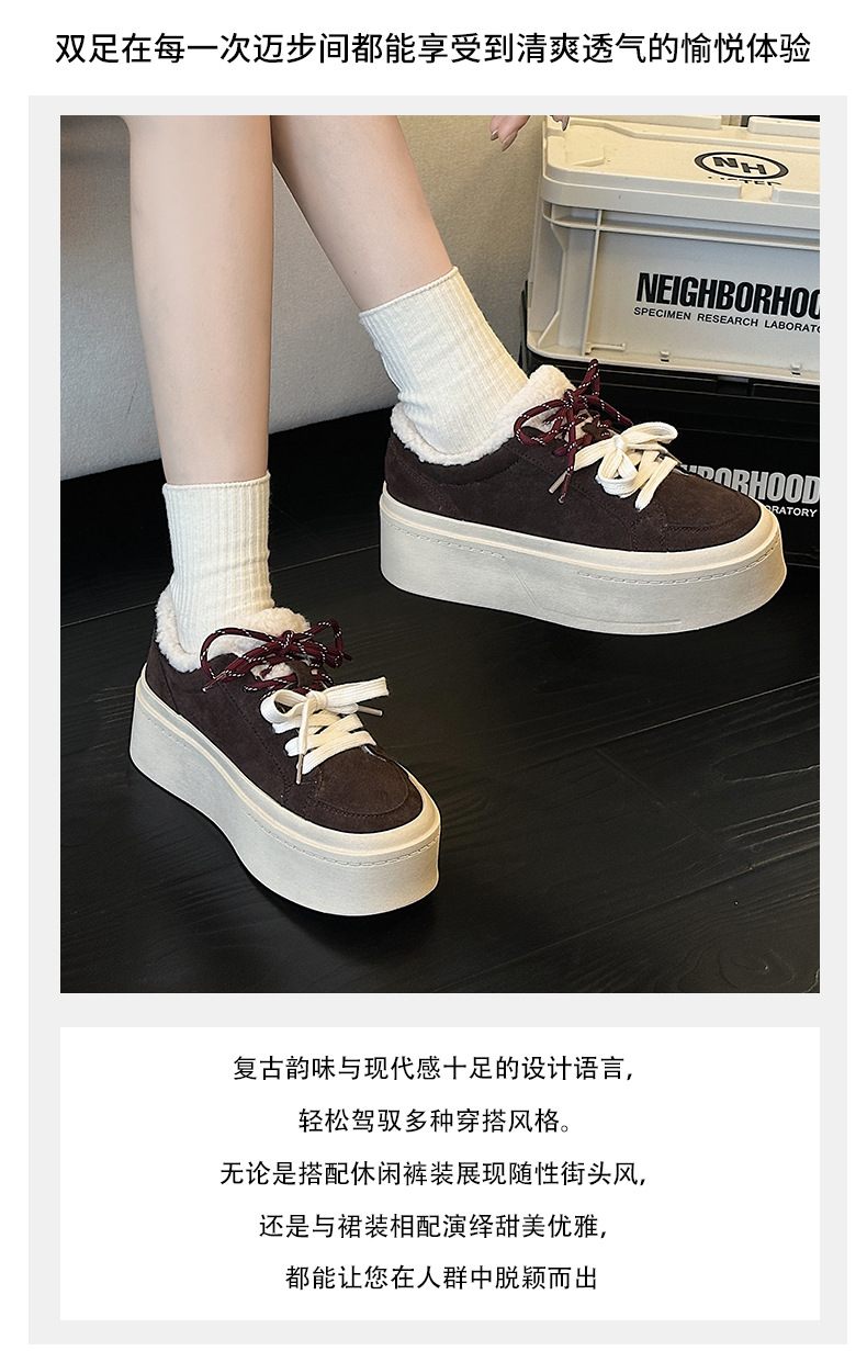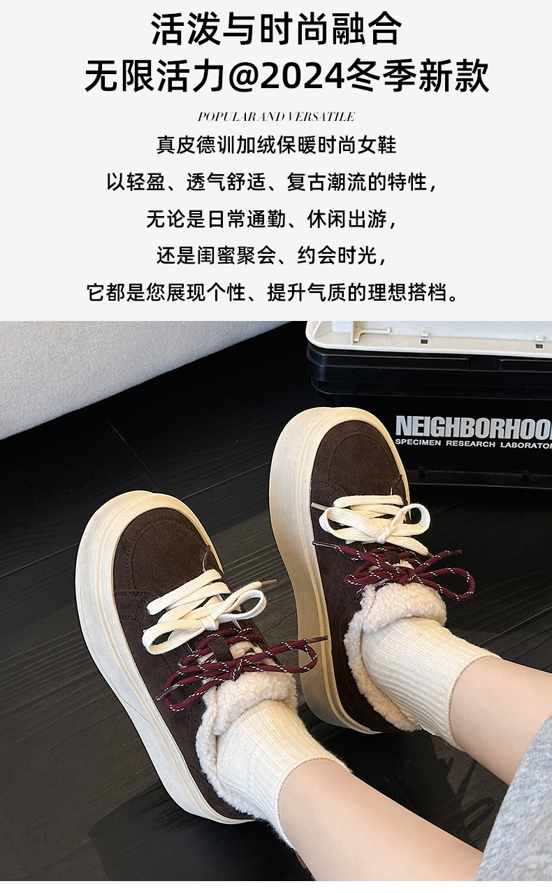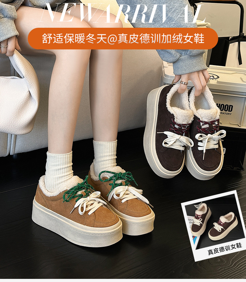 2025 가을 겨울 신상 여성용 가죽 플러스 벨벳 스니커즈, 투톤 레이스업 보드화, 다용도 아가니 슈즈, 두꺼운 밑창, 빈티지 캐주얼 슈즈
