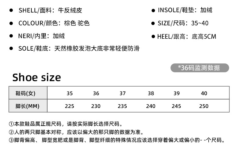 | 鞋跟高度 | 中跟(3-5CM) | 颜色 | 棕色加绒, 驼色加绒 |