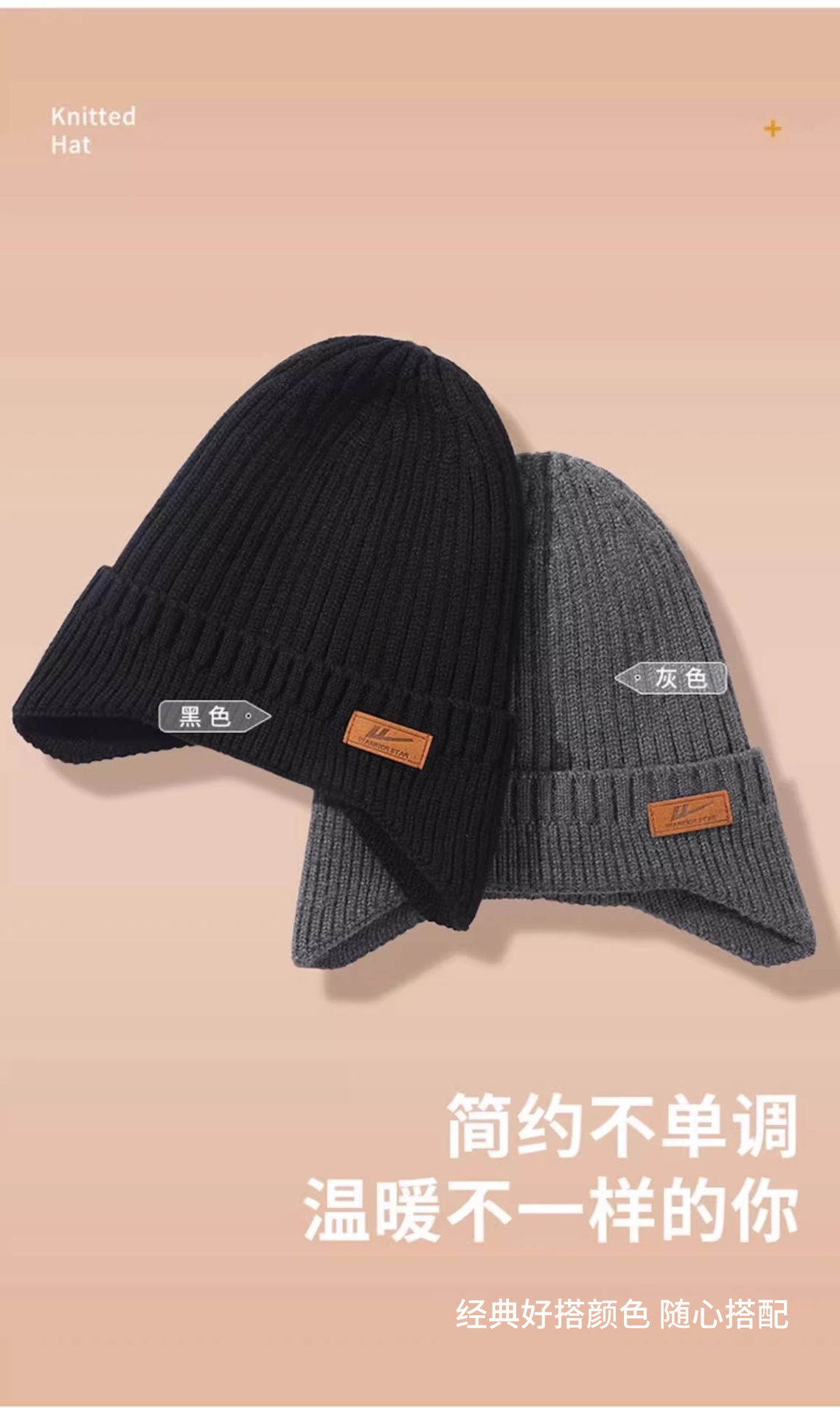 | 帽檐款式 | 无檐 | 颜色 | 黑色针织帽【护耳款】, 黑色保暖帽【防风款】, 灰色保暖帽【防风款】, 黑色【帽子+围脖】, 灰色【帽子+围脖】 |