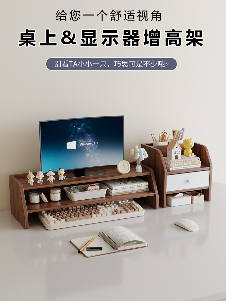 더블 레이어 컴퓨터 랙 데스크탑 스토리지 랙 조합 깊은 호두