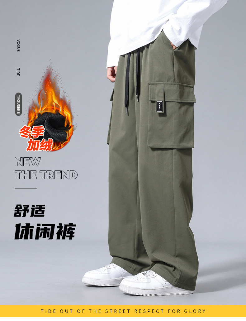 스트레이트 툴링 바지 남자 기모 두꺼운 바지 남자 가을 겨울 청소년 스포츠 바지 캐주얼 바지