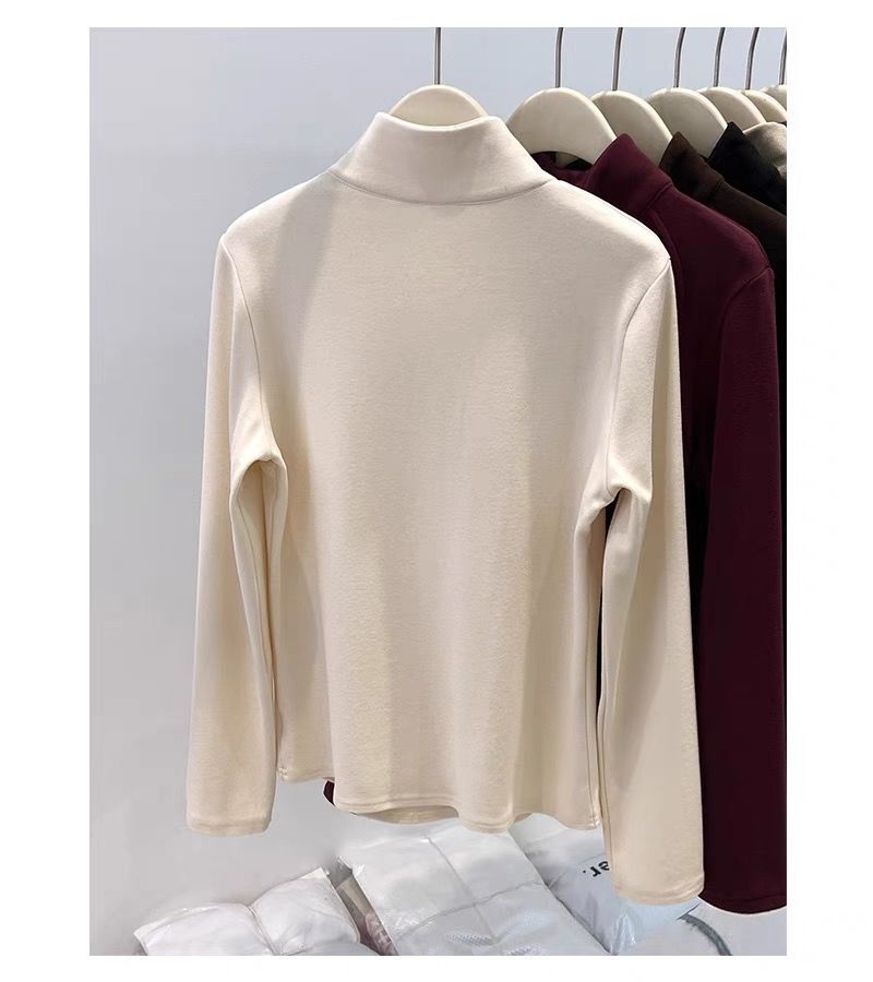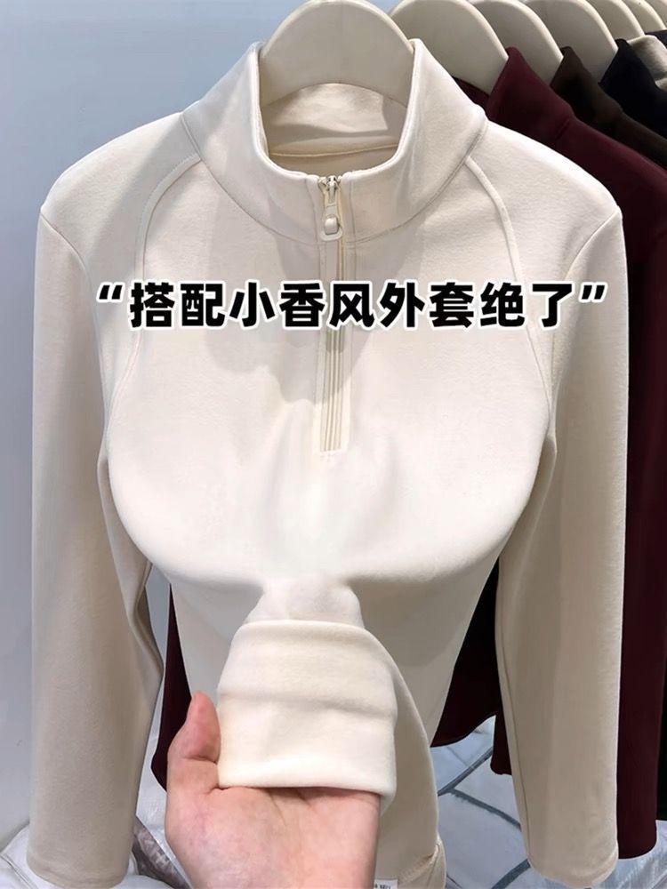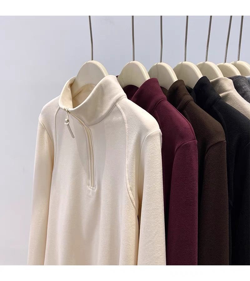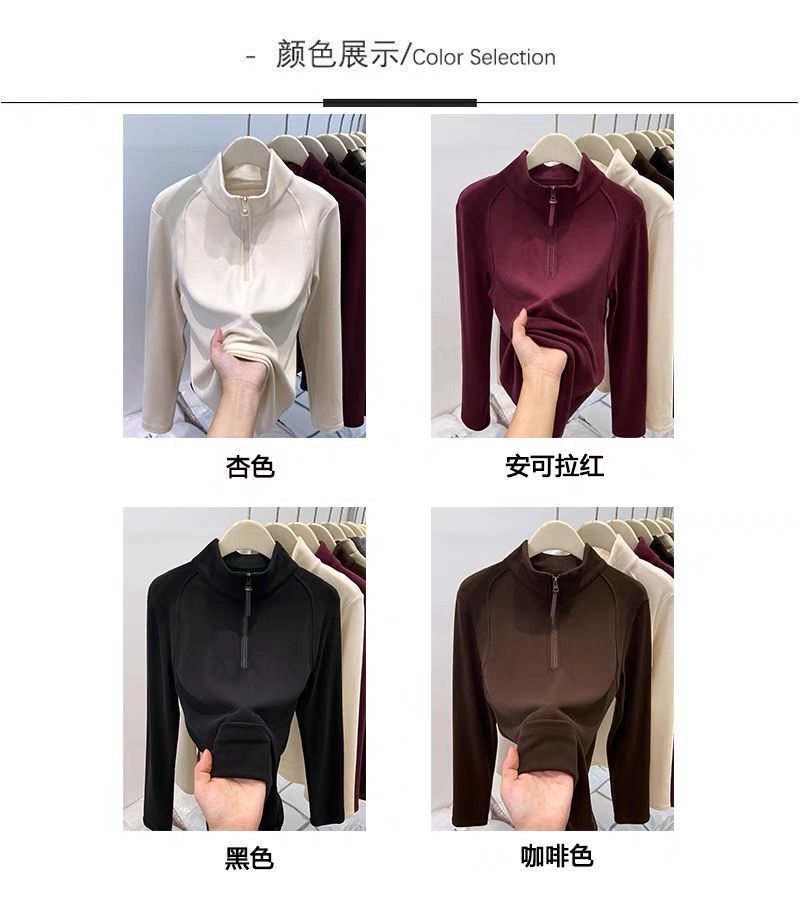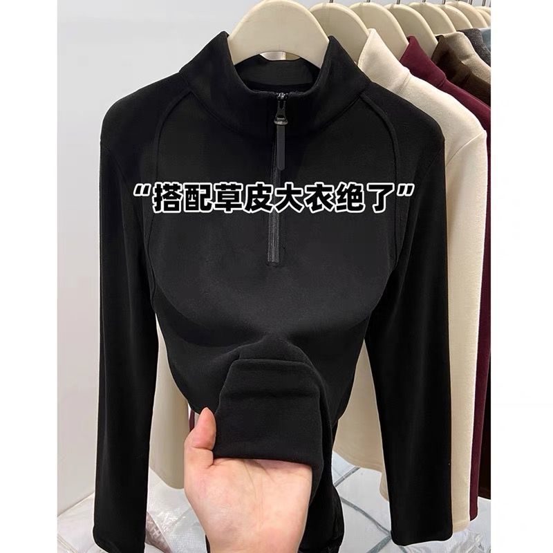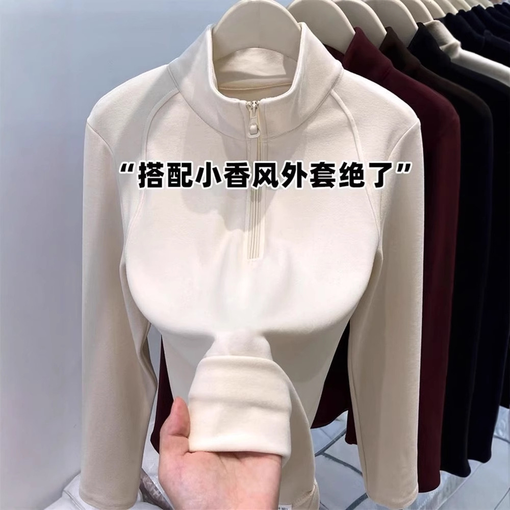반 지퍼 스탠드 칼라 양면 벨벳 긴팔 스웨터 여성의 가을과 겨울 새로운 두꺼운 바닥 셔츠 안쪽과 바깥 쪽