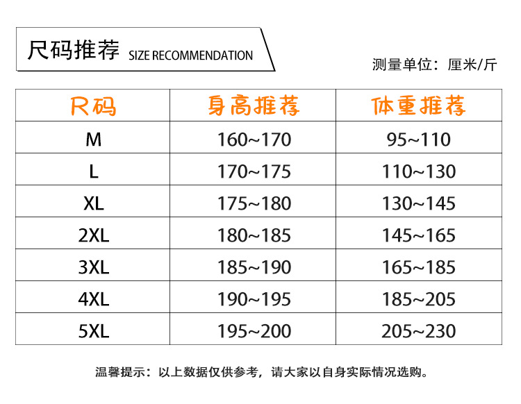 | 颜色 | 白色加绒, 黑色加绒, 灰色加绒, 杏色加绒, 白色, 黑色, 灰色, 杏色 | 尺码 | M(建议95-110斤), L(建议110-130斤), XL(建议130-145斤), 2XL(建议145-165斤), 3XL(建议165-185斤), 4XL(建议185-205斤), 5XL(建议205-230斤) |