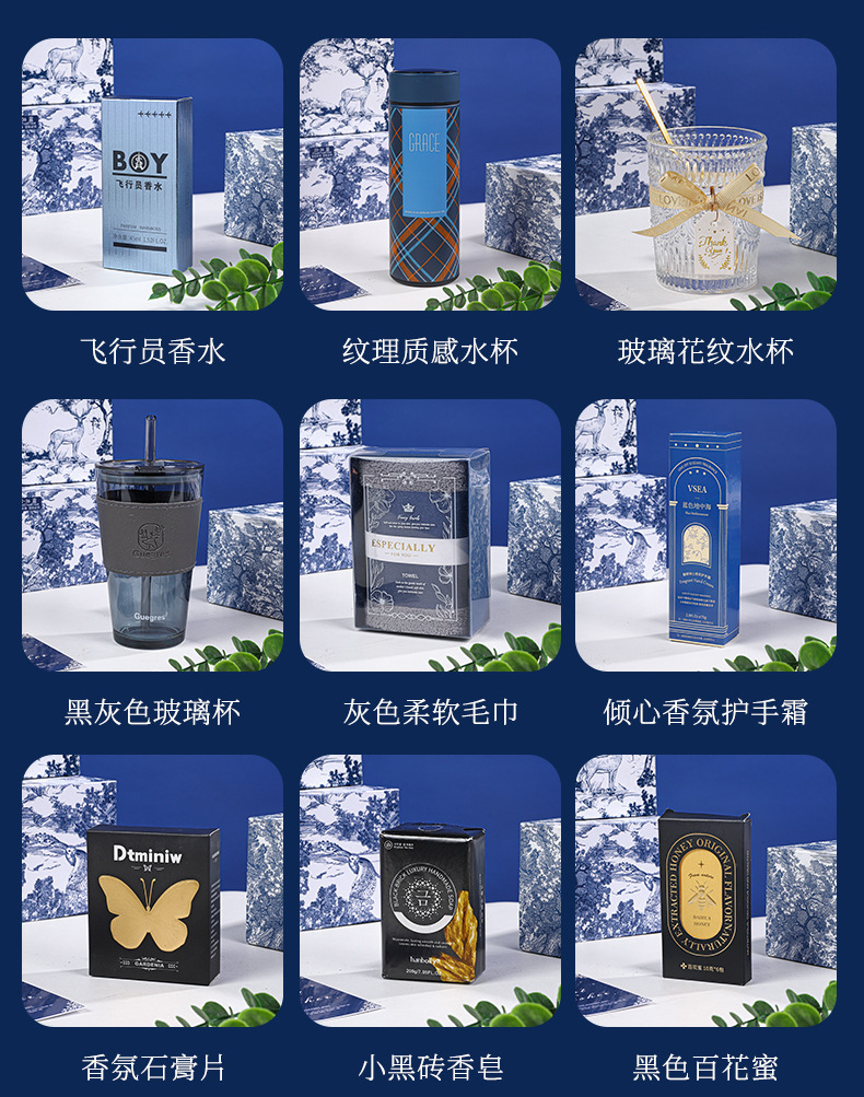 패키지 13: 설탕 상자 + 보온병 컵 + 수제 비누 + 수건 + 선풍기 + 향수