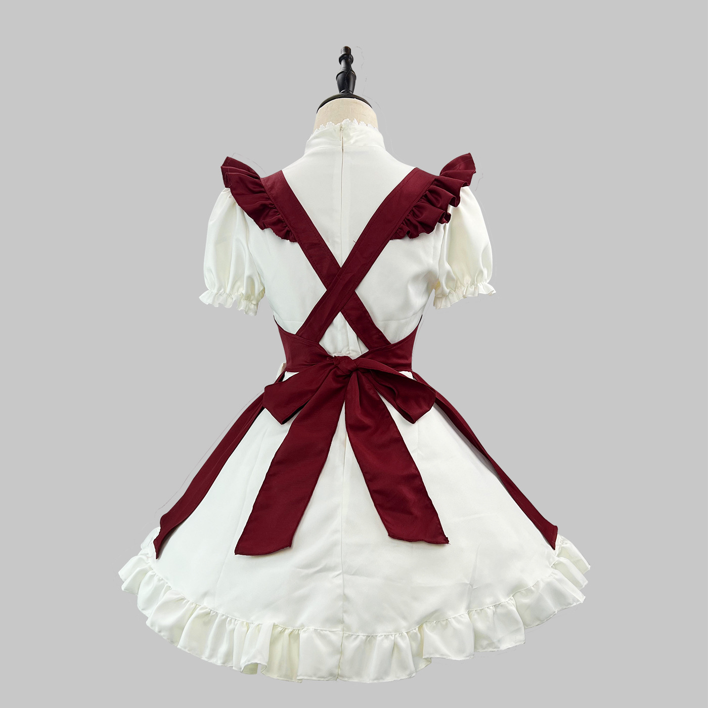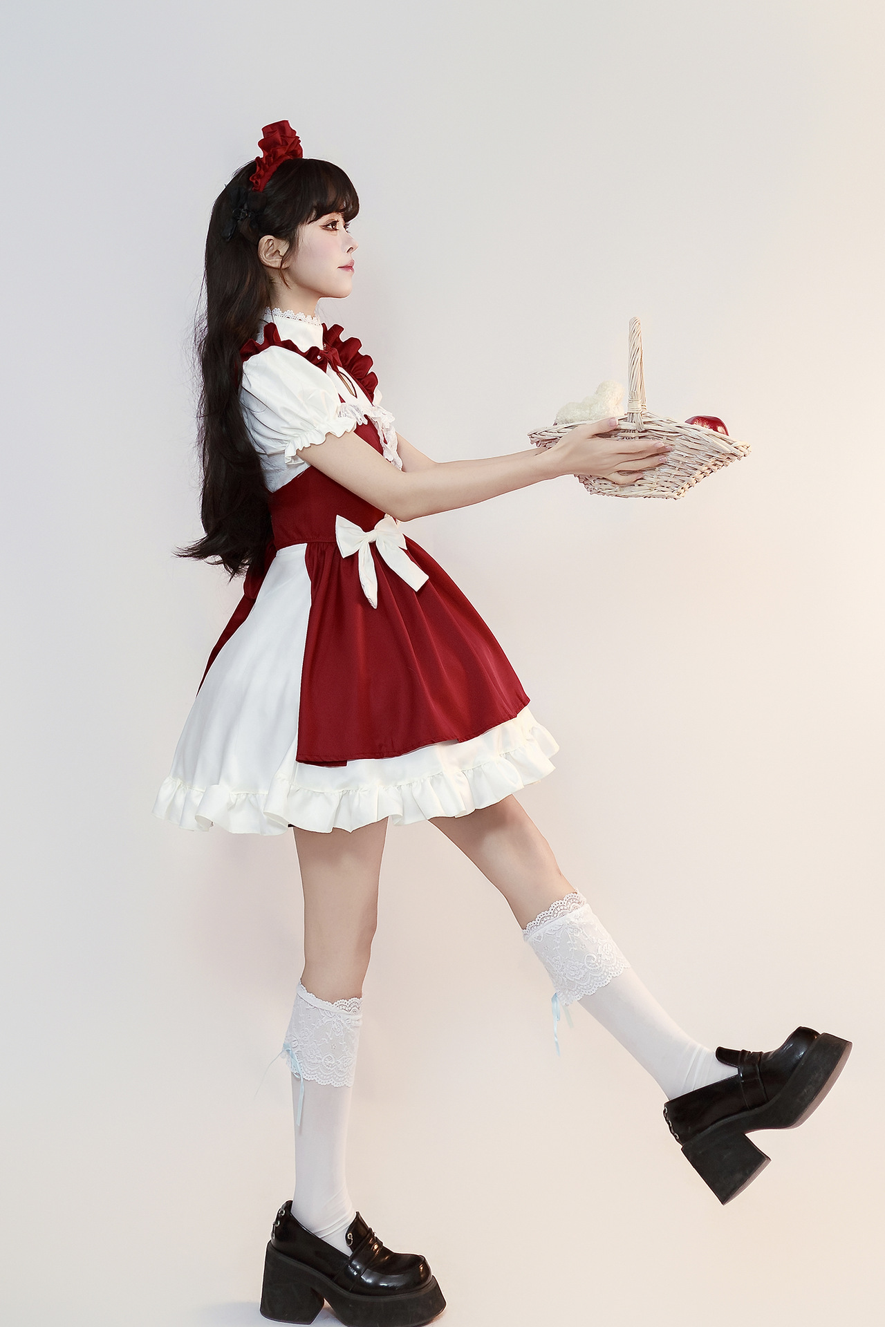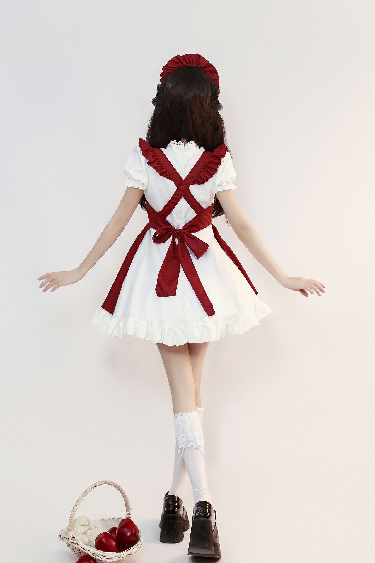 连衣裙+围裙+红蝴蝶结+白蝴蝶结+头饰