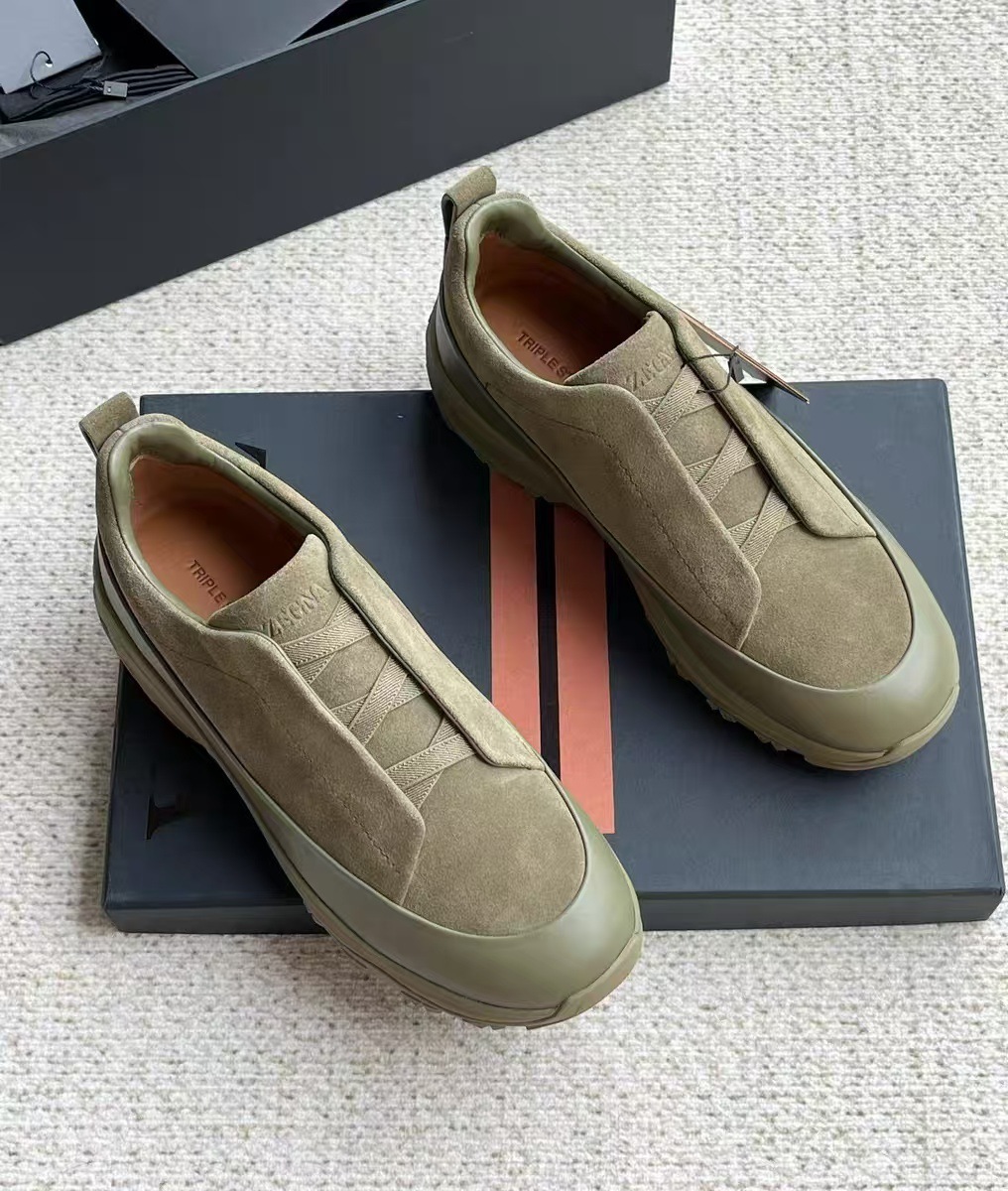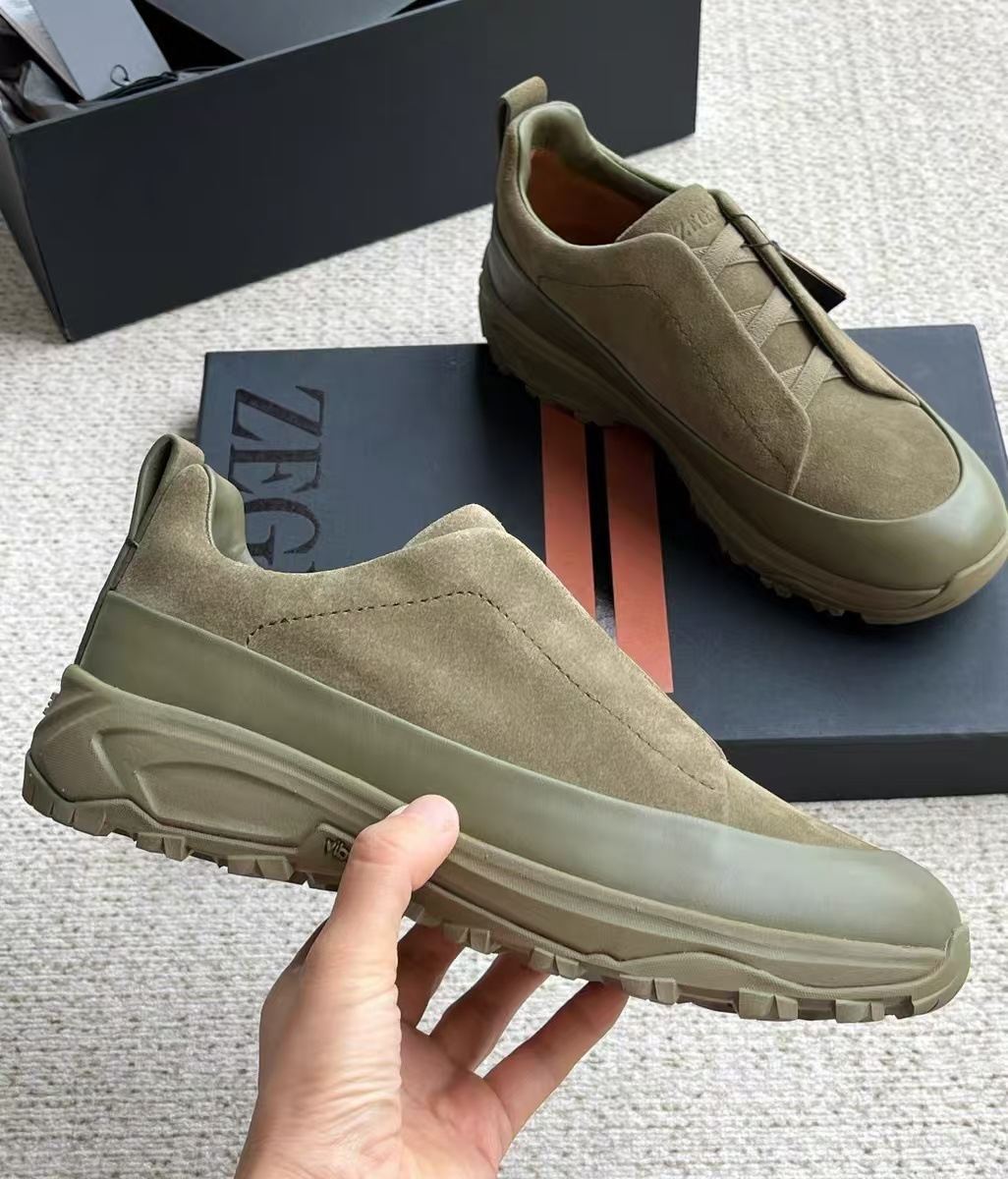 ZZ 새로운 남성 신발 스웨이드 캐주얼 신발 야외 운동화 크로스 탄성 밴드 남성용 두꺼운 하단 하단 로우 탑 신발