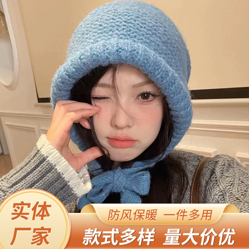 겨울 따뜻한 모자 어린이 국경 페어 아일랜드 바람 라파 모자 클라인 블루 니트 양모 모자 가방 모자