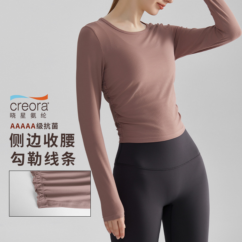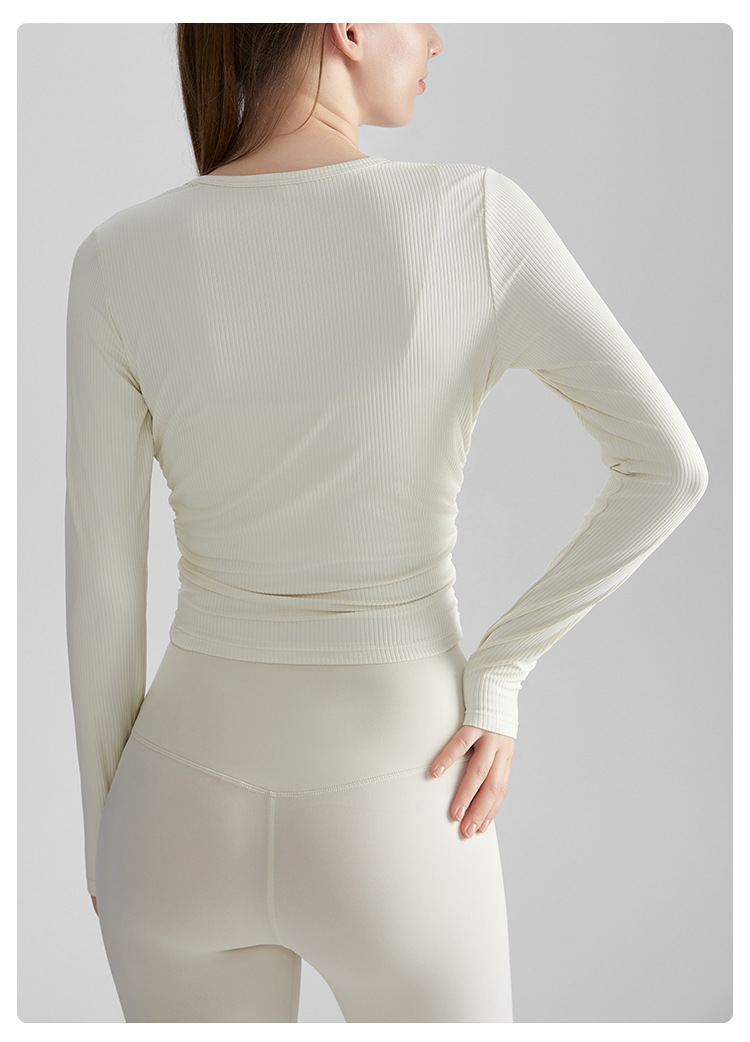 CD 신상 패션 요가복 상의 긴팔 여성 슬림핏 화이트 야외 스포츠 러닝 피트니스 긴팔