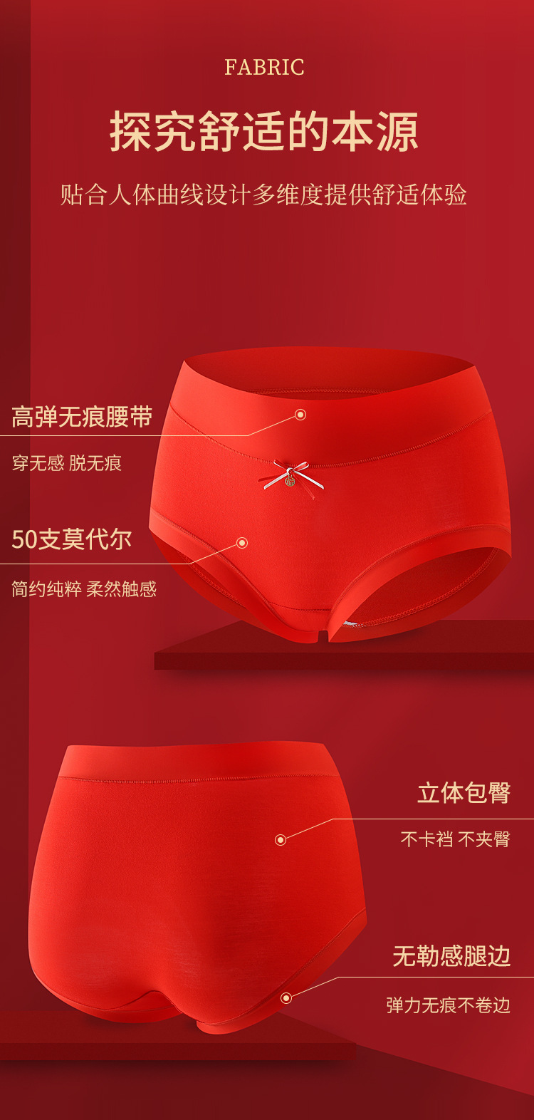 Benmingnian Big Red Modal 속옷 여성의 피부 친화적 인 편안한 통기성 Tracless 플러스 사이즈 중고 허리 여성 브리프