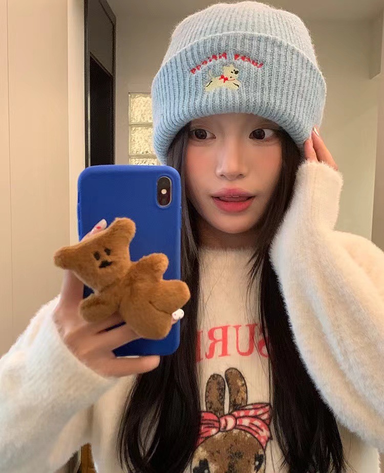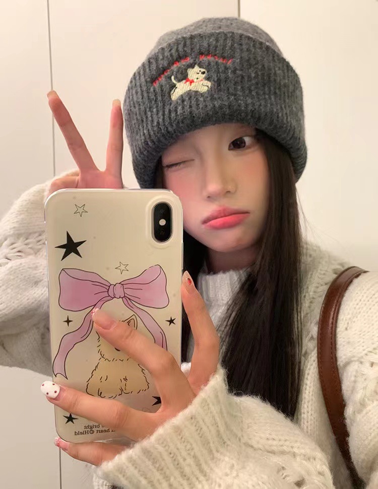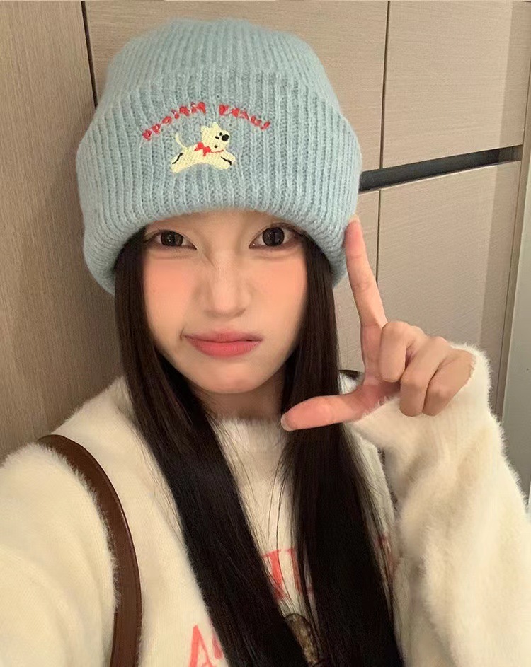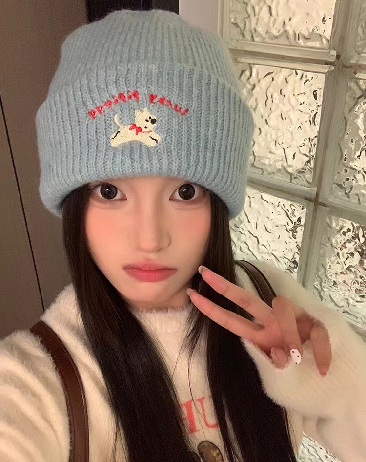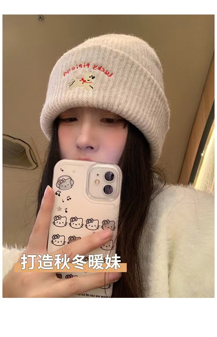 | 韩国ins可爱小狗帽 | 韩版ins可爱刺绣针织毛线帽女加厚保暖秋冬新款显脸小包头帽 | 面料名称 | 腈纶 |