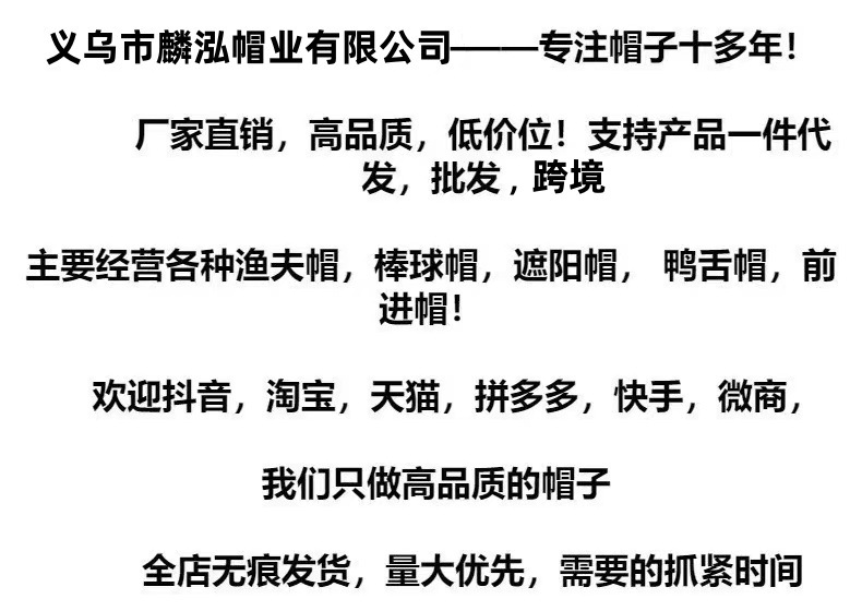 | 帽顶款式 | 圆顶 | 帽檐款式 | 无檐 |