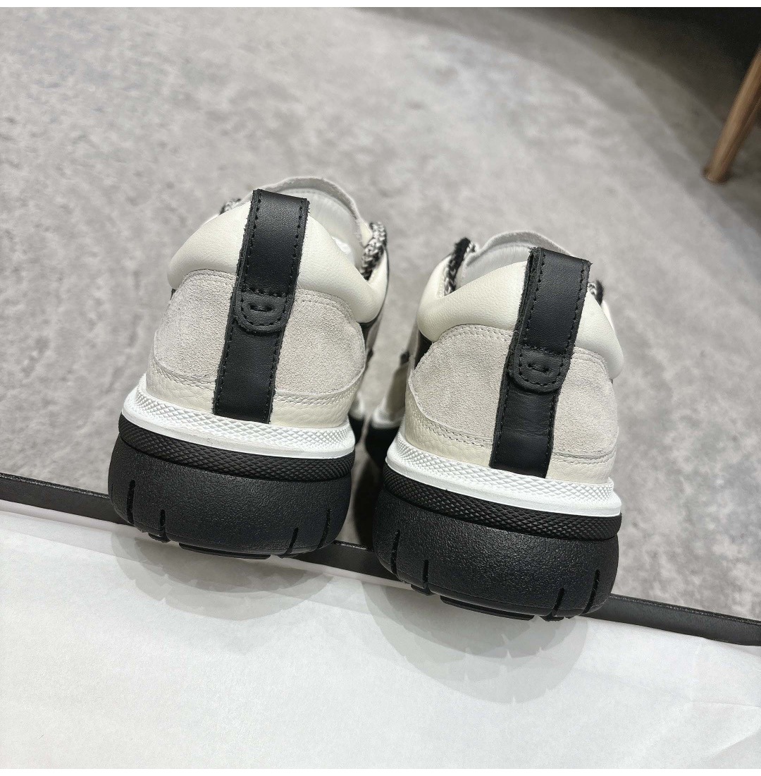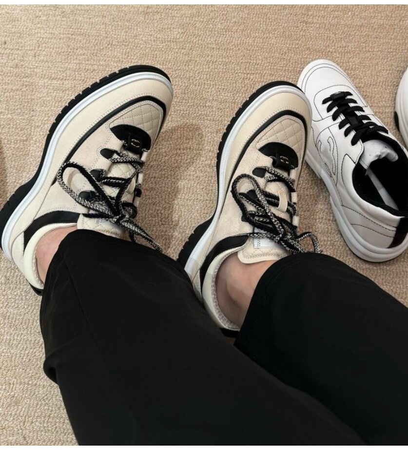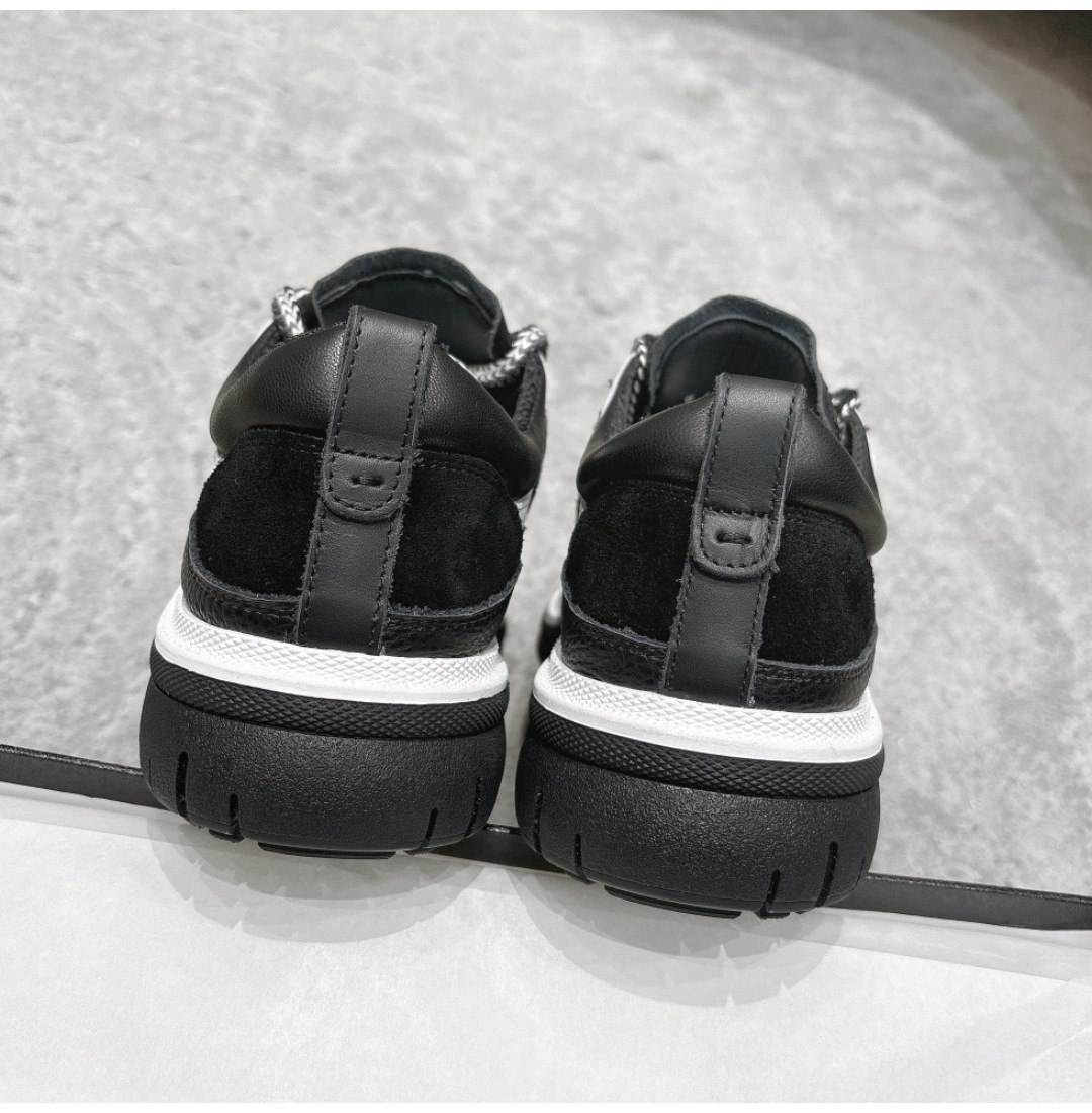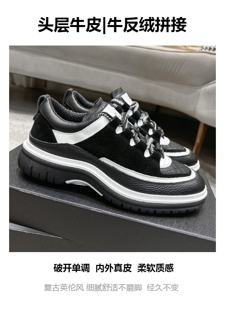 샤넬 스타일 캣워크 팬더 신발 라운드 발가락 Cowhide 컬러 매칭 Rhomboid 라인 두꺼운 하단 레이스 업 로우 탑 캐주얼 운동화 여성