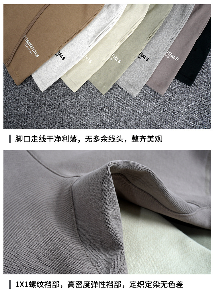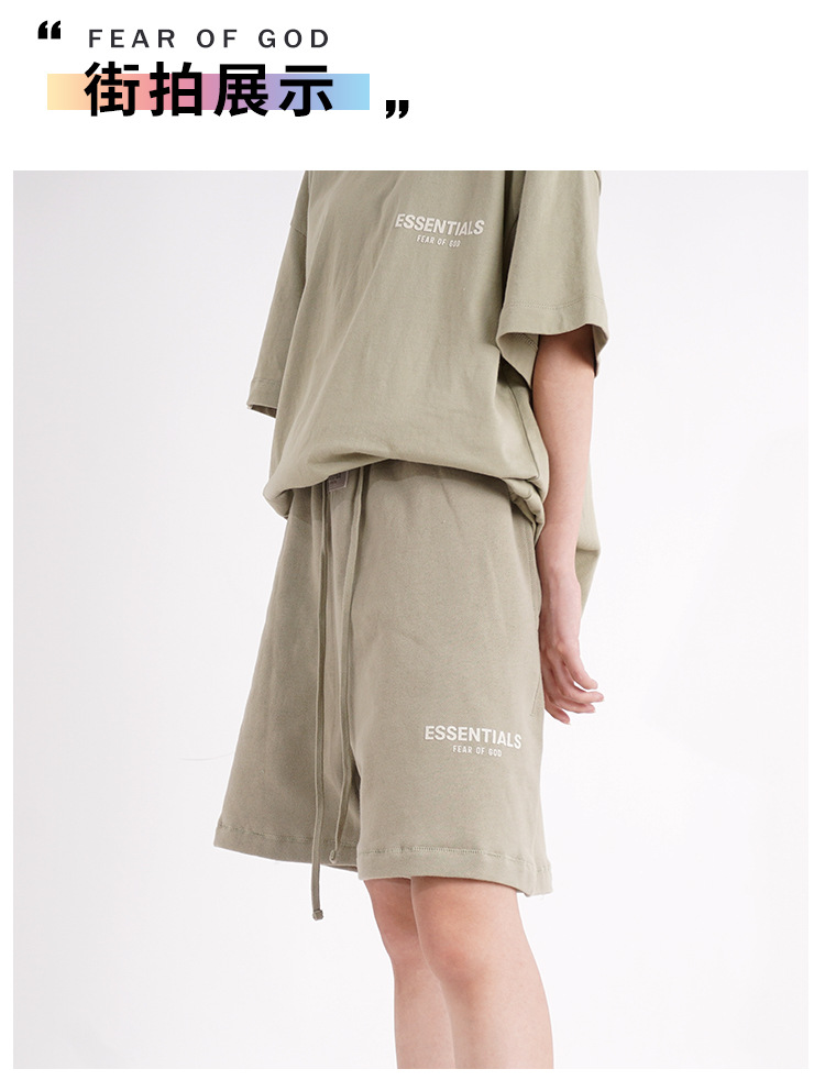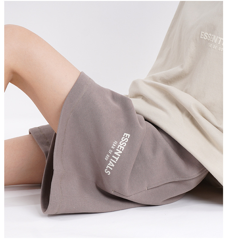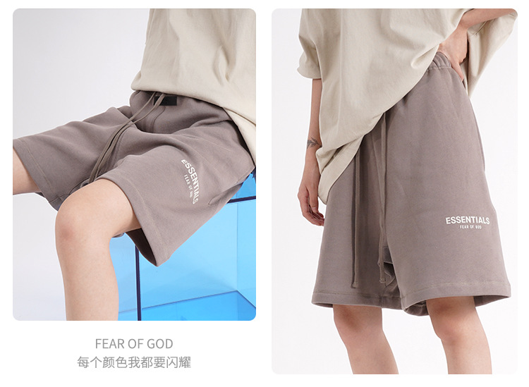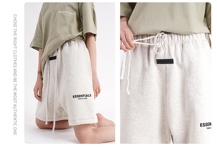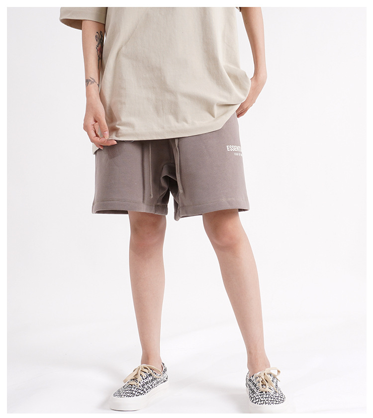 FOG 멀티 라인 플록 소형 라벨 문자 프린트 반바지 드로스트링 캐주얼 루즈 5부 바지 남성용 및 여성용
