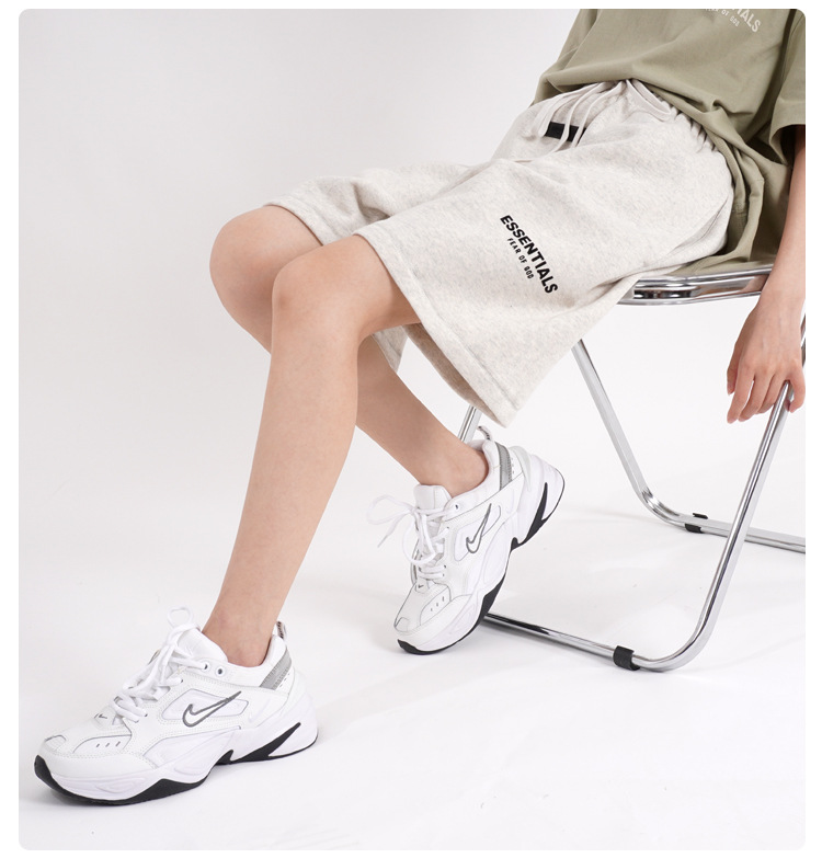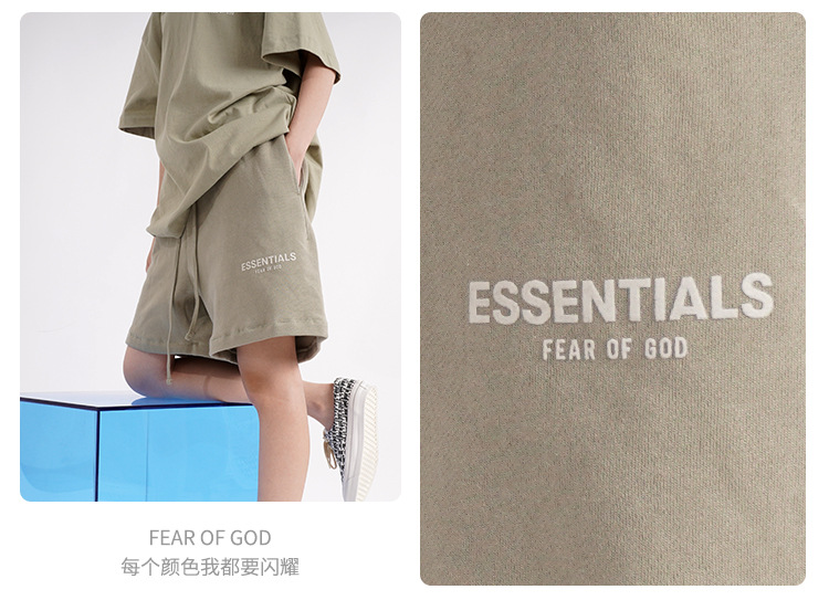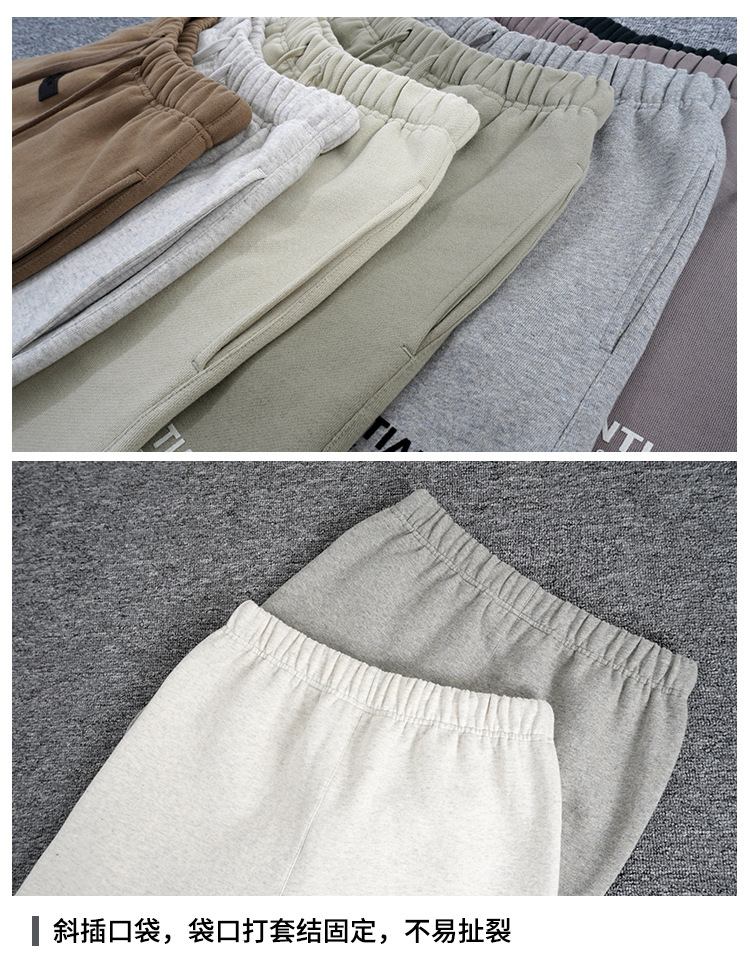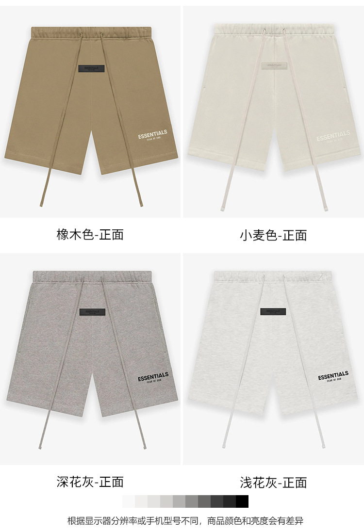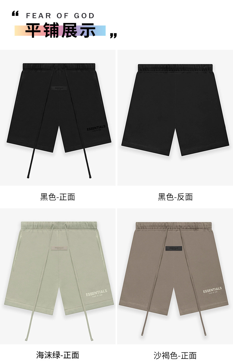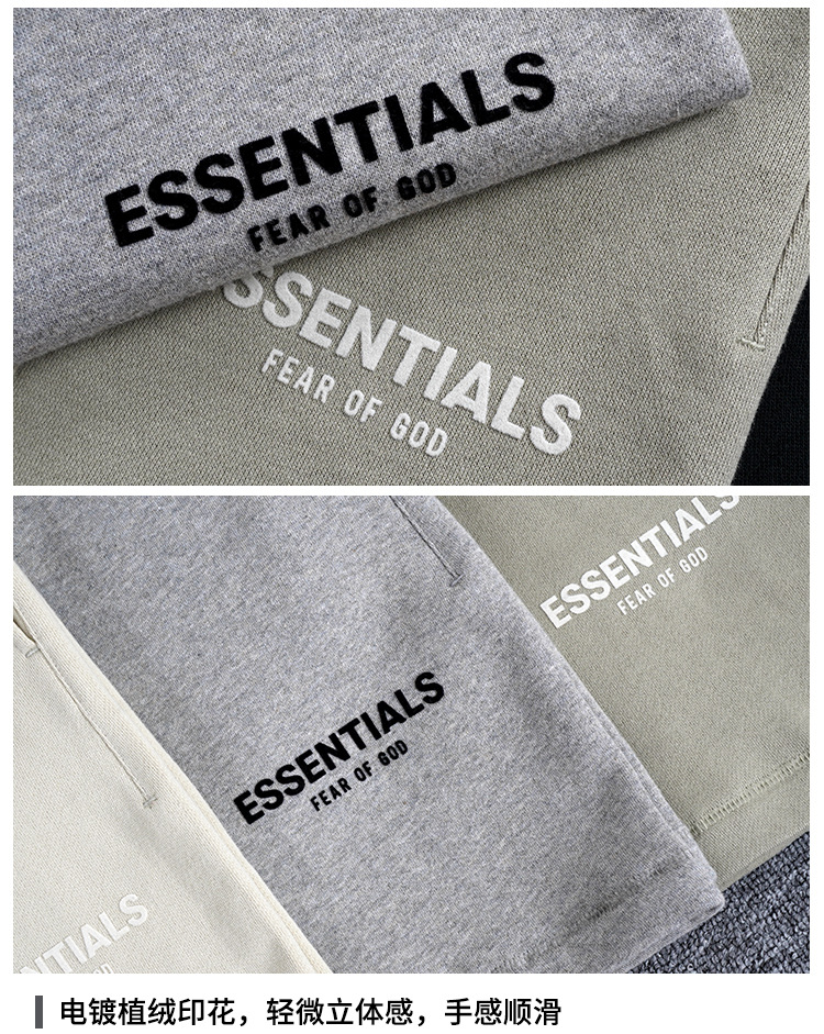 FOG 멀티 라인 플록 소형 라벨 문자 프린트 반바지 드로스트링 캐주얼 루즈 5부 바지 남성용 및 여성용