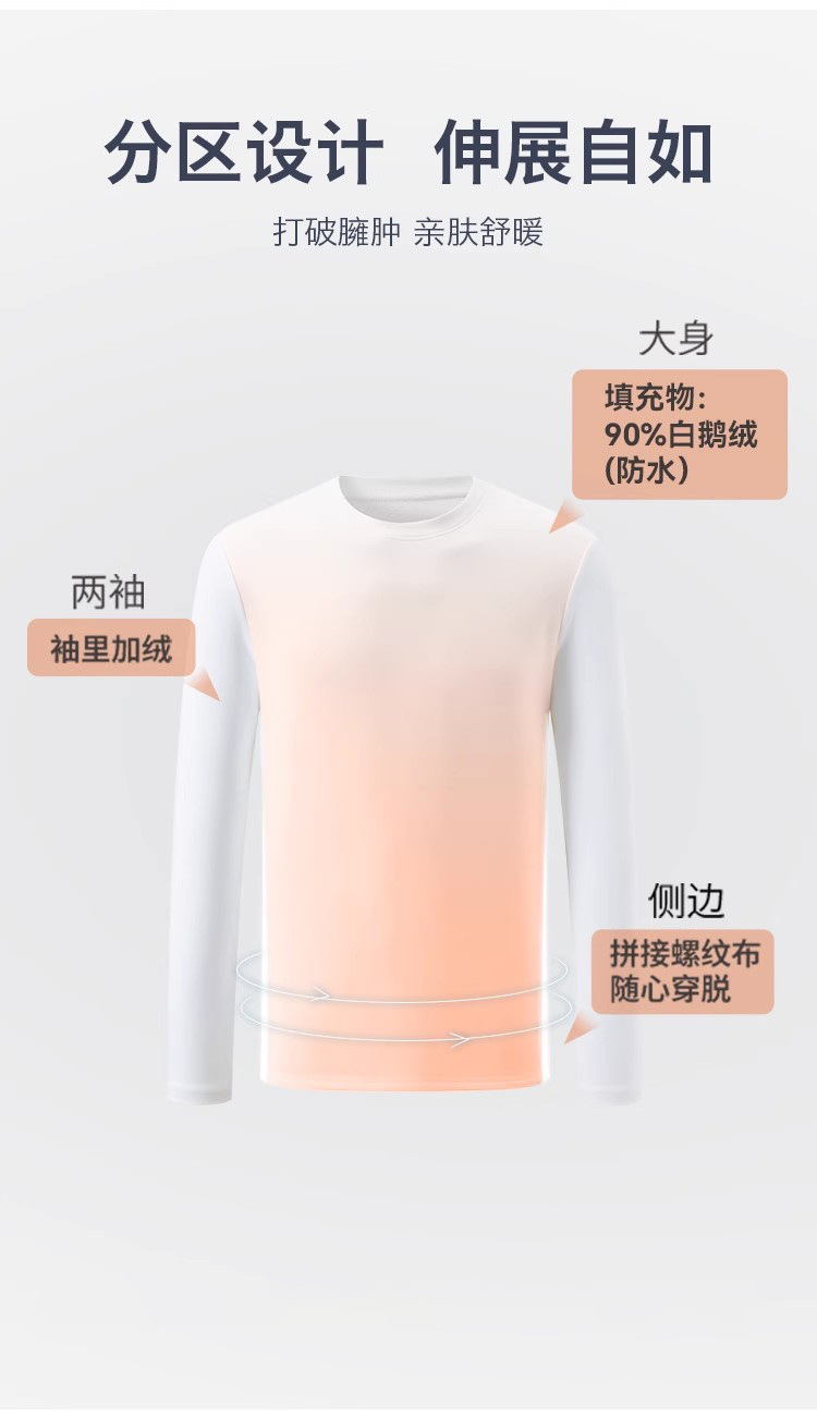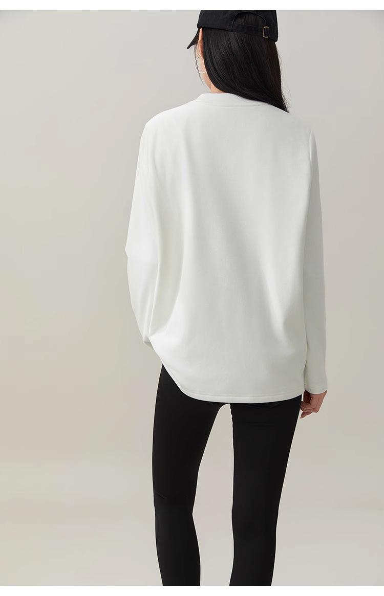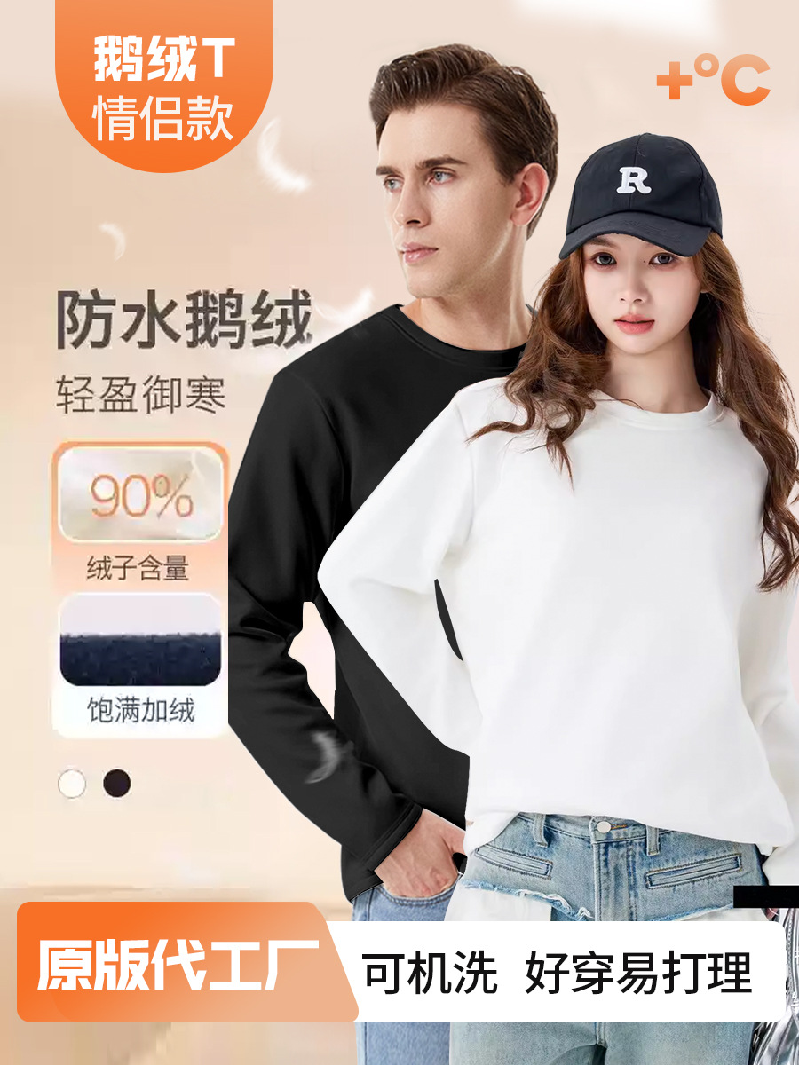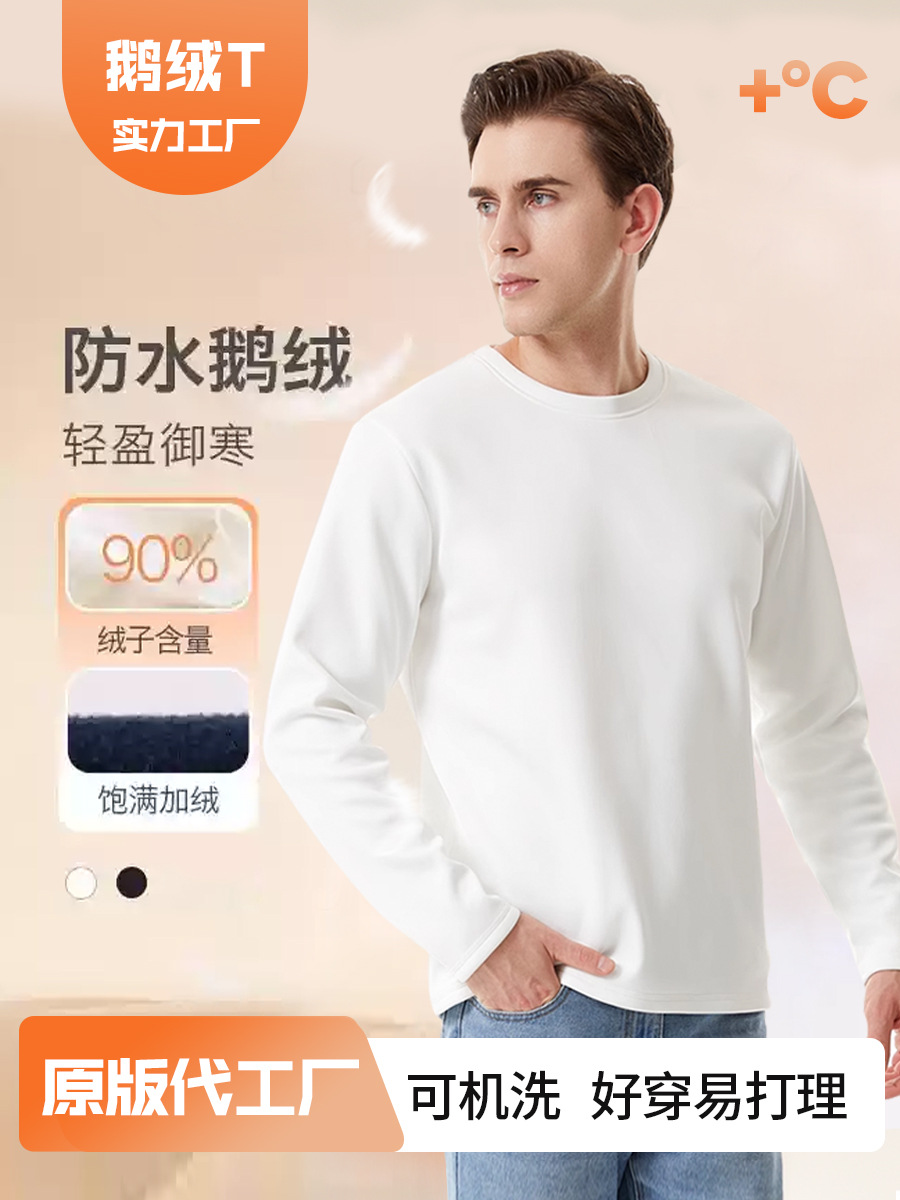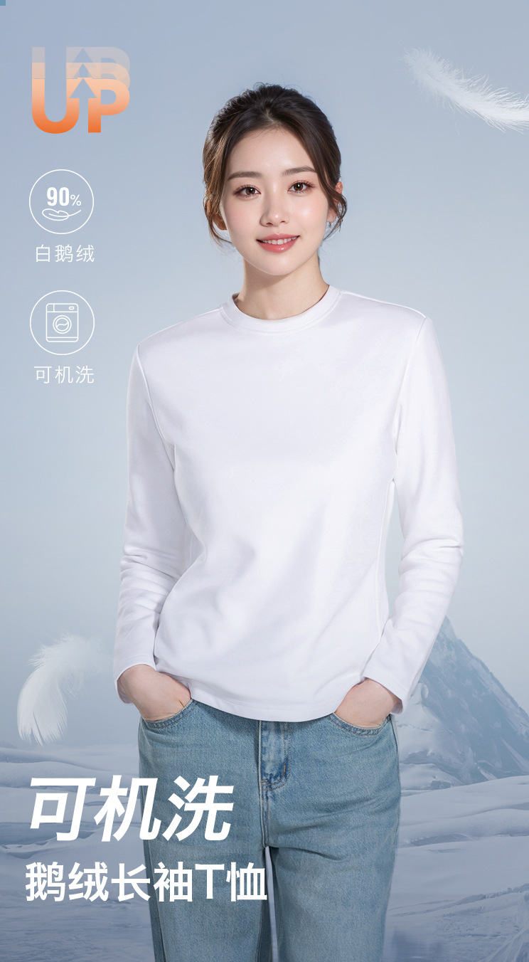세탁기로 세탁 가능한 90 구스 다운 티셔츠 긴팔 여성용 다운 잠금 내부 레이어 가을, 겨울 따뜻한 탑 3 방지 라운드 넥 스웨트 셔츠 화이트