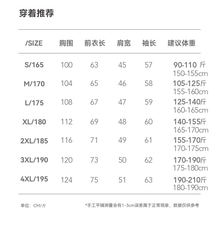 | 颜色 | 白色, 黑色 | 尺码 | S(90-110斤), M(110-125斤), L(125-140斤), XL(140-155斤), 2XL(155-170斤), 3XL(170-190斤), 4XL(190-210斤) |