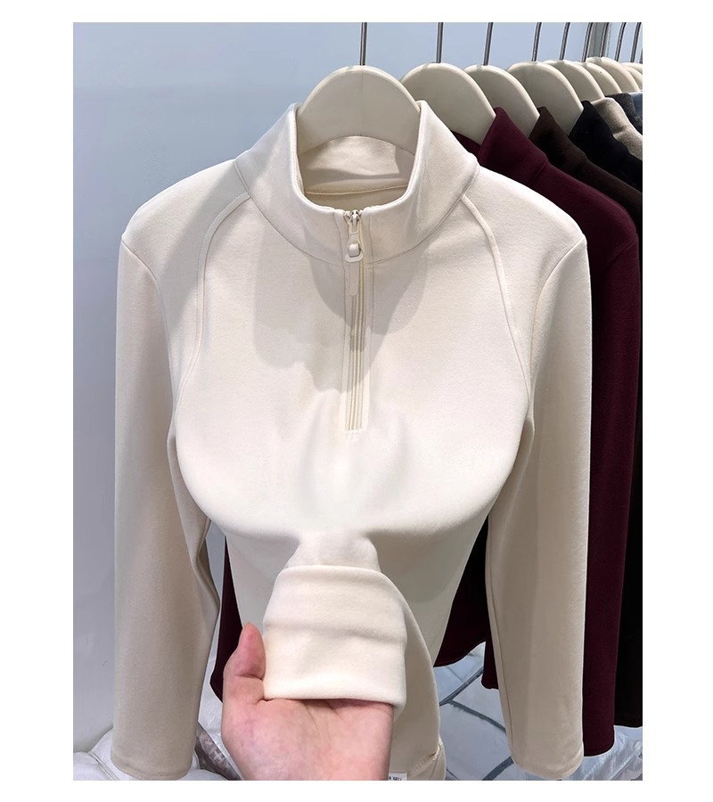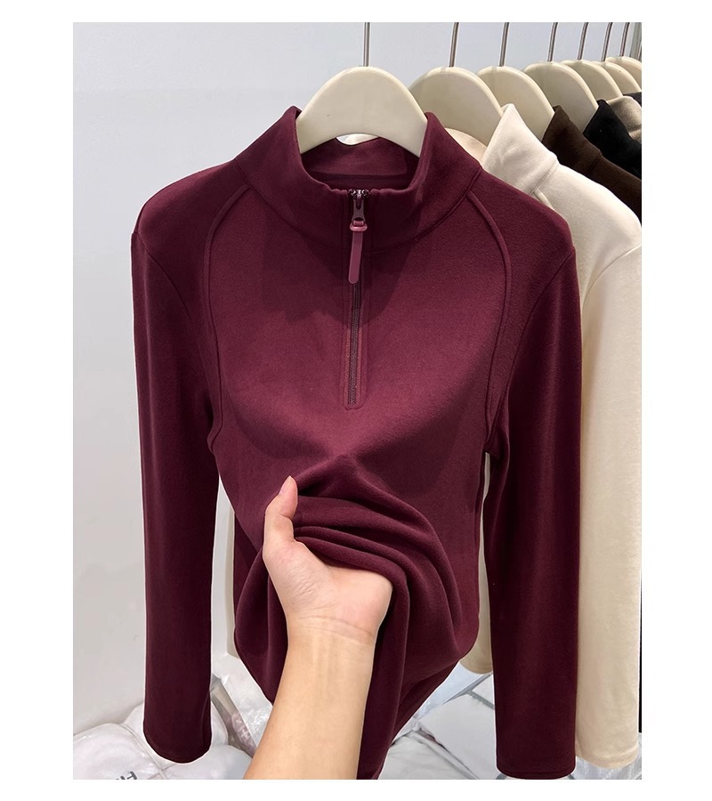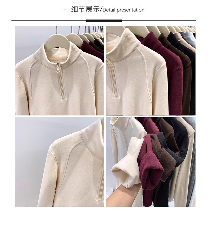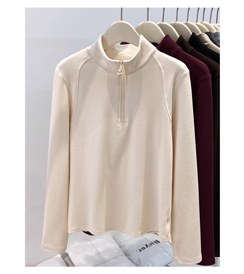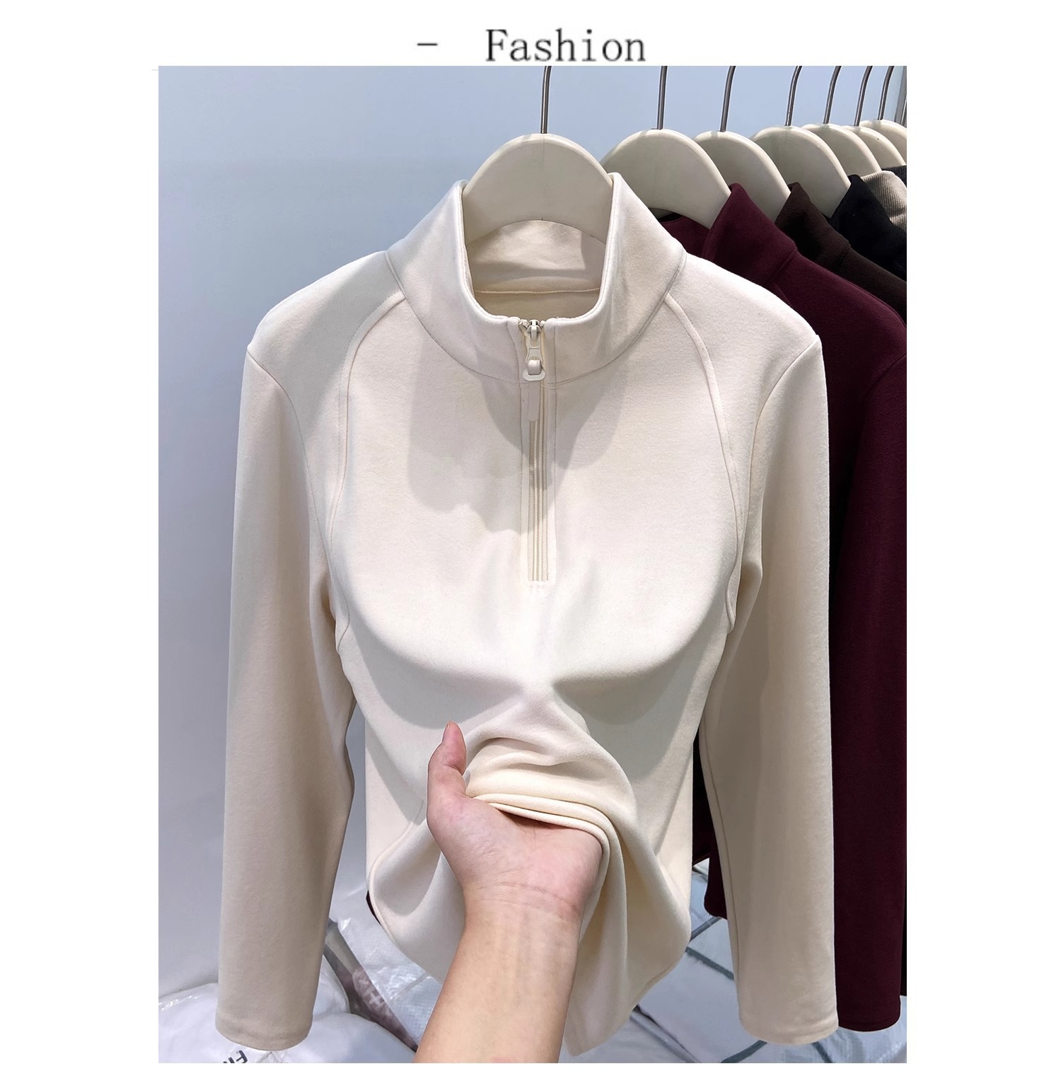 여성용 하프 지퍼 스탠드 칼라 양면 독일 벨벳 스웨트 셔츠 2025 봄 새로운 두꺼운 따뜻한 바닥 셔츠 여성용 탑
