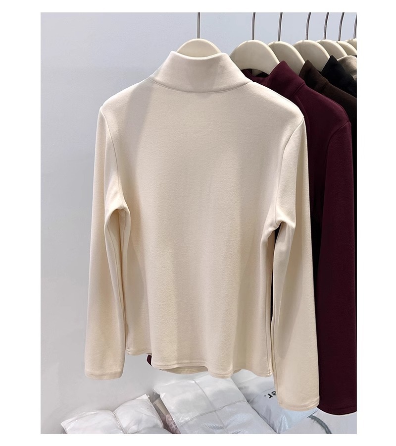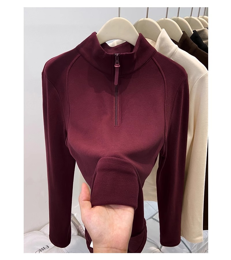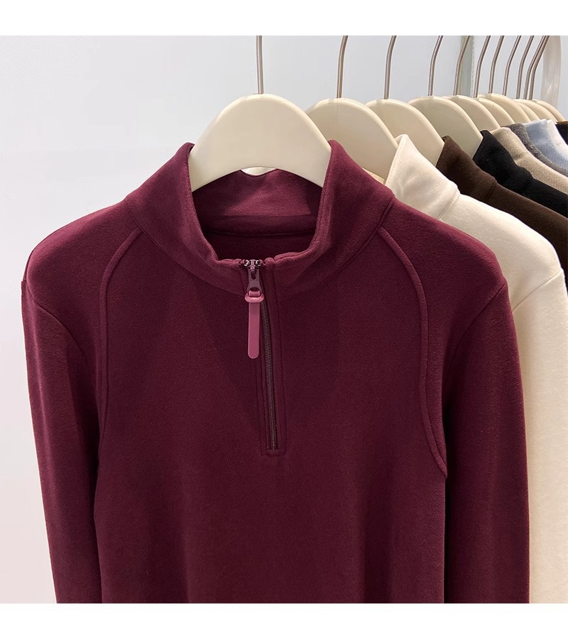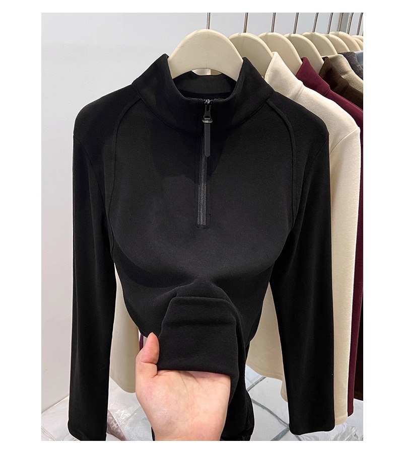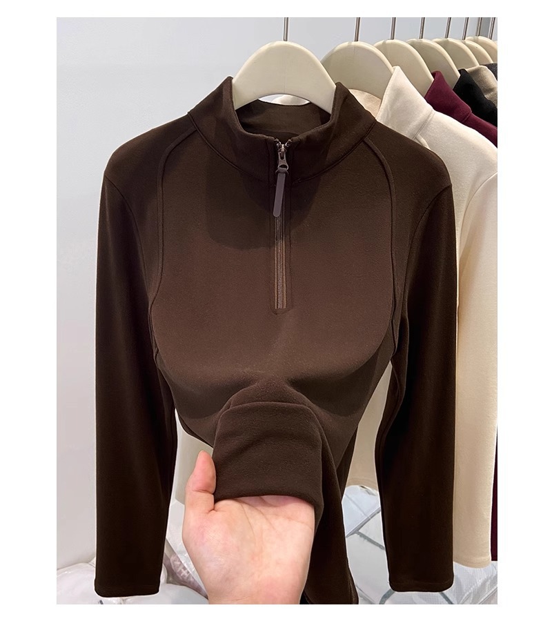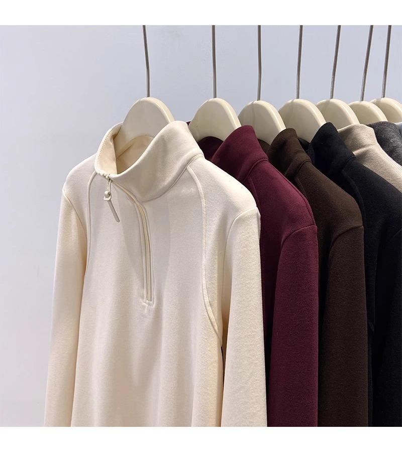 여성용 하프 지퍼 스탠드 칼라 양면 독일 벨벳 스웨트 셔츠 2025 봄 새로운 두꺼운 따뜻한 바닥 셔츠 여성용 탑