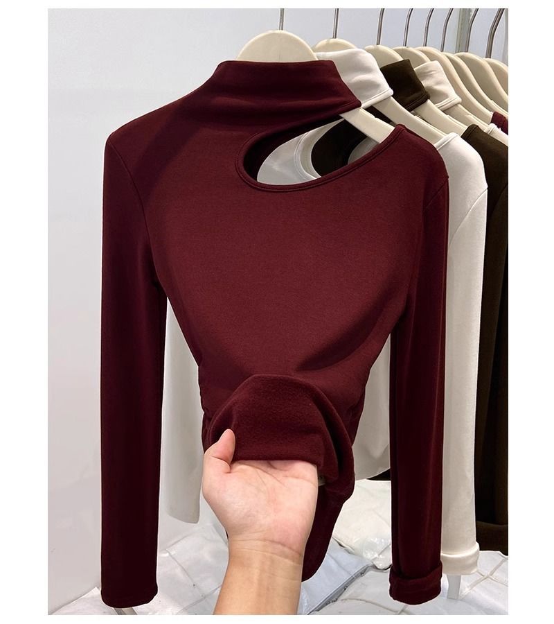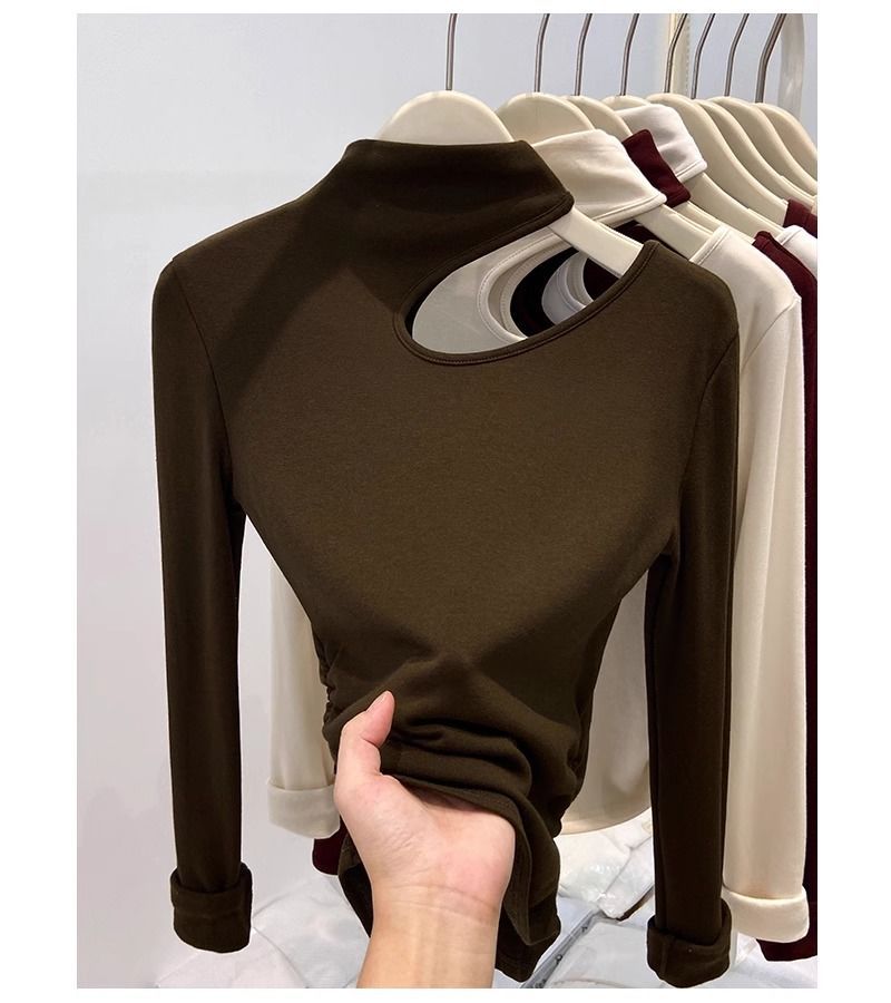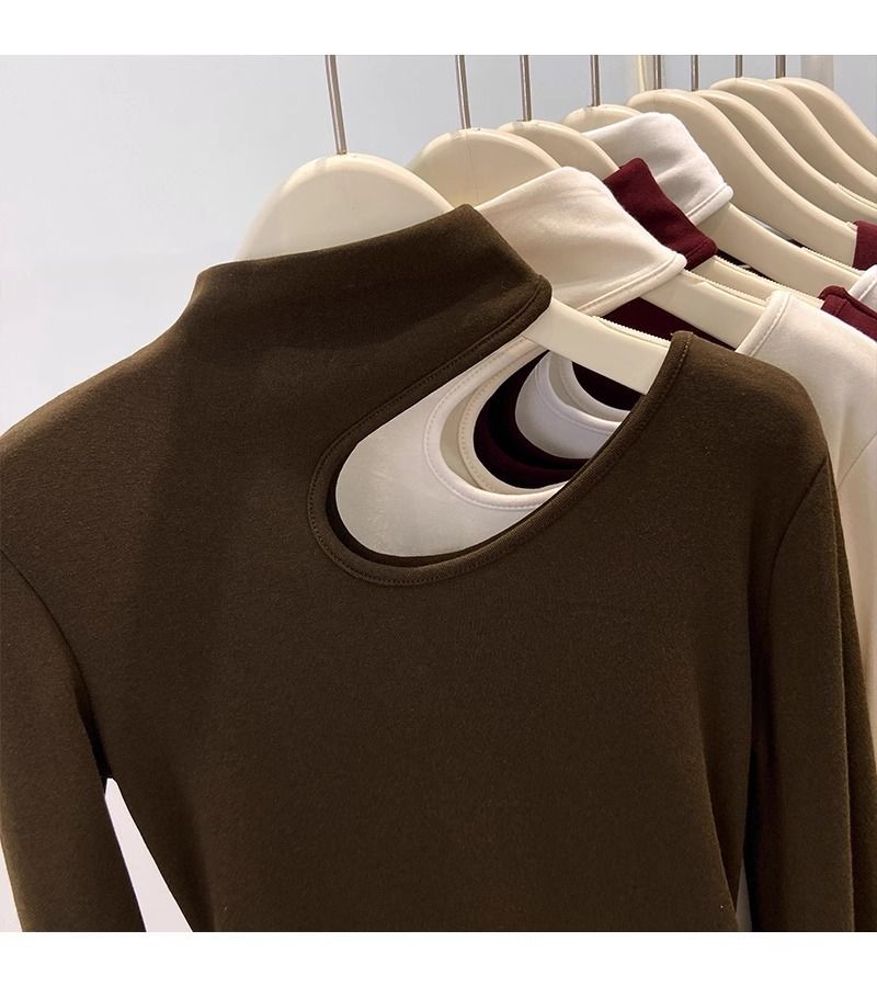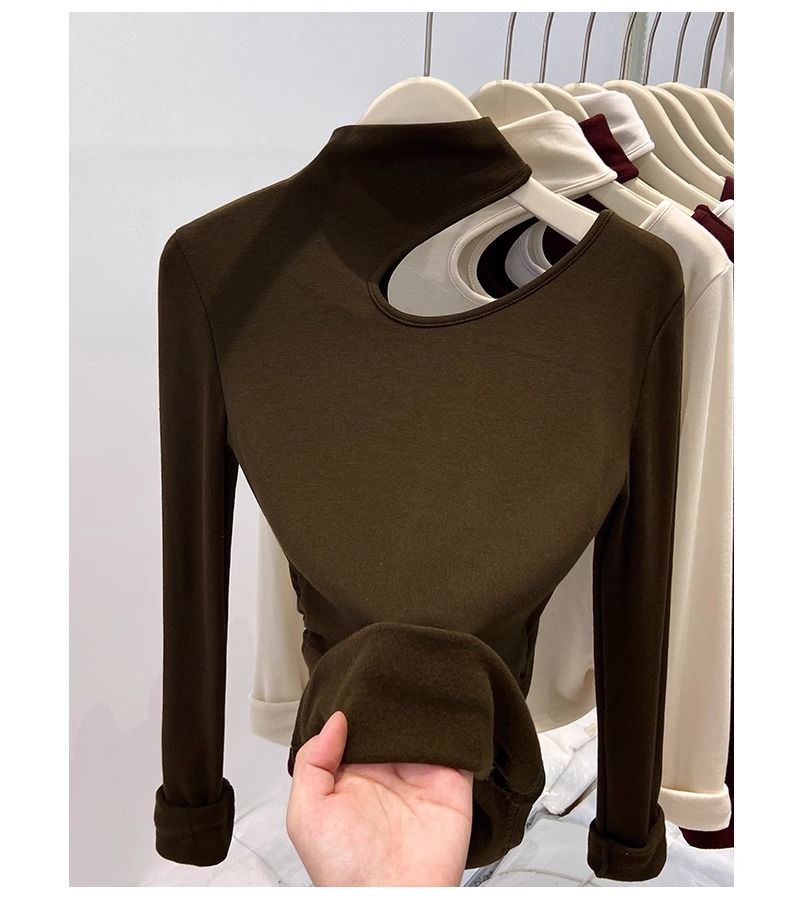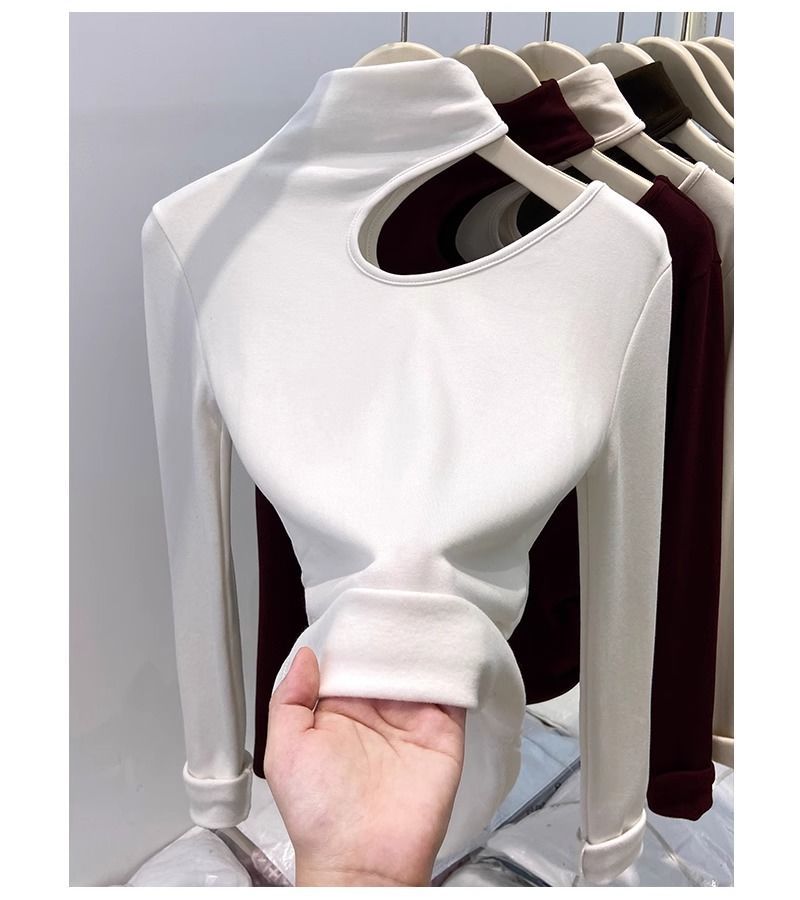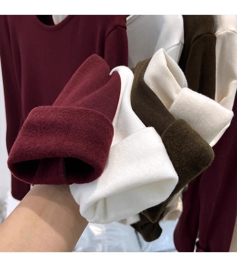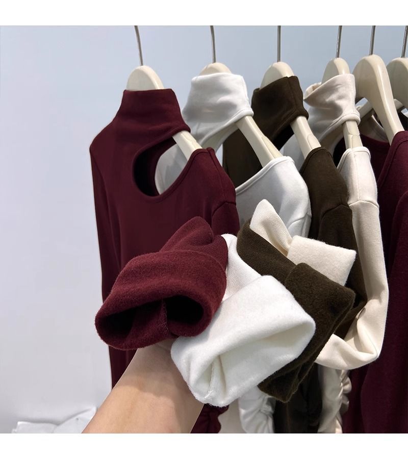 속이 비어있는 반하이넥 기모 데론 보온 이너웨어 티셔츠 여성용 초봄 슬림핏 허리라인 강조 빅사이즈 이너탑