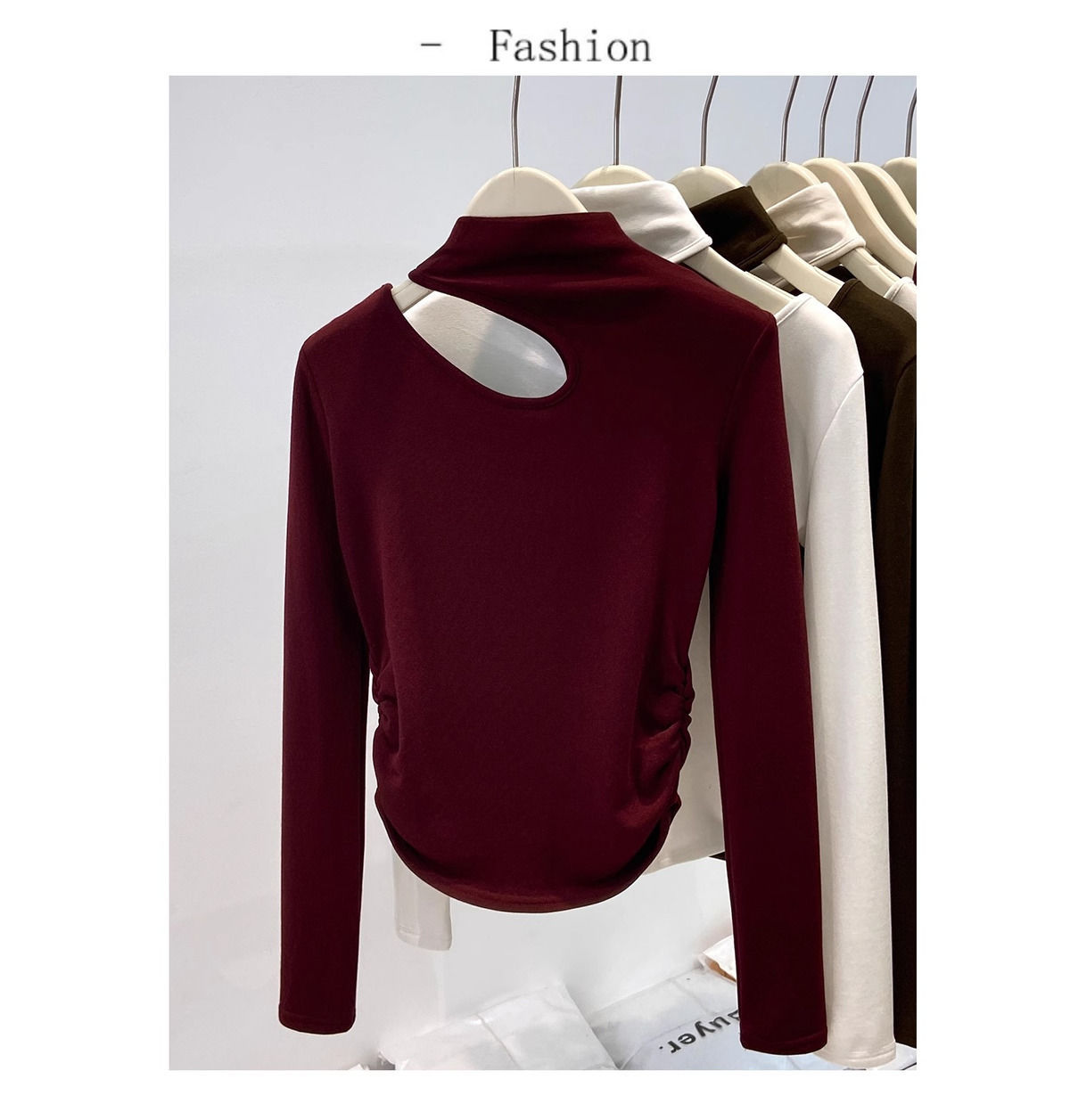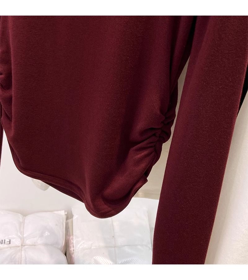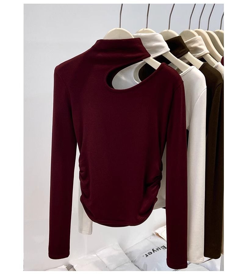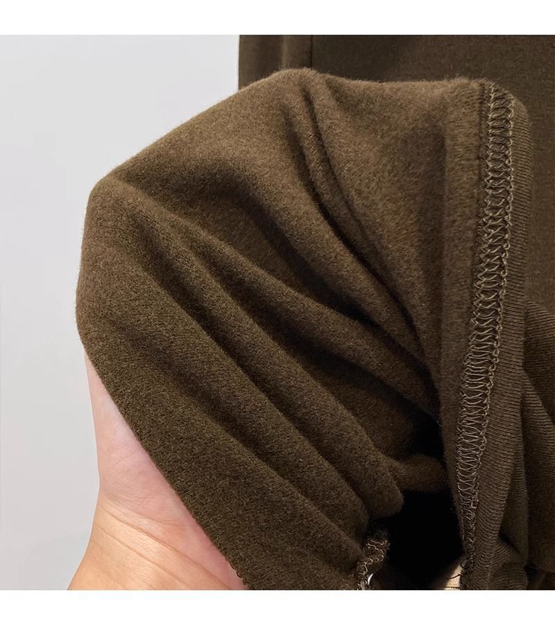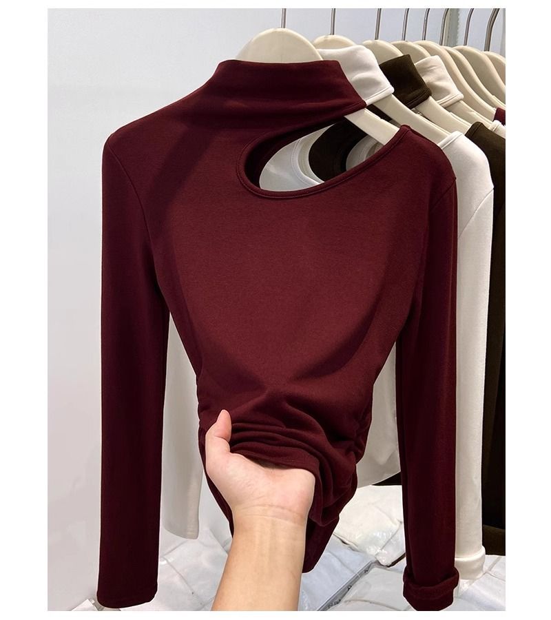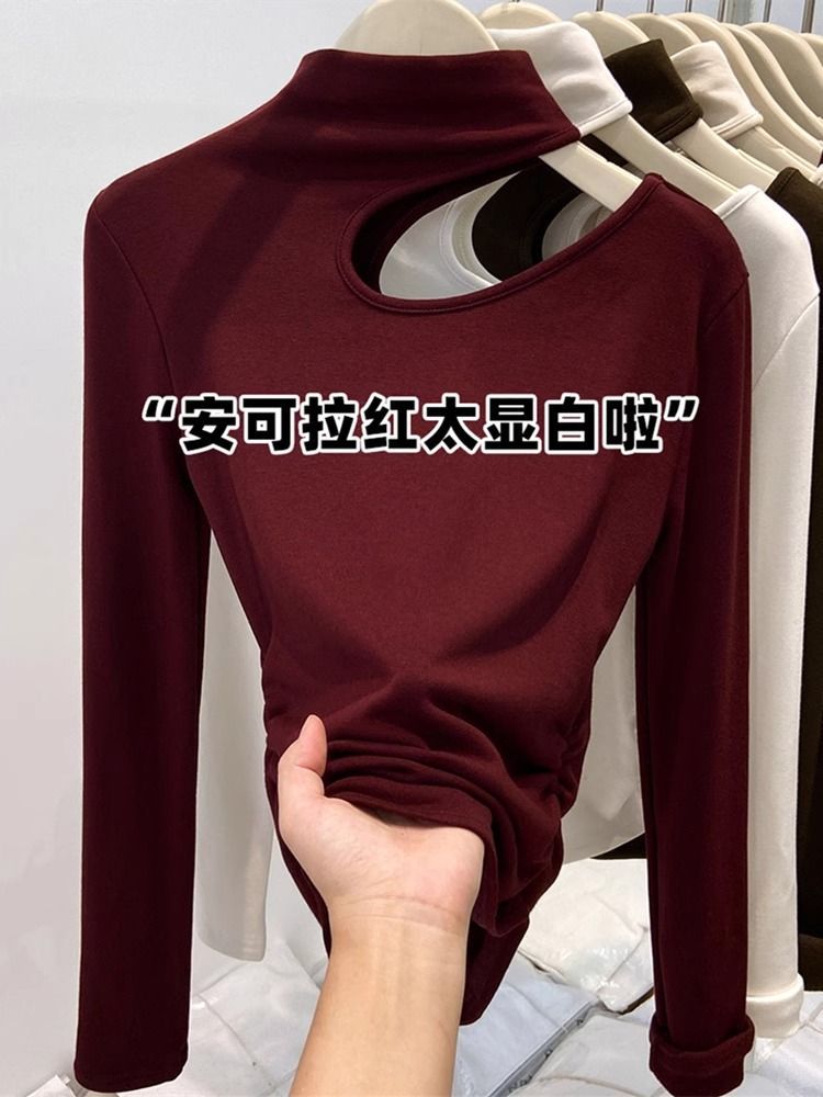 속이 비어있는 반하이넥 기모 데론 보온 이너웨어 티셔츠 여성용 초봄 슬림핏 허리라인 강조 빅사이즈 이너탑