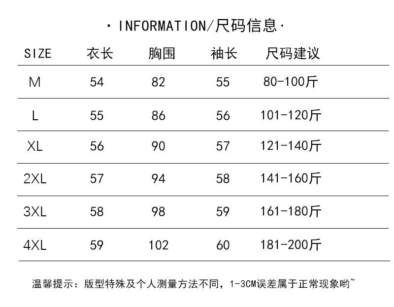 | 颜色 | 安可拉红色 【保暖磨毛德绒】, 黑色 【保暖磨毛德绒】, 杏色 【保暖磨毛德绒】 | 尺码 | M【建议80-100斤】, L【建议101-120斤】, XL【建议121-140斤】, 2XL【建议141-160斤】, 3XL【建议161-180斤】, 4XL【建议181-200斤】 |